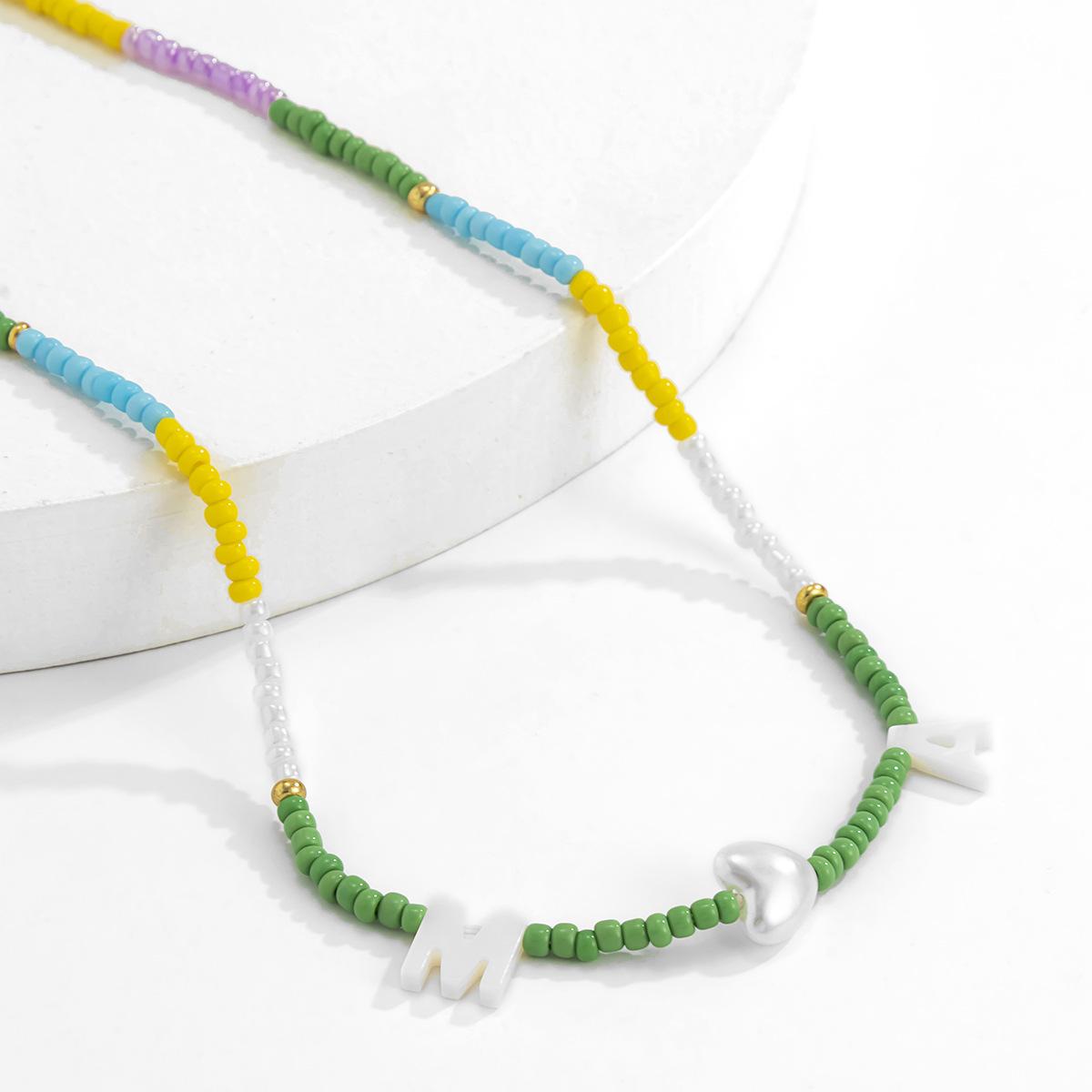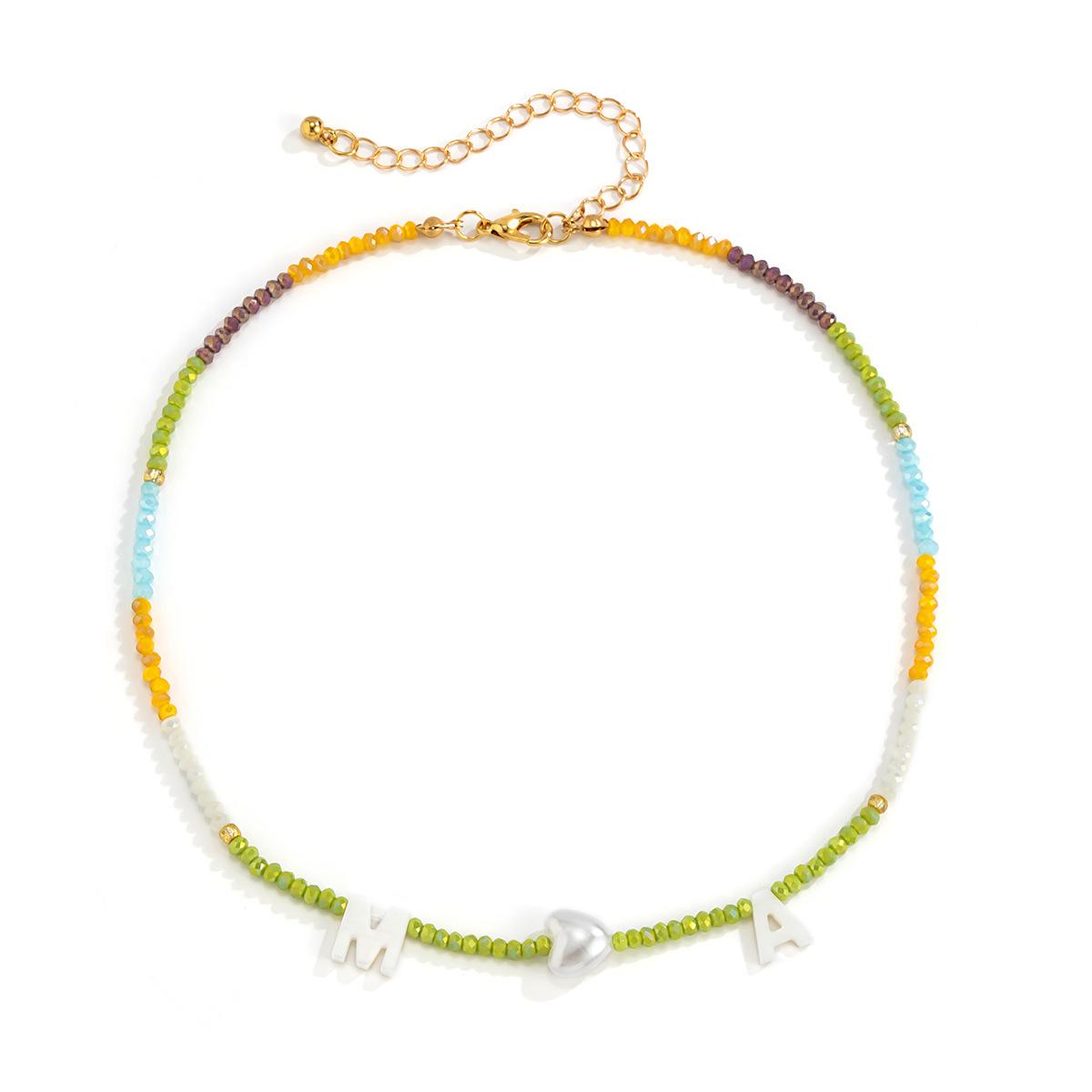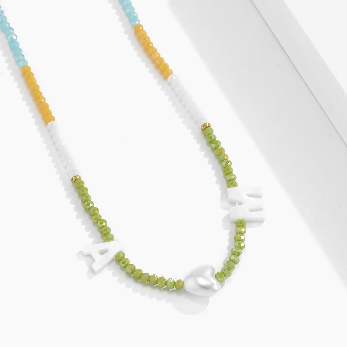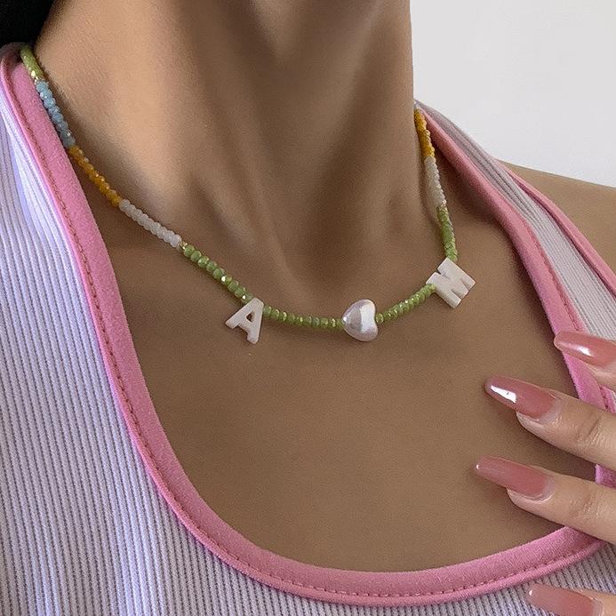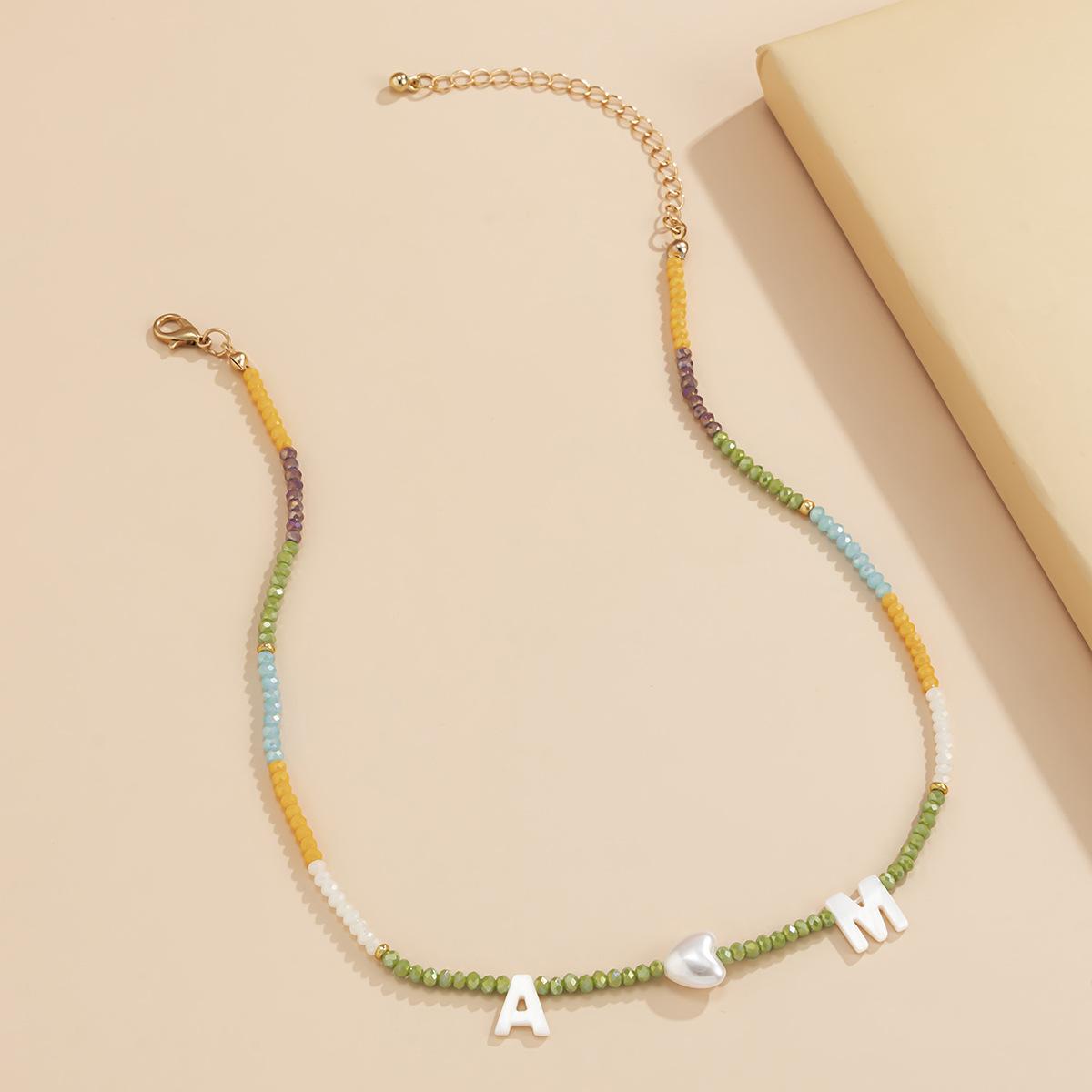 Collar de clavícula con cuentas de cristal de colores de estilo bohemio, collar con letras de perla y corazón de melocotón, estilo transfronterizo europeo y americano.