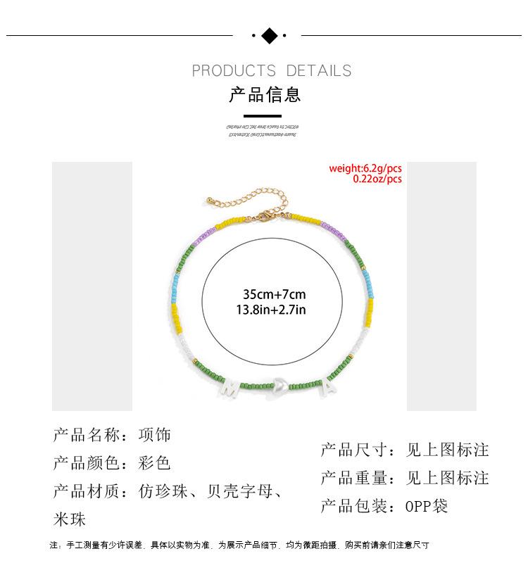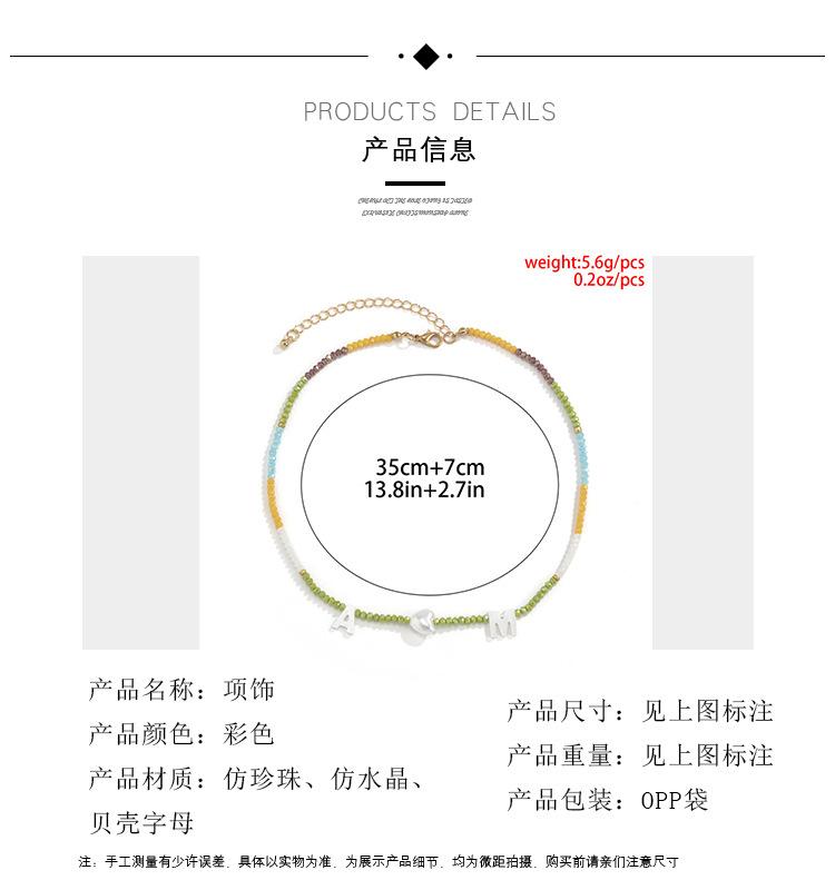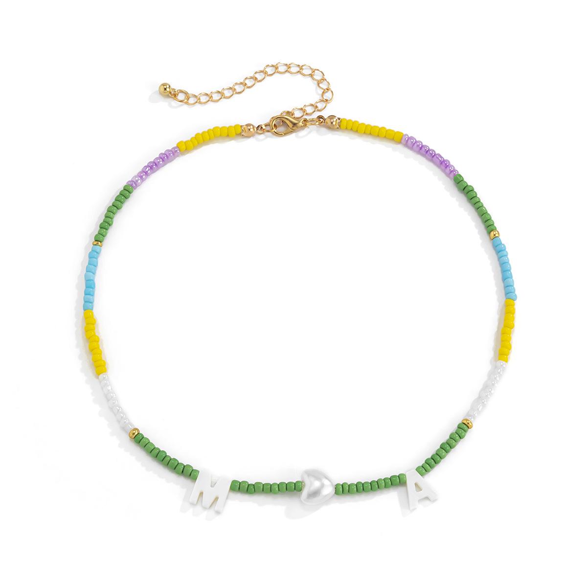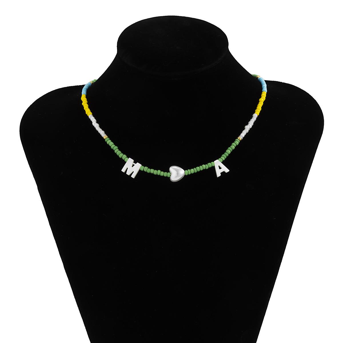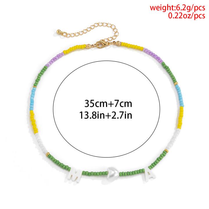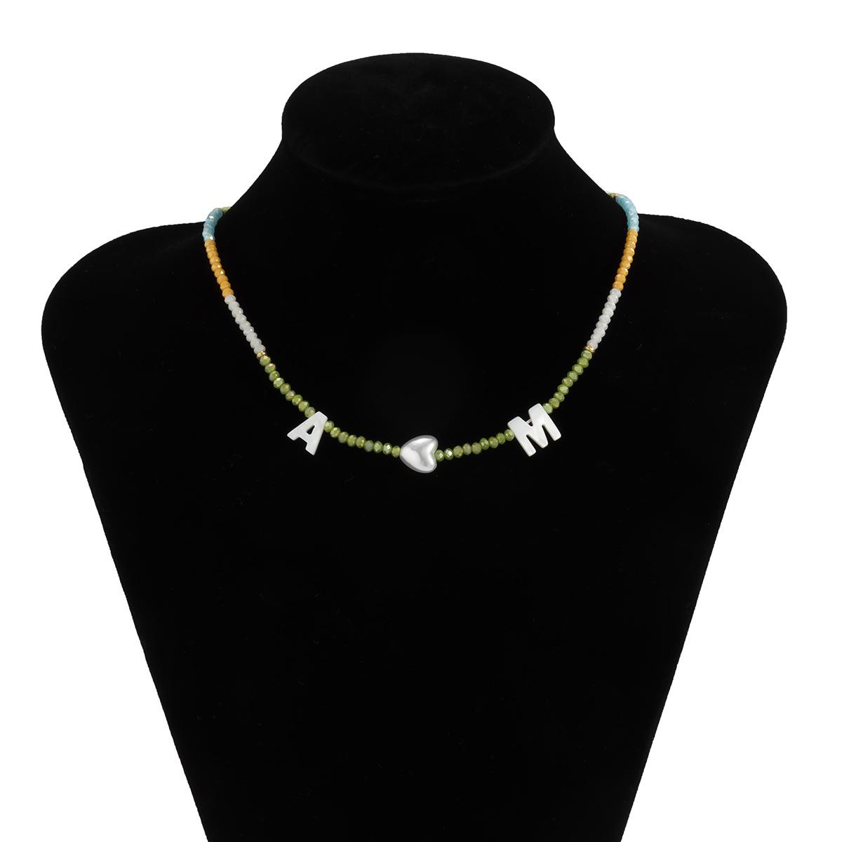 Collar de clavícula con cuentas de cristal de colores de estilo bohemio, collar con letras de perla y corazón de melocotón, estilo transfronterizo europeo y americano.