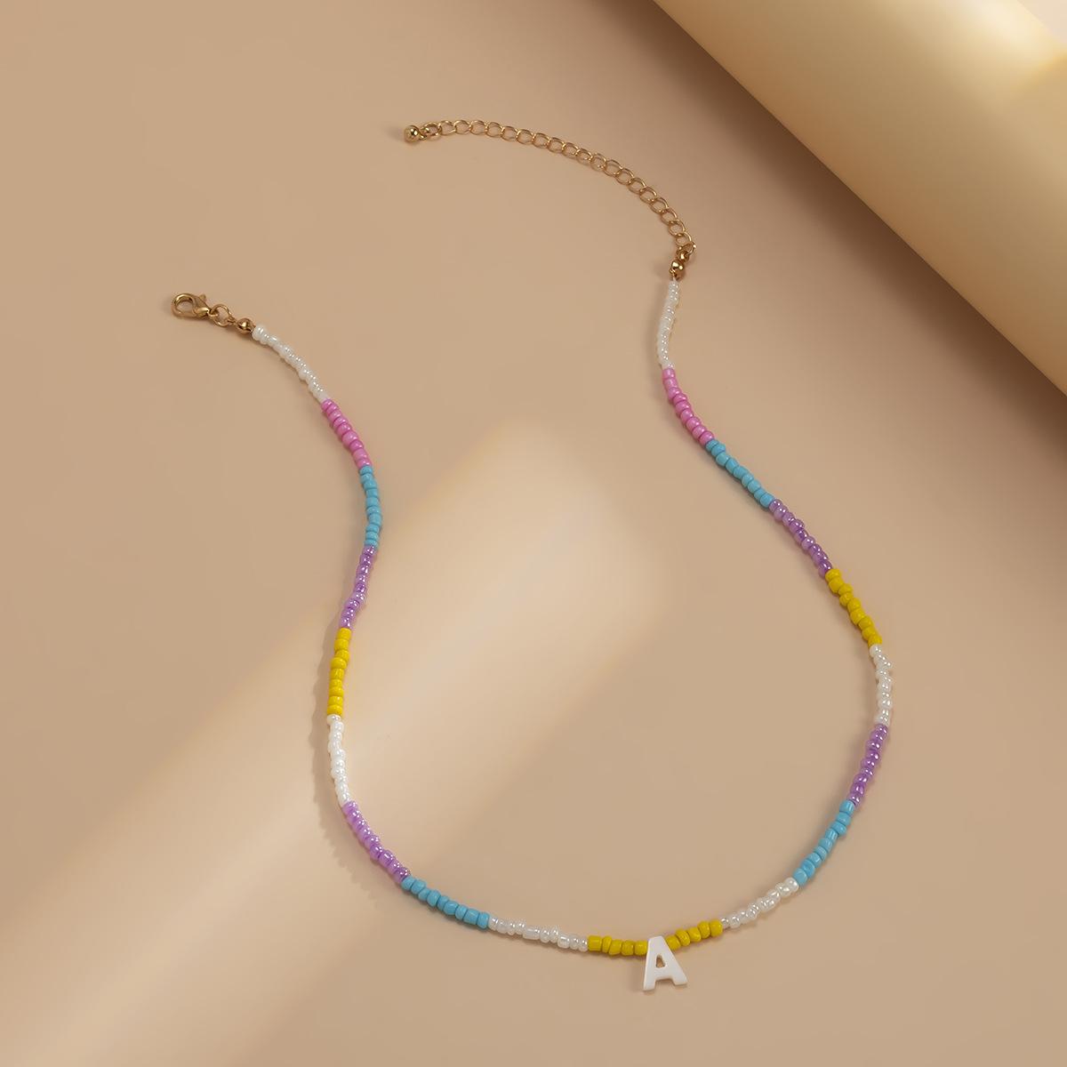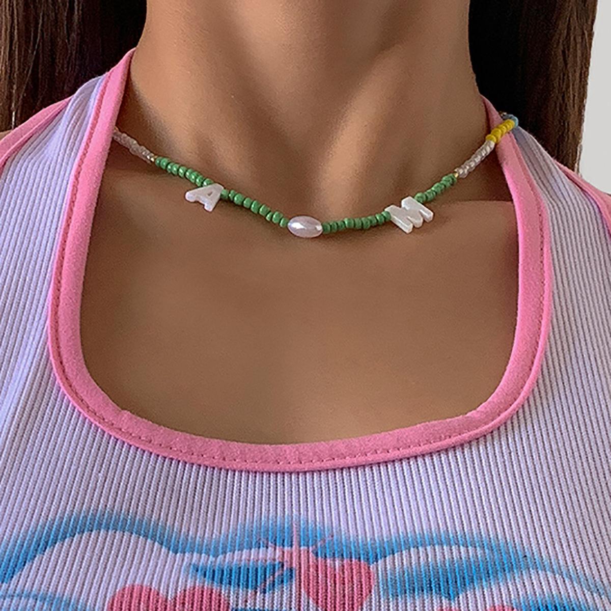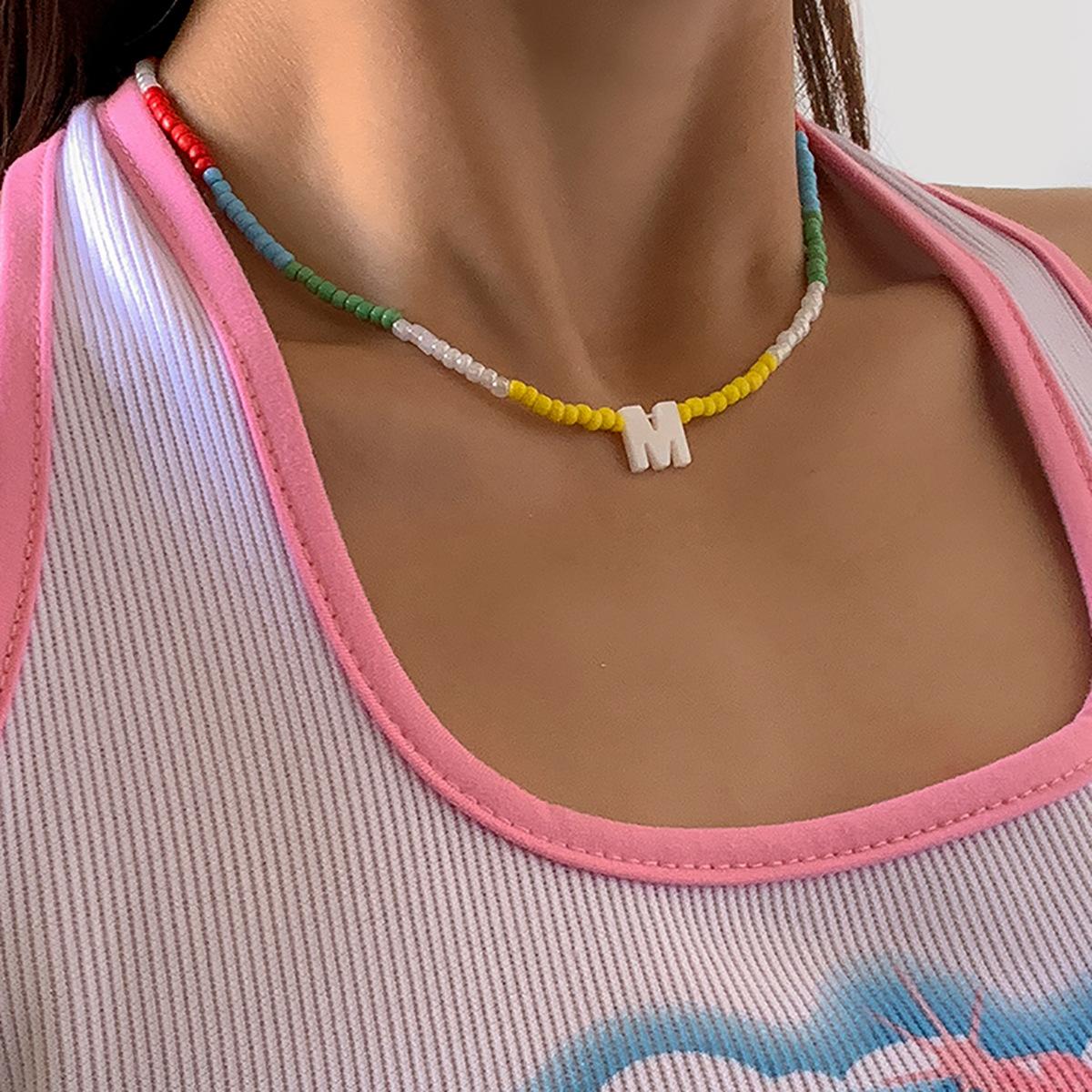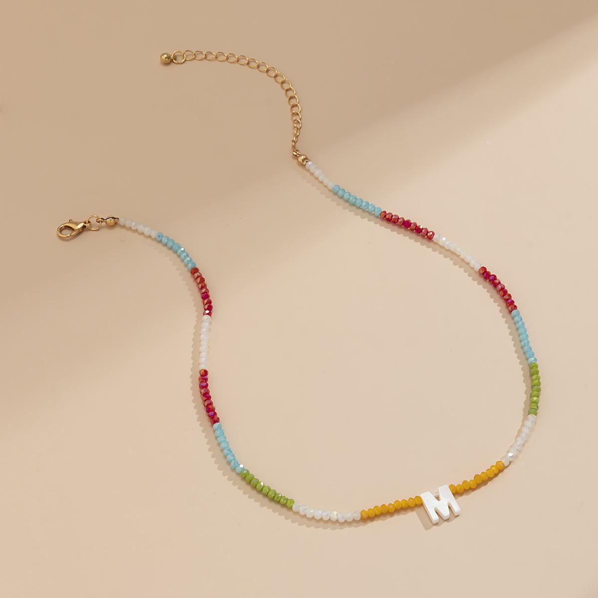 Collar de clavícula con cuentas de cristal de colores de estilo bohemio, collar con letras de perla y corazón de melocotón, estilo transfronterizo europeo y americano.