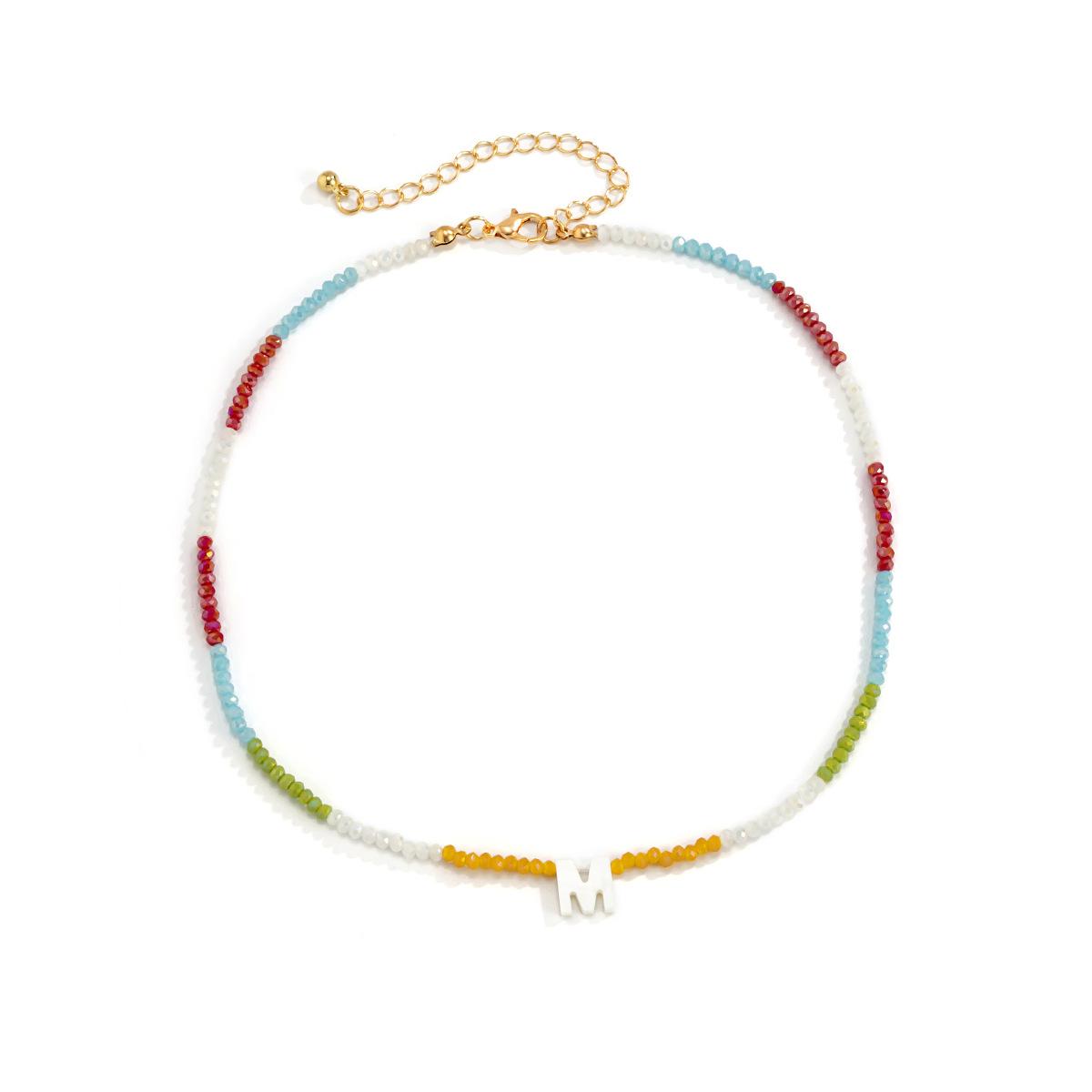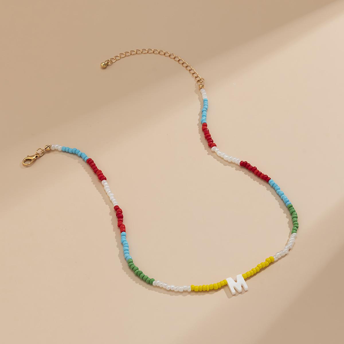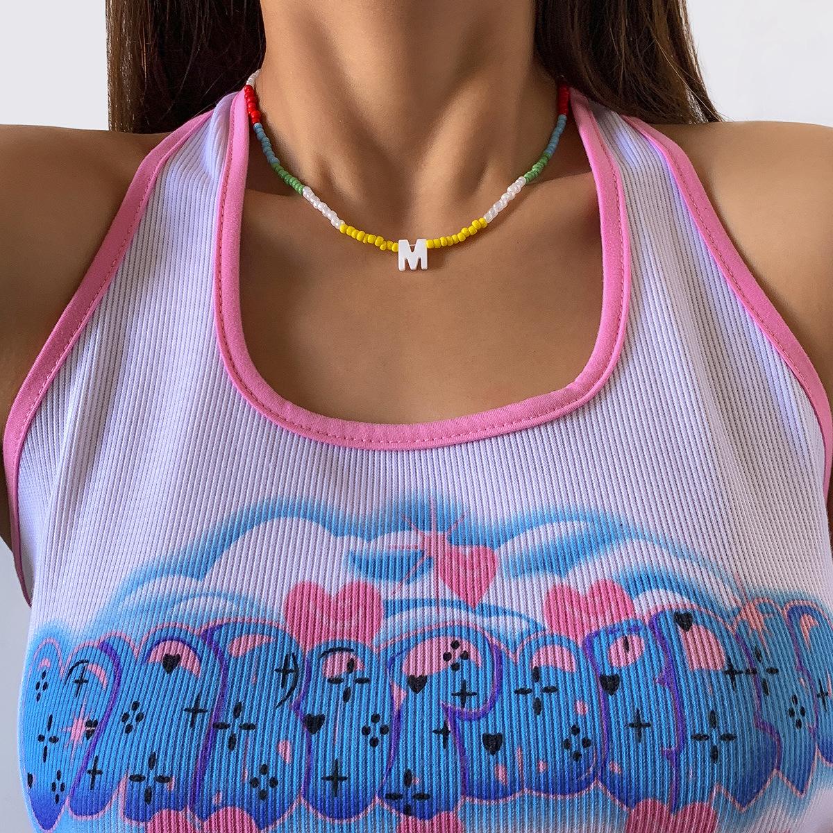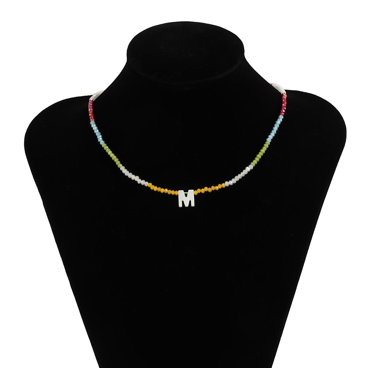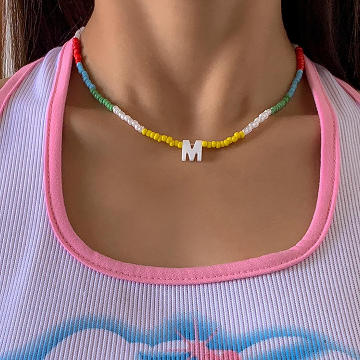 Collar de clavícula con cuentas de cristal de colores de estilo bohemio, collar con letras de perla y corazón de melocotón, estilo transfronterizo europeo y americano.