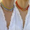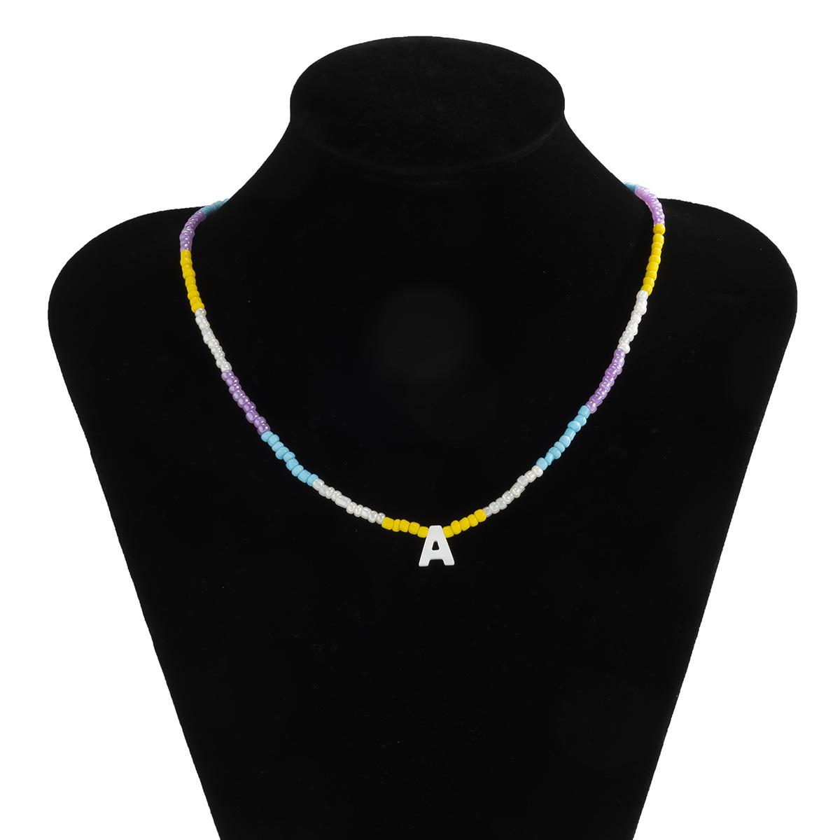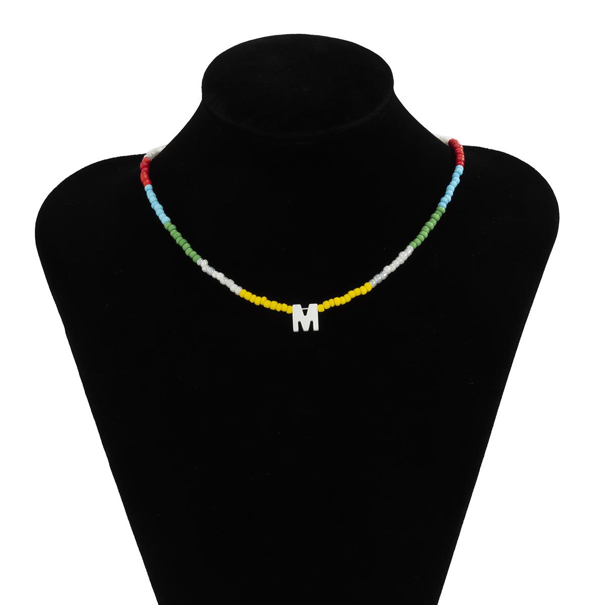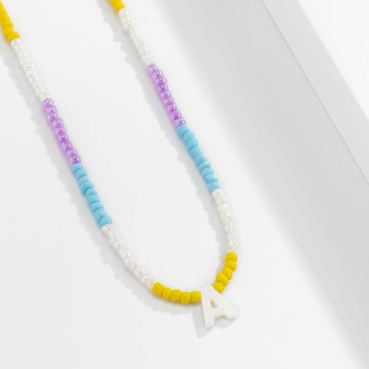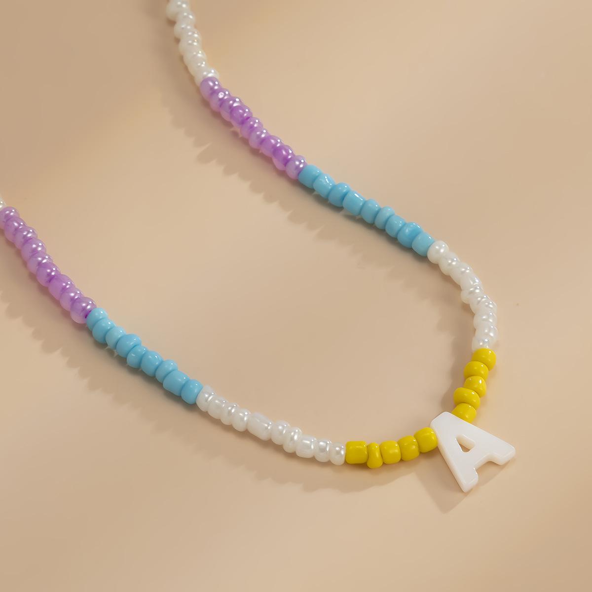 Collar de clavícula con cuentas de cristal de colores de estilo bohemio, collar con letras de perla y corazón de melocotón, estilo transfronterizo europeo y americano.