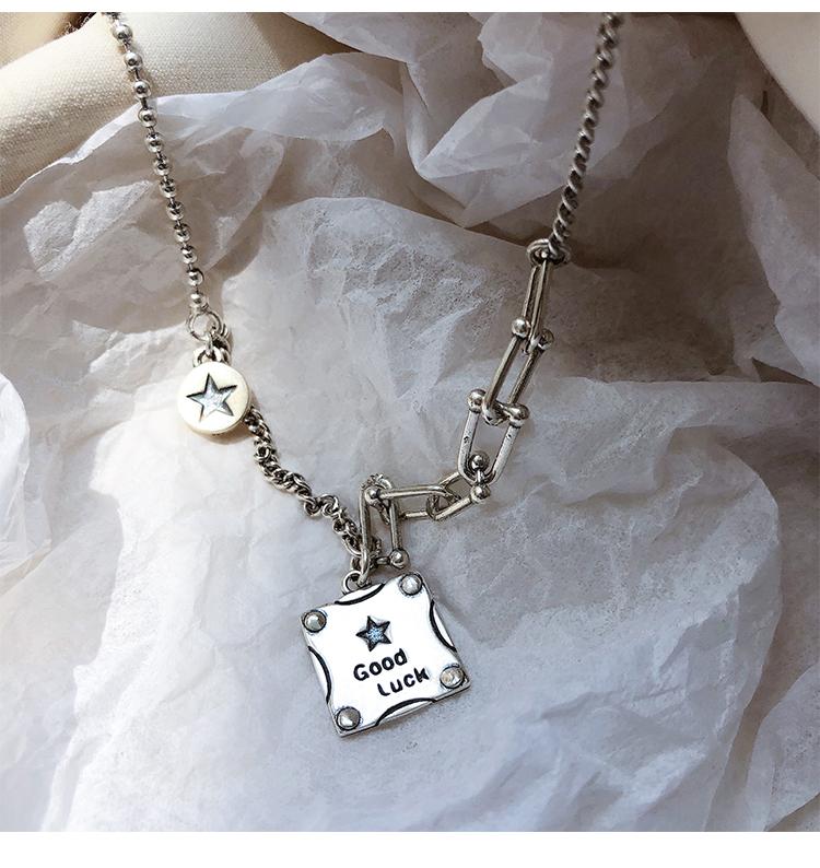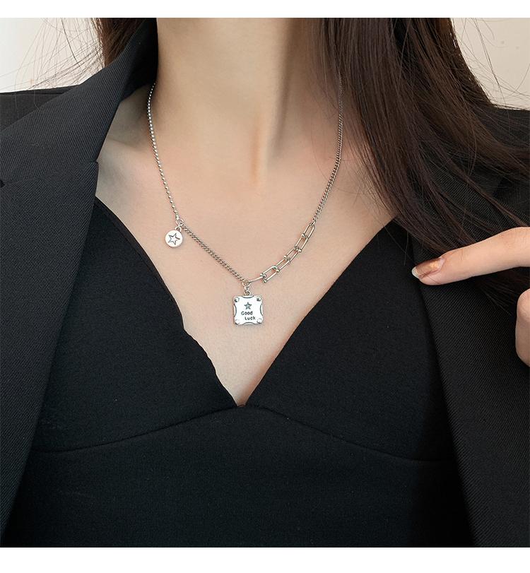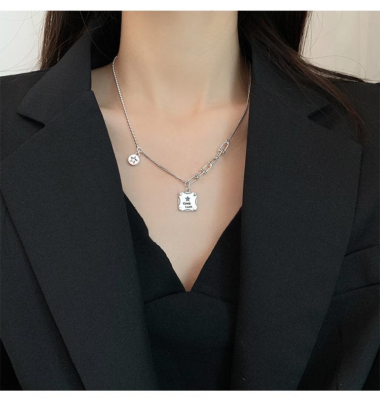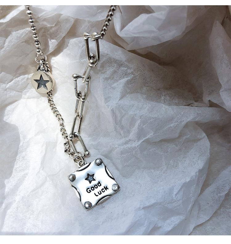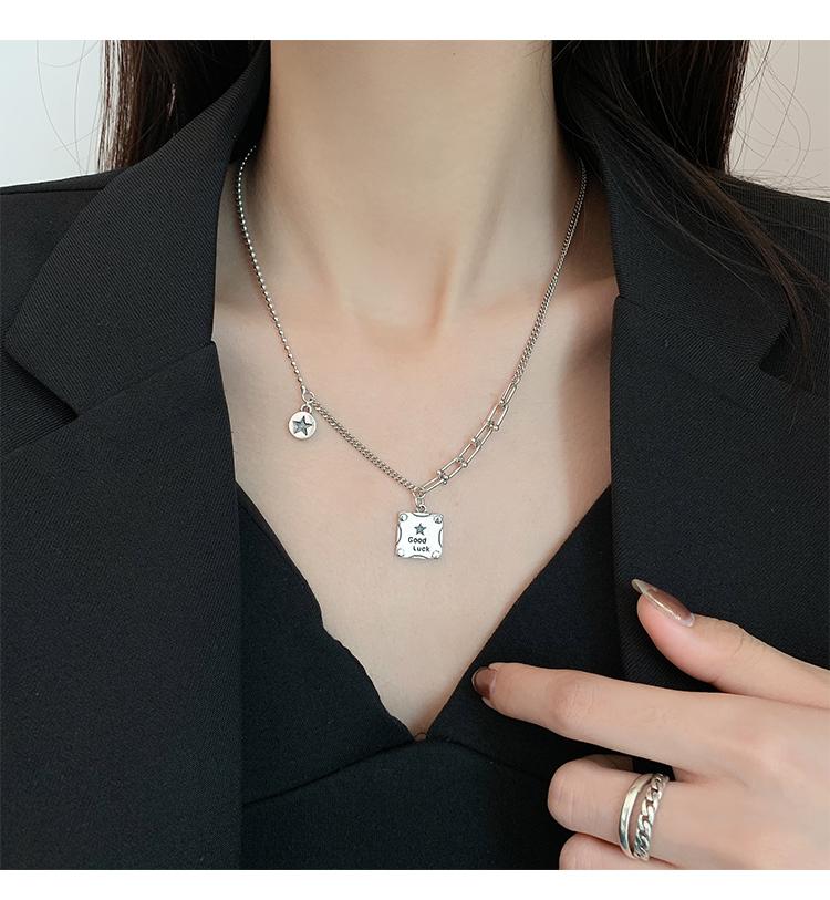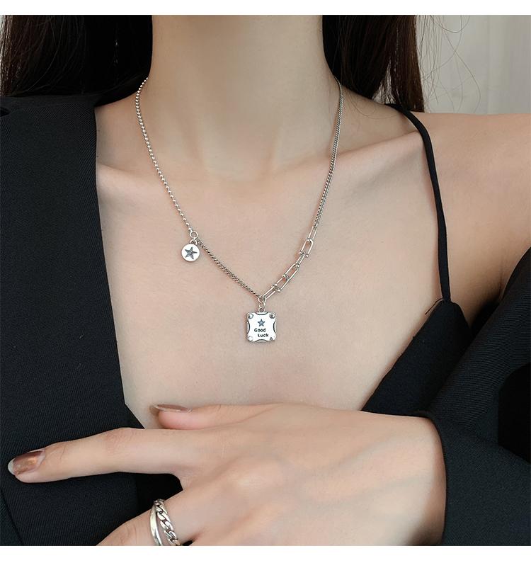 Collar de plata s925 con forma de estrella cuadrada y buena suerte, cadena de clavícula de lujo con nicho, joyería elegante retro para mujer