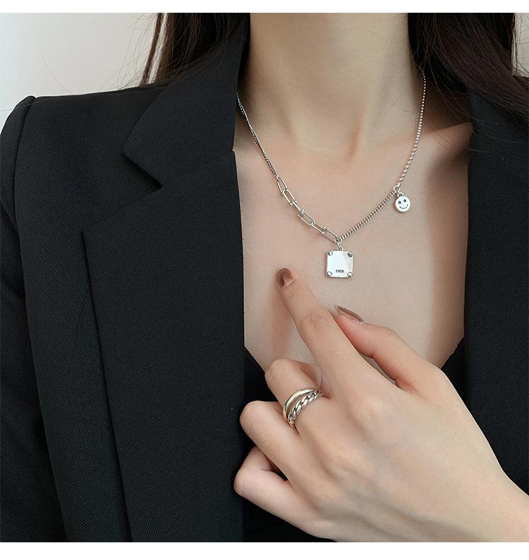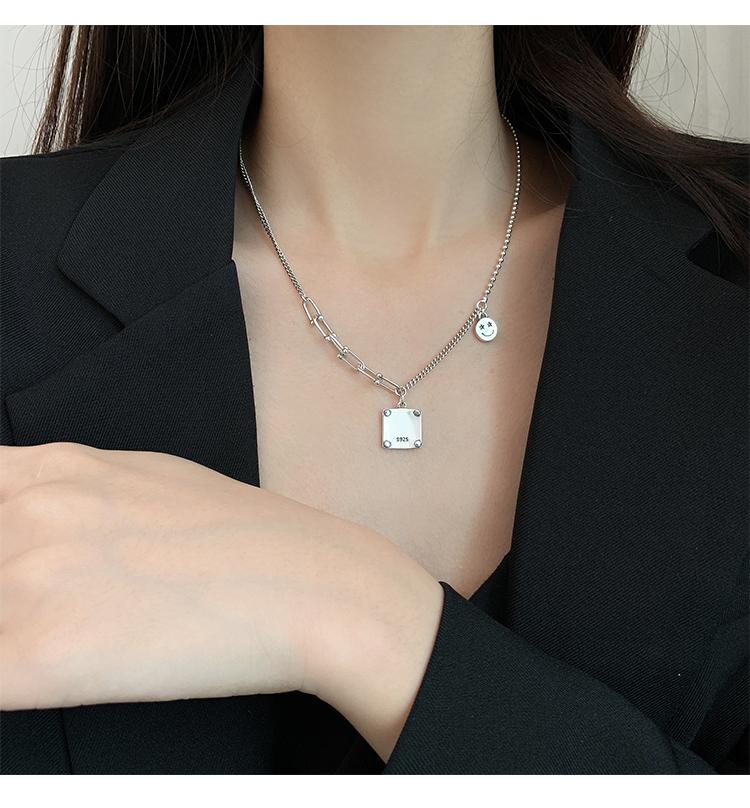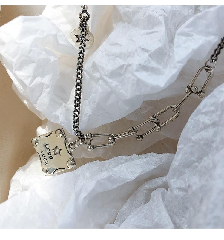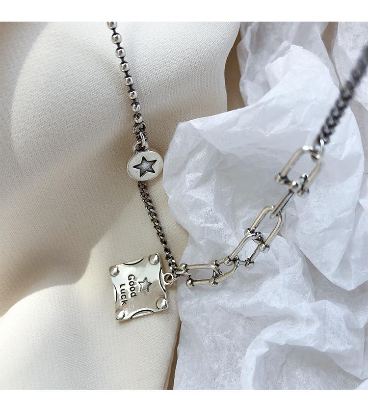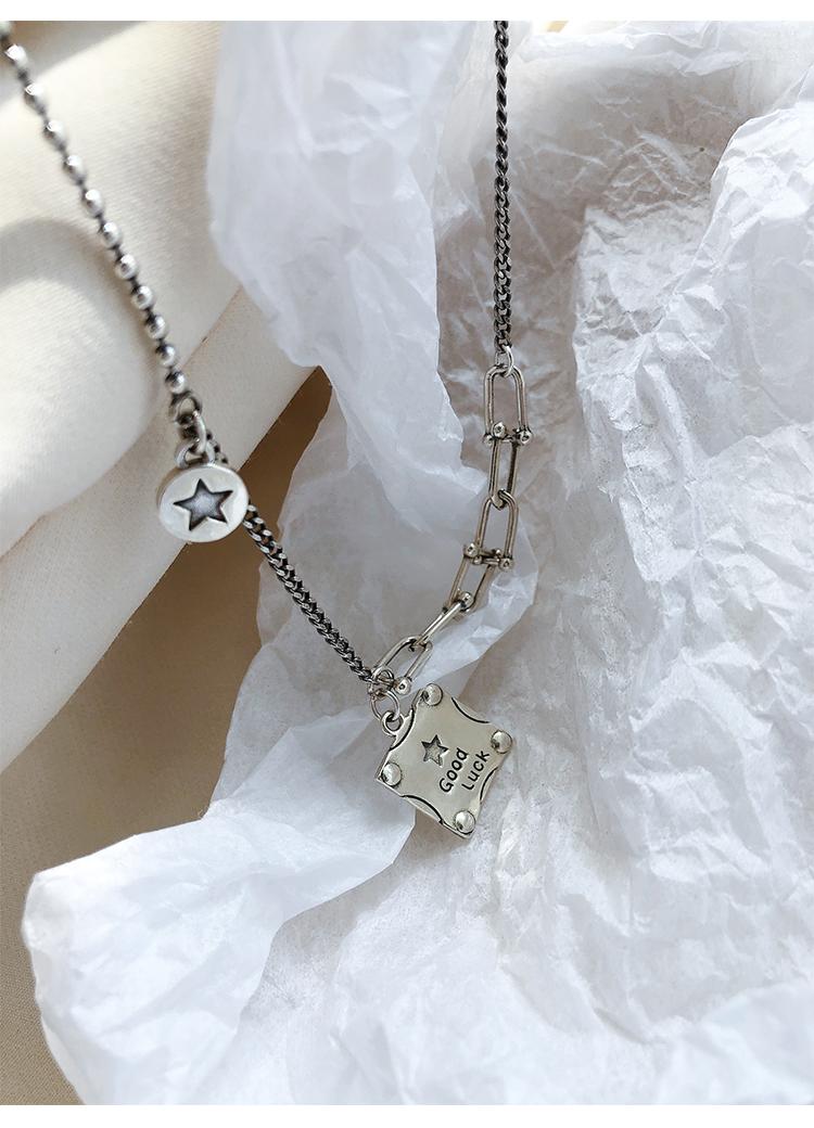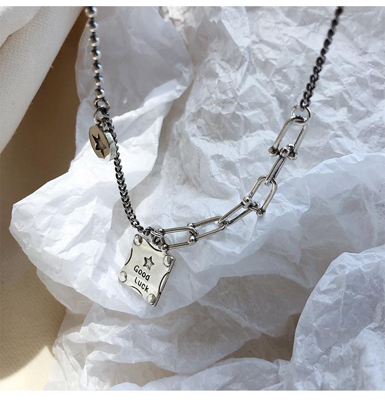 Collar de plata s925 con forma de estrella cuadrada y buena suerte, cadena de clavícula de lujo con nicho, joyería elegante retro para mujer