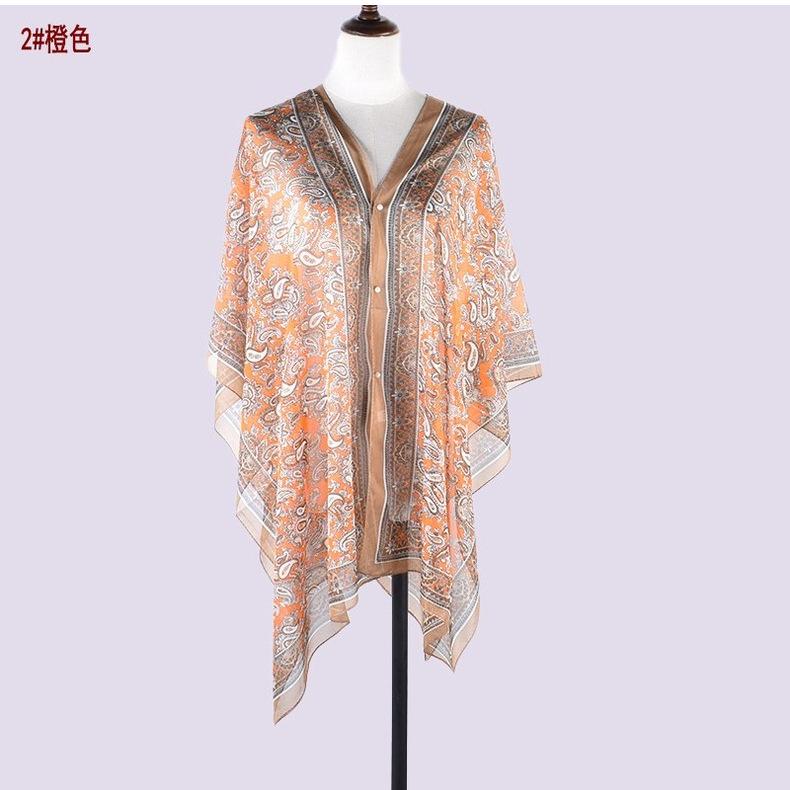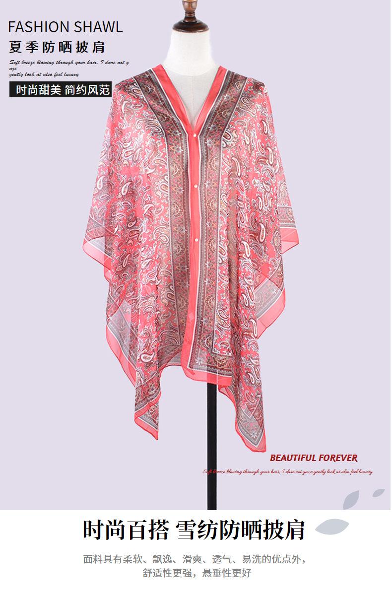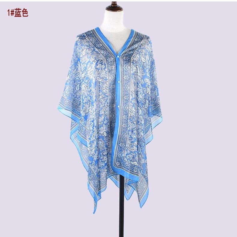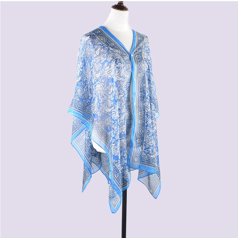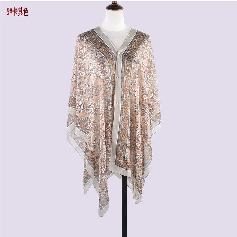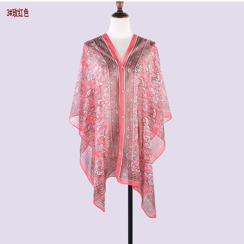 Ropa de Protección Solar Fina de Verano para Mujer con Hombro Descubierto, Estampado de Flor de Anacardo, Chal de Gasa, Viaje Marítimo, Hebilla de Perla, Toalla de Playa