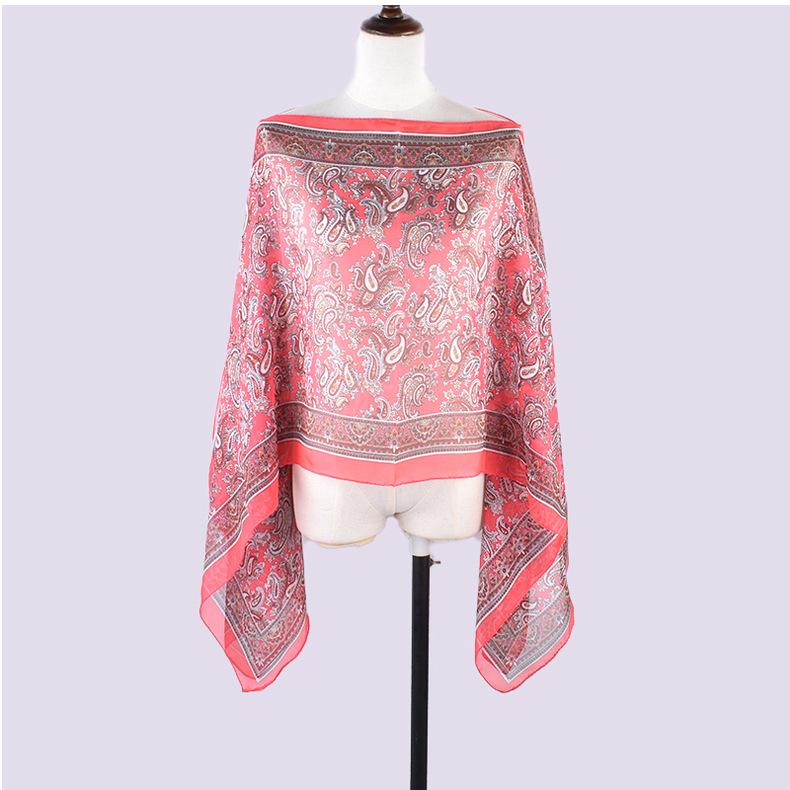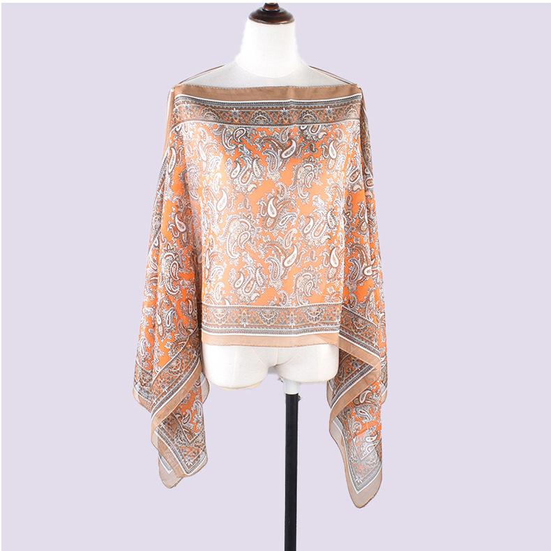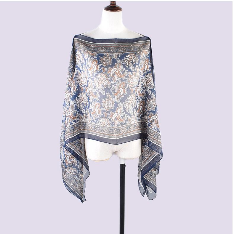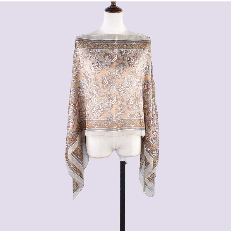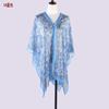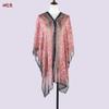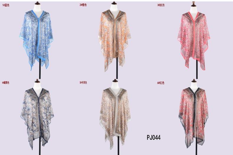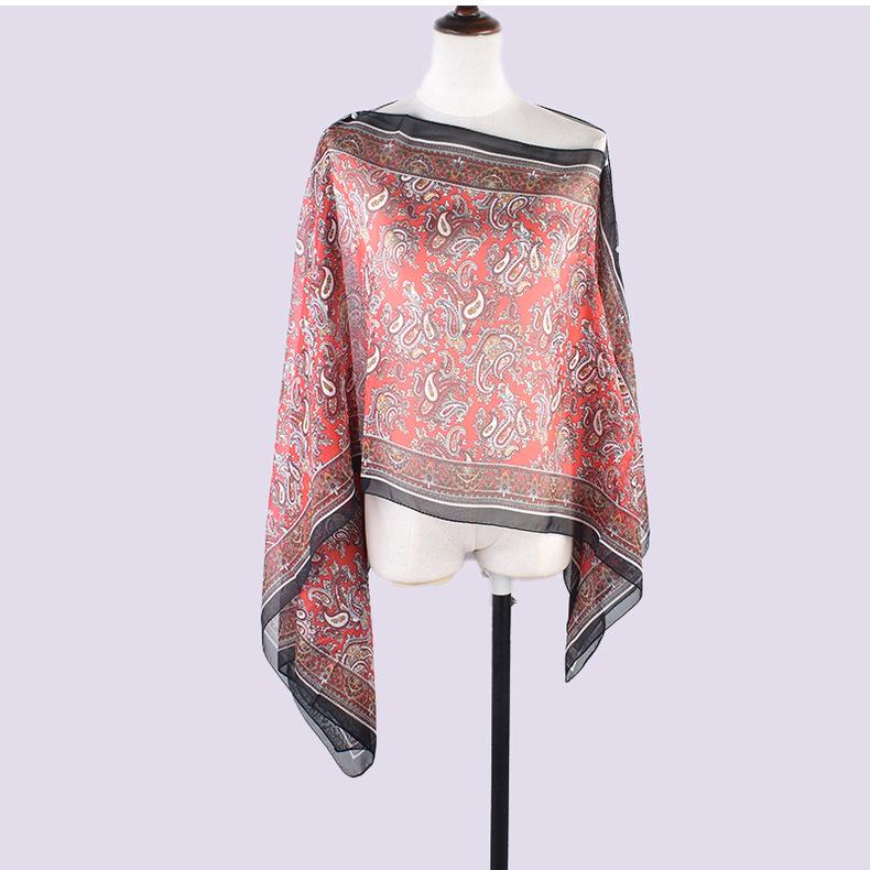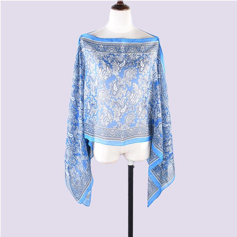 Ropa de Protección Solar Fina de Verano para Mujer con Hombro Descubierto, Estampado de Flor de Anacardo, Chal de Gasa, Viaje Marítimo, Hebilla de Perla, Toalla de Playa