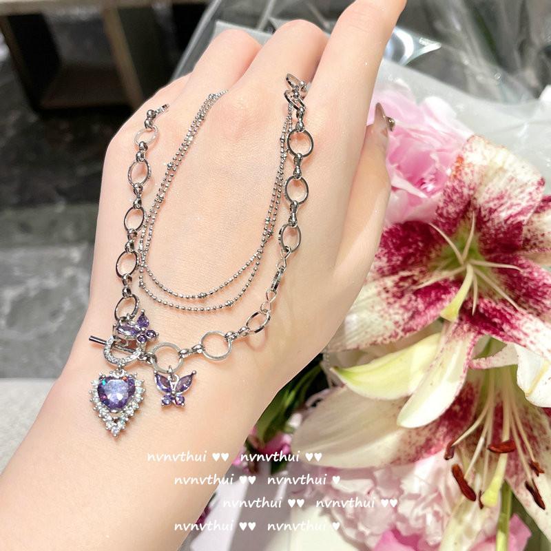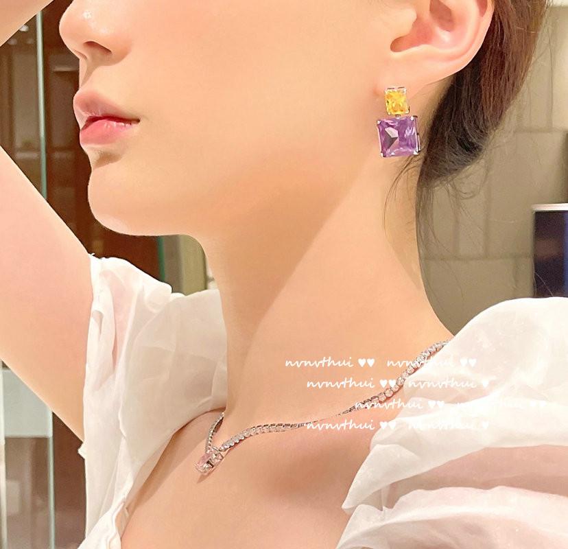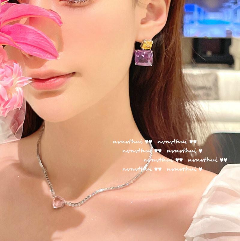 Collar Amor Gema Púrpura Uva Polka Corte Fino Americano Chapado en Oro de 18K Polvo de Caramelo Geométrico Aretes de Circonita