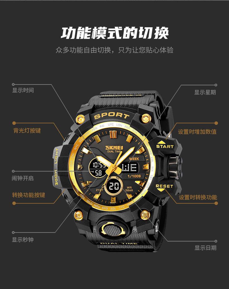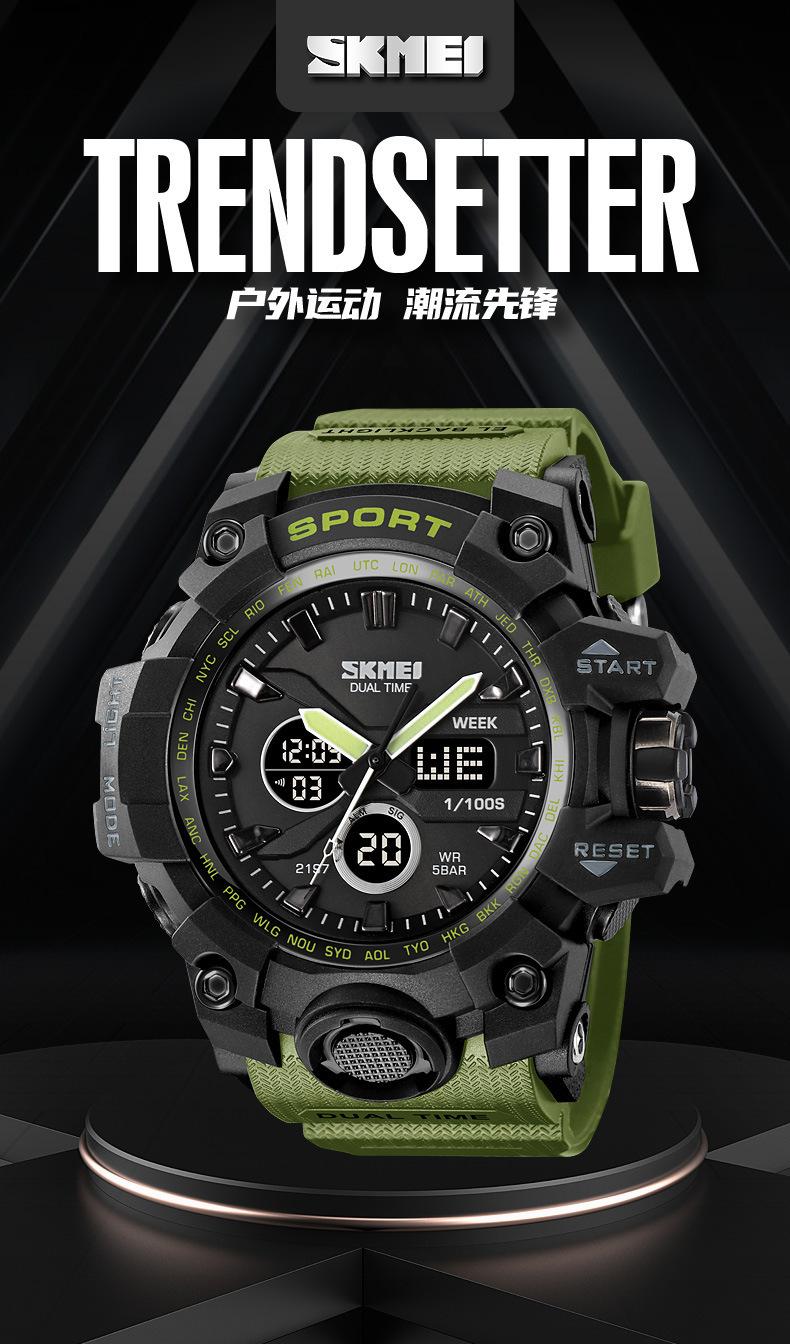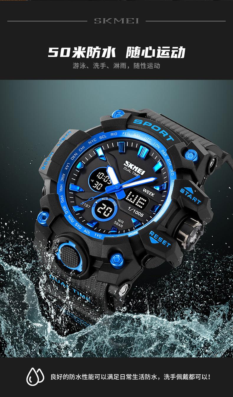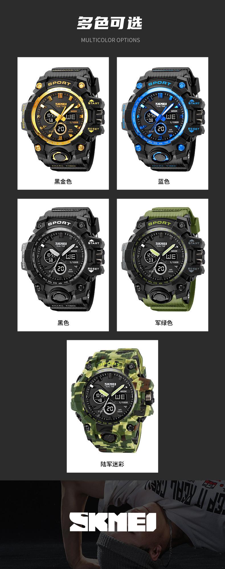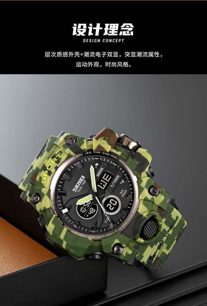 Reloj deportivo Skmei para estudiantes, multifuncional, resistente al agua, con alarma, electrónico, con camuflaje y luminoso, para hombre.