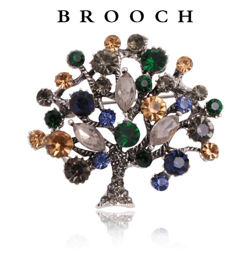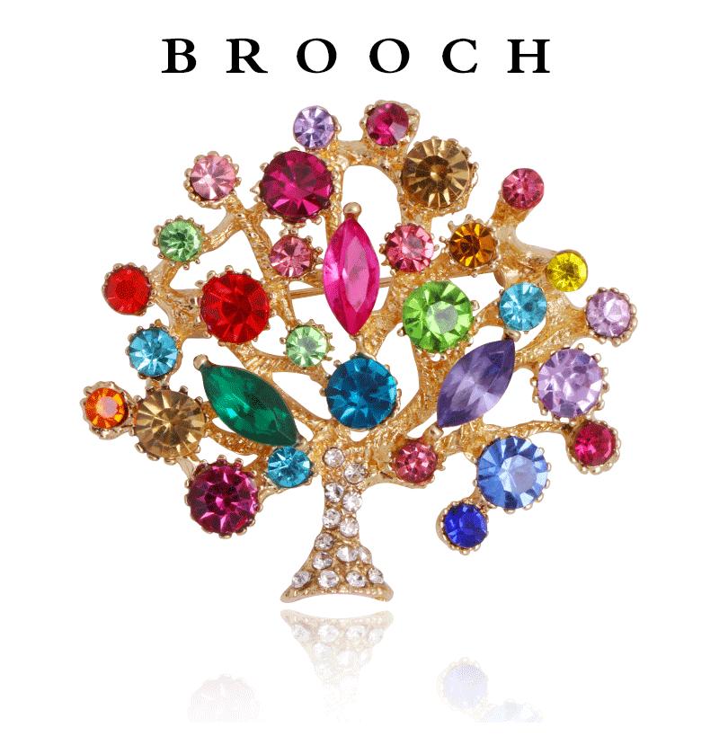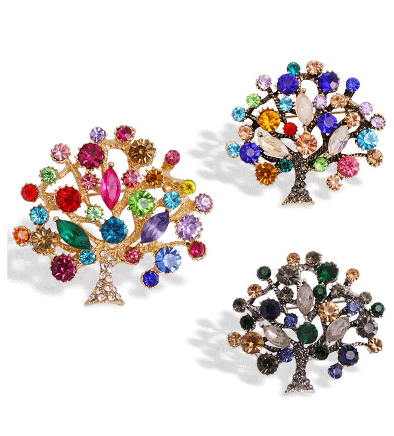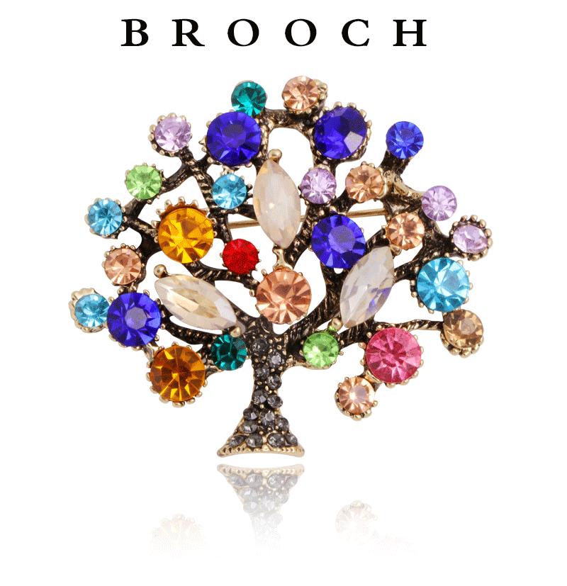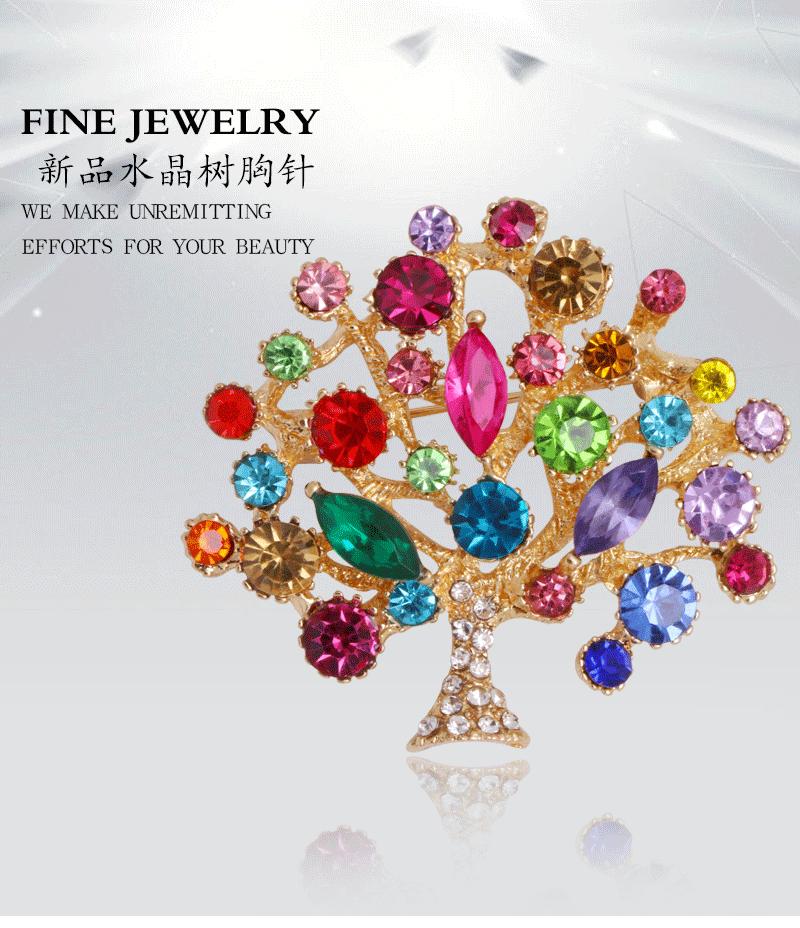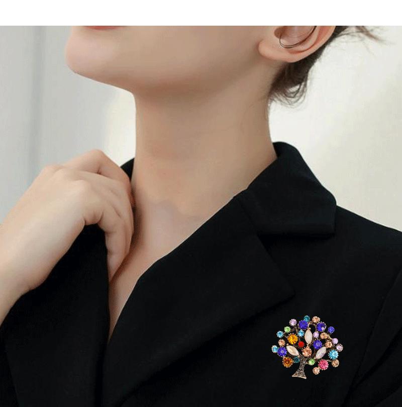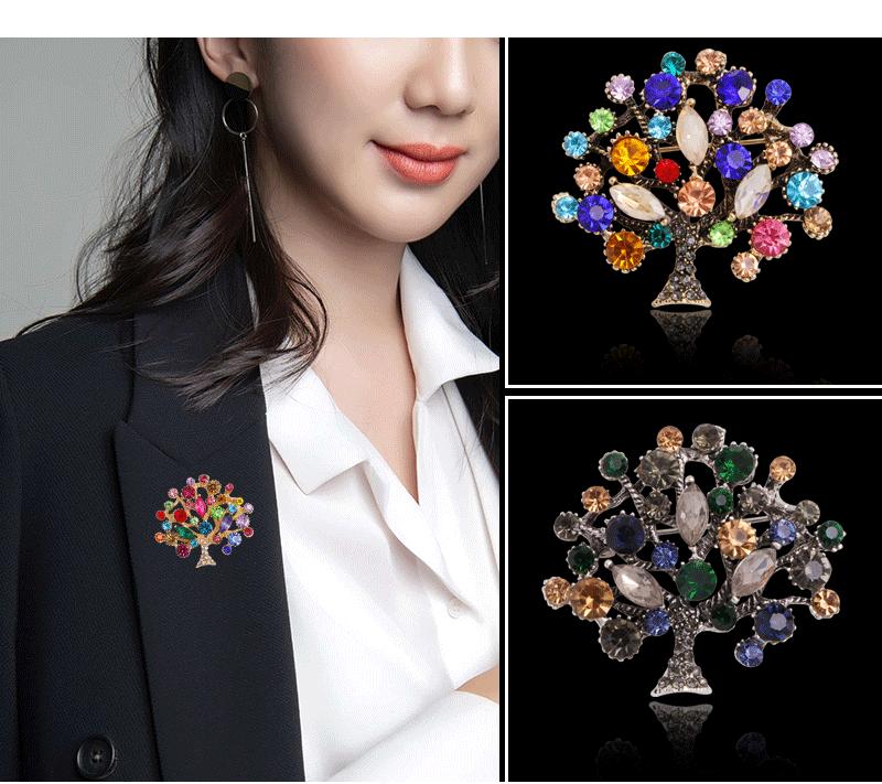 Broche de Moda Europea y Americana Transfronteriza con Circonitas Coloridas Incrustadas de Diamantes Moda Personalizada Corsage de Árbol Grande Pin para Mujer Accesorios de Ropa