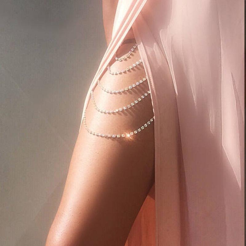 Cadena para pierna con cuerda elástica de Amazon, moderna, multicapa, con diamantes de imitación, adorno sexy para pierna, cadena para el cuerpo 06