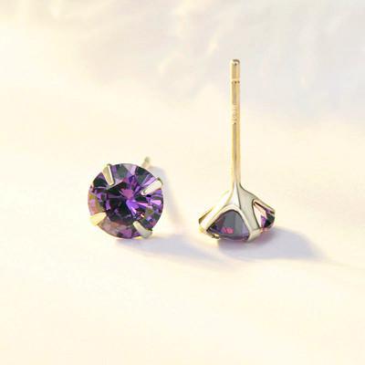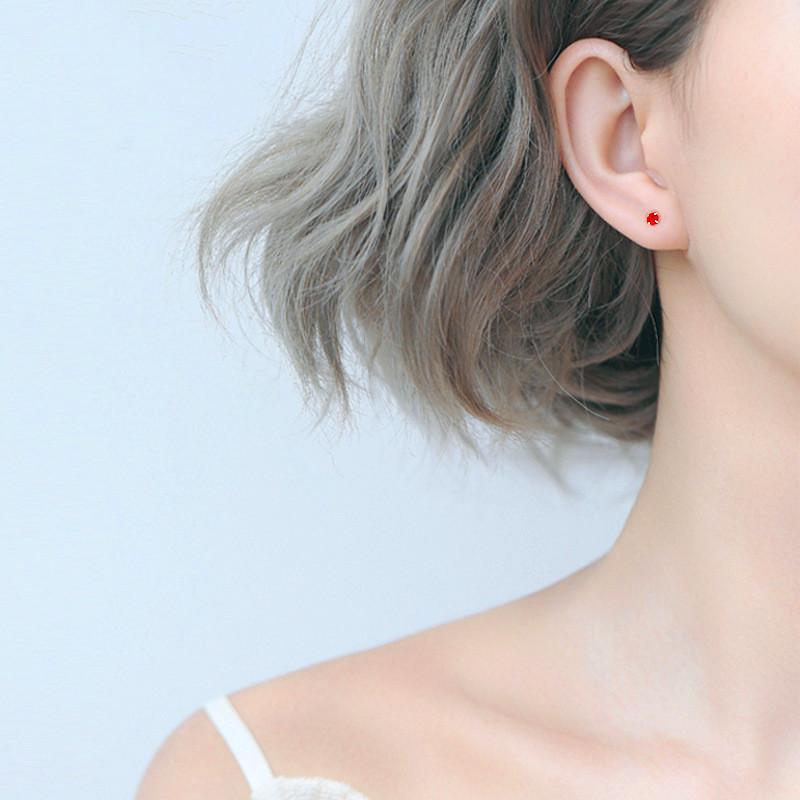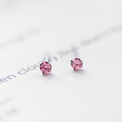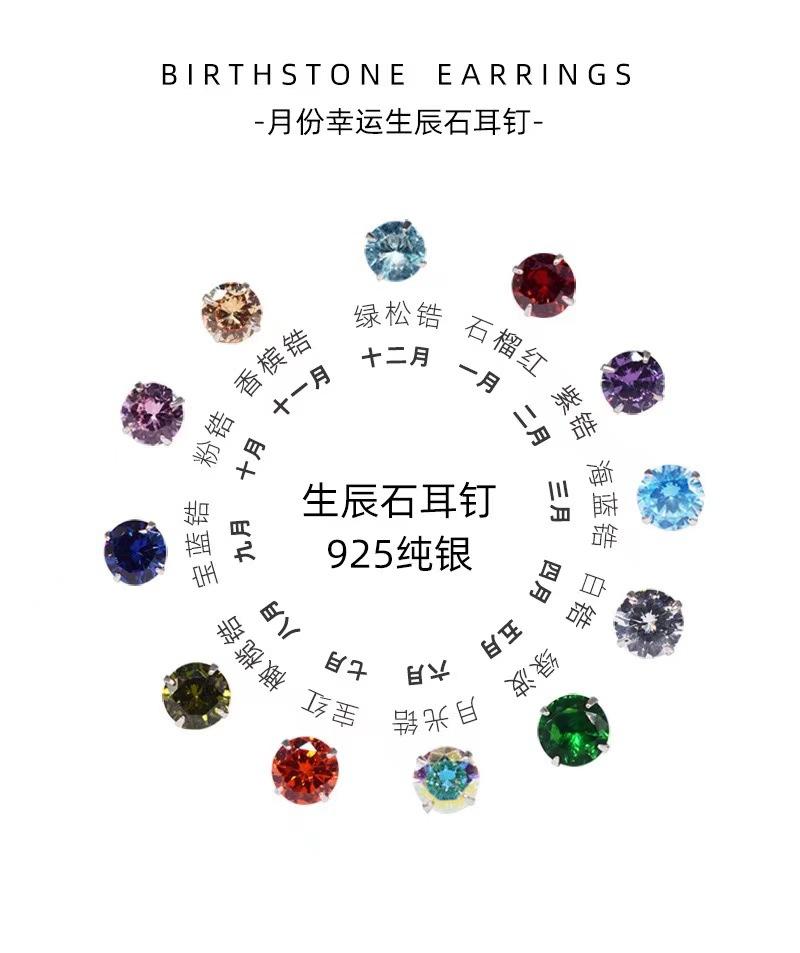 Pendientes pequeños con piedra de cumpleaños en plata de ley 925, con personalidad japonesa y coreana, combinables, estilo minimalista, mini pendientes antialérgicos, venta al por mayor de fábrica.