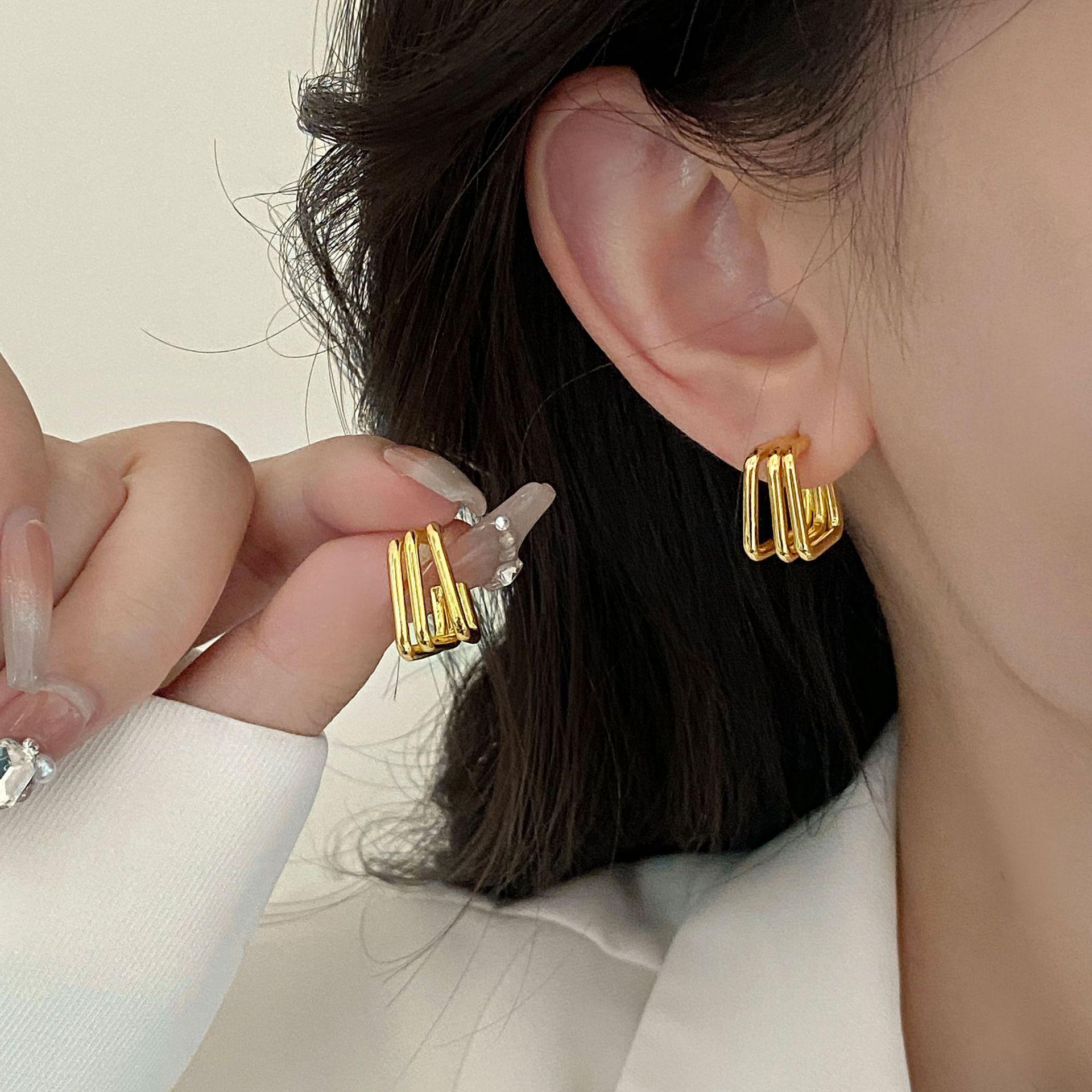 Nuevo estilo, pendientes de diseño de nicho de estilo lujoso y ligero para niñas, accesorios elegantes de estilo coreano a la moda, pendientes geométricos de moda que combinan con todo.