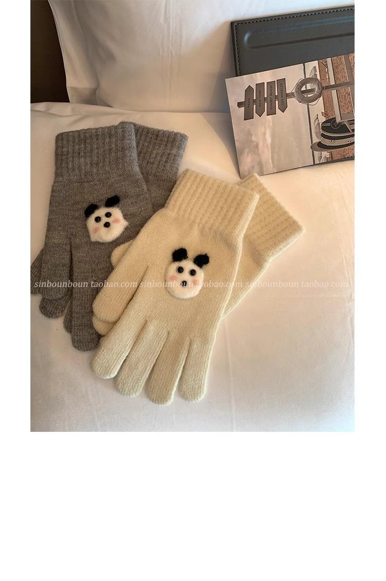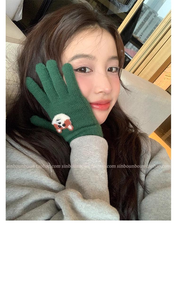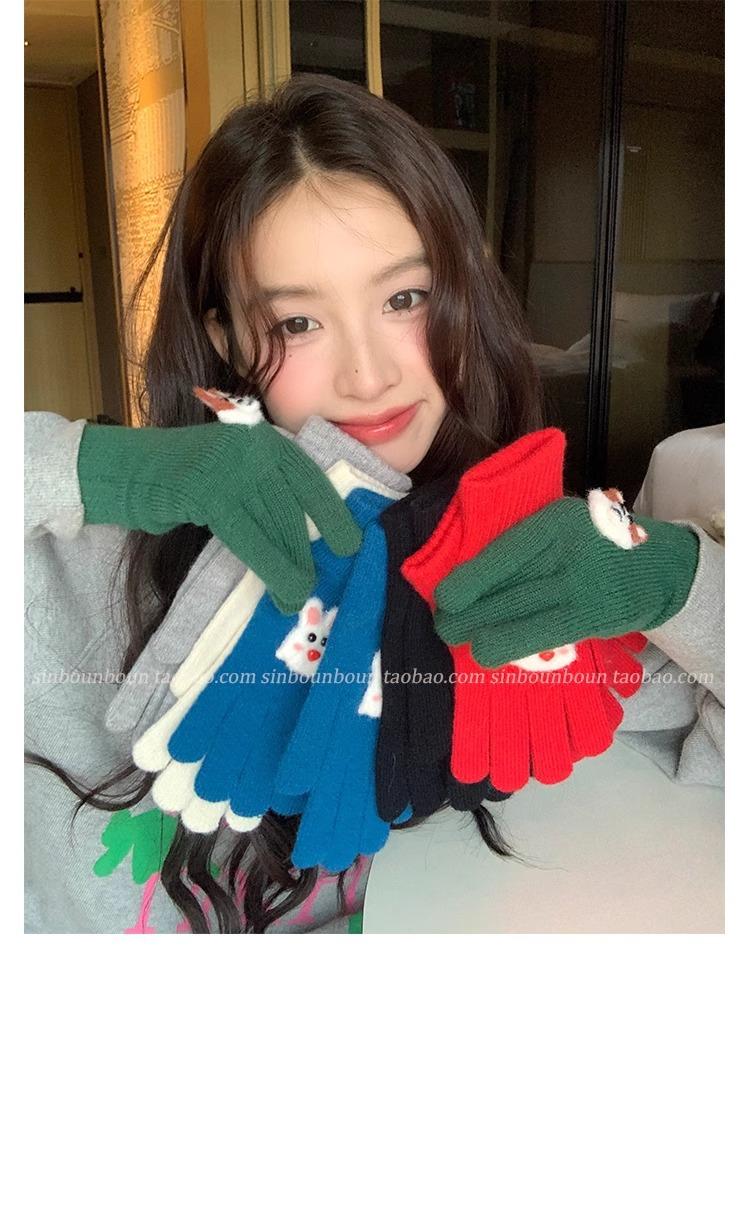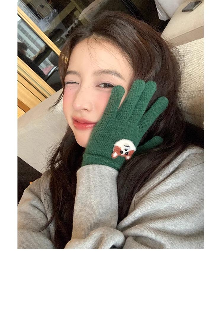 Nuevos guantes de cinco dedos de dibujos animados lindos otoño e invierno estudiantes combinan con todo para montar a prueba de frío cálidos guantes de punto para dedos moda femenina