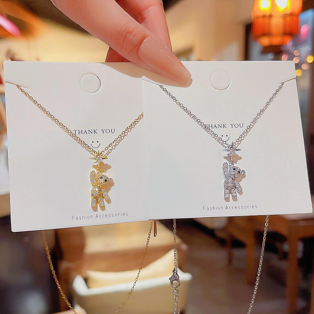 Collar de acero de titanio con diseño de oso, diseño de oso, nueva entrada, colgante de nicho de lujo, cadena de clavícula, accesorios de collar sin color para mujer