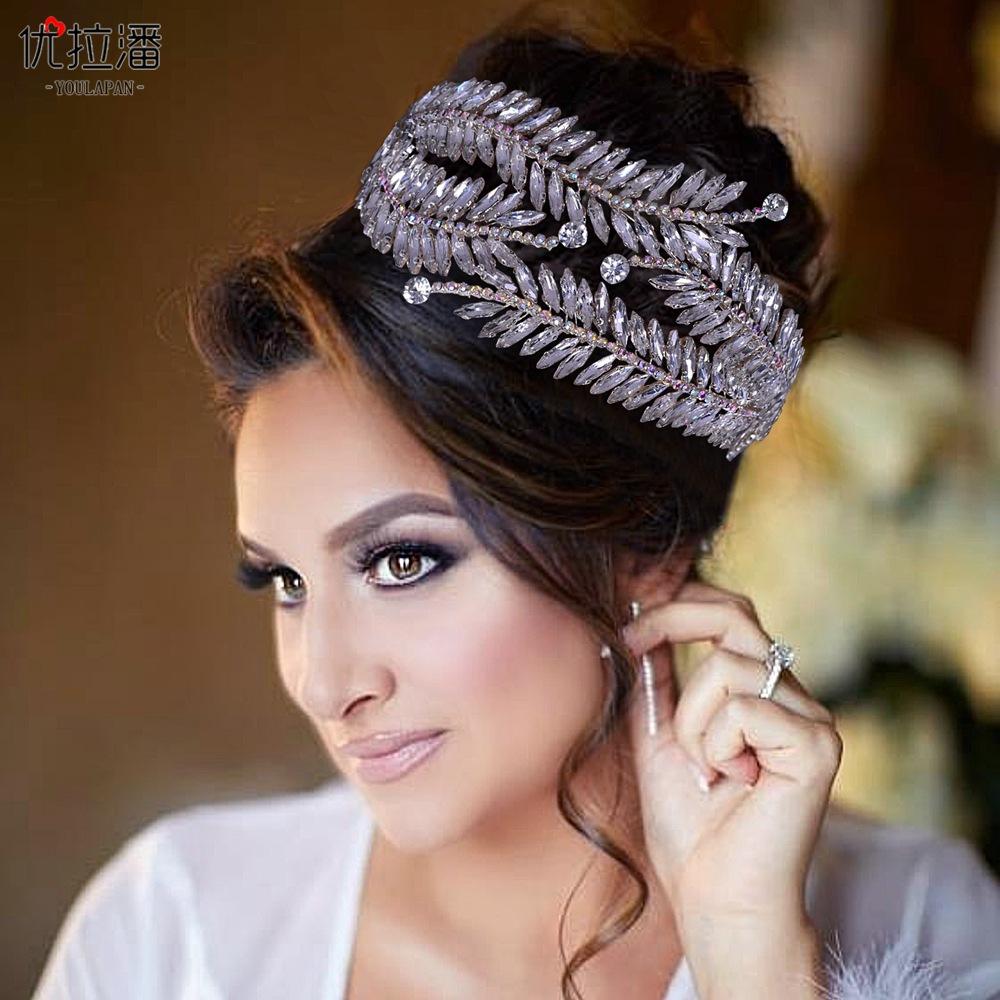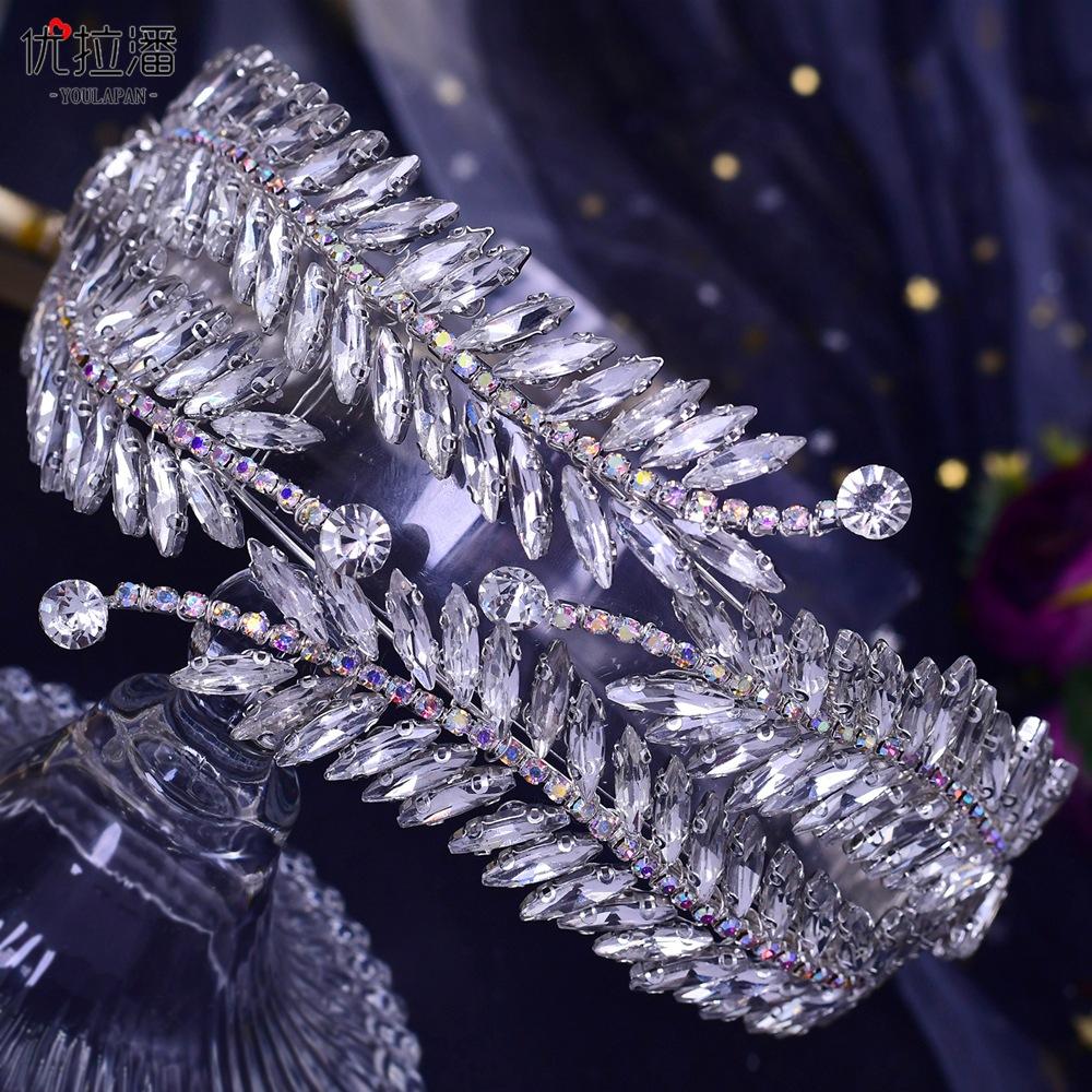 Eulapan Tocado Nupcial Europeo y Americano Aro para el Cabello Accesorios para Vestido de Novia Accesorios para el Cabello Color Mágico Doble Hilo Pedrería Ojo de Caballo HP419