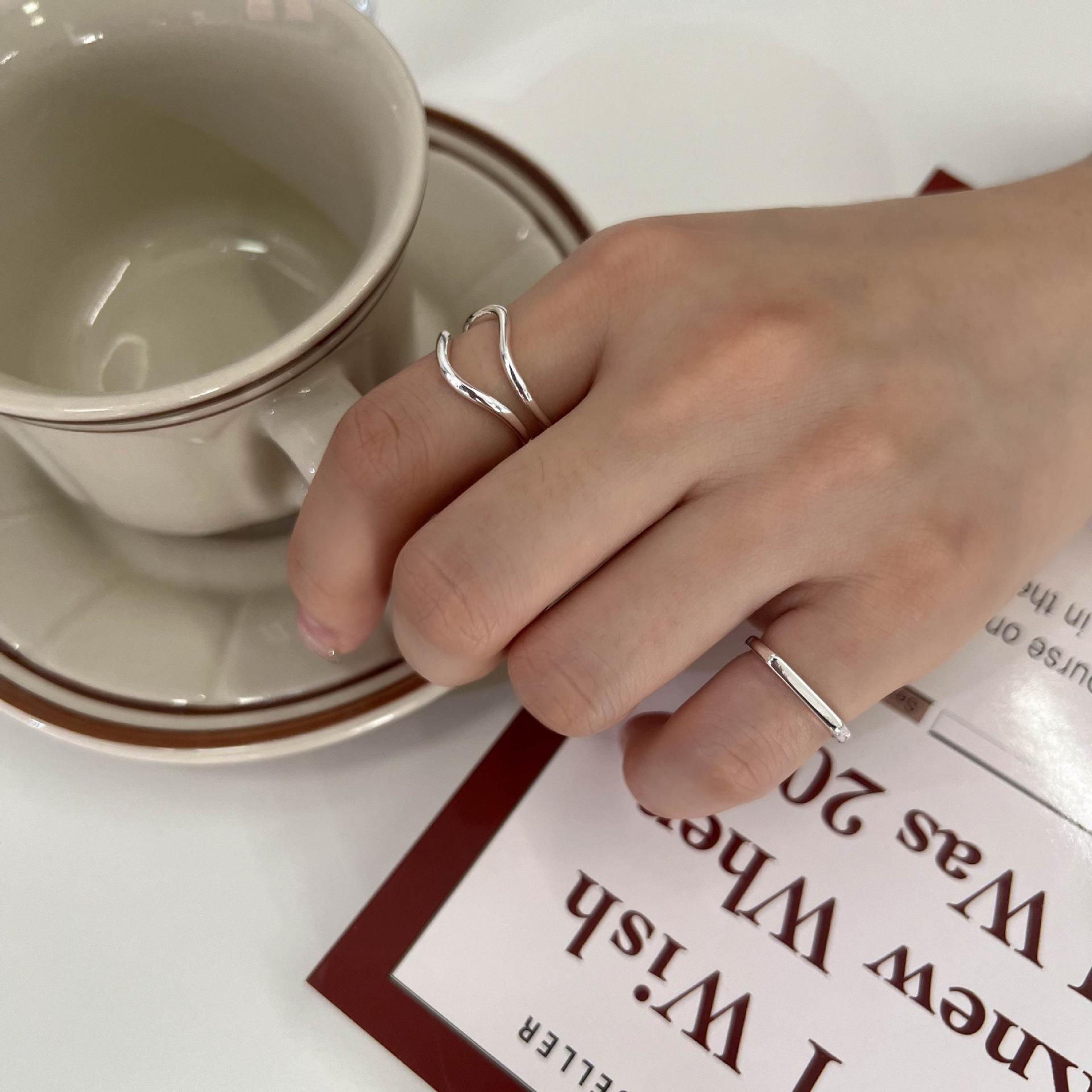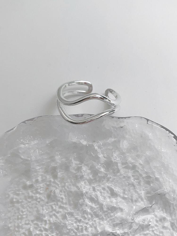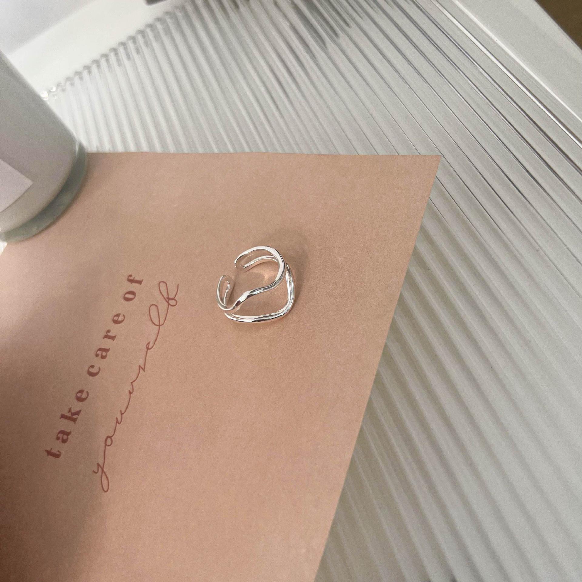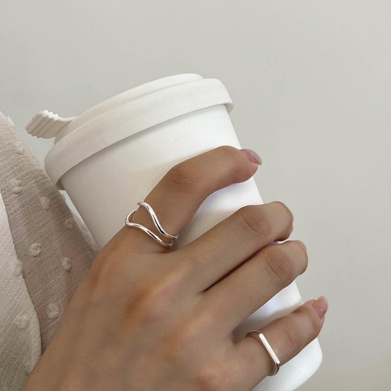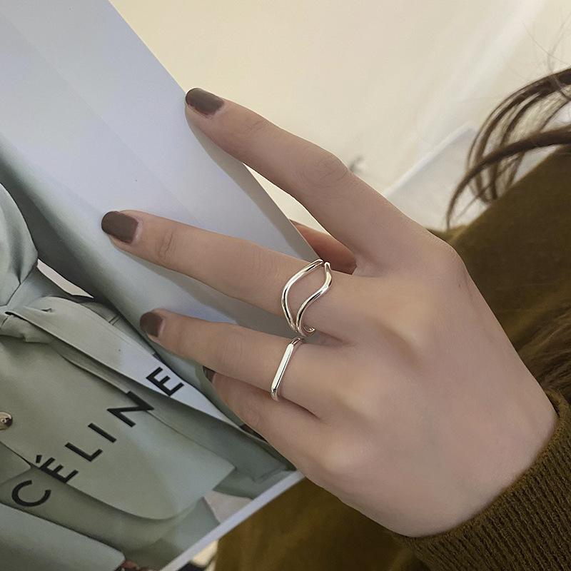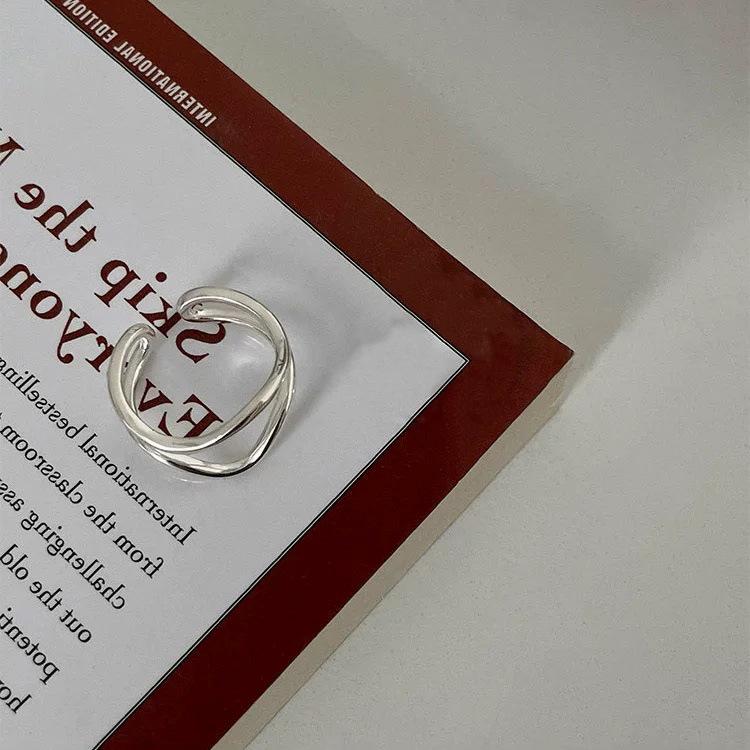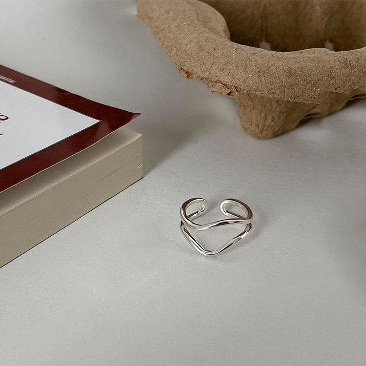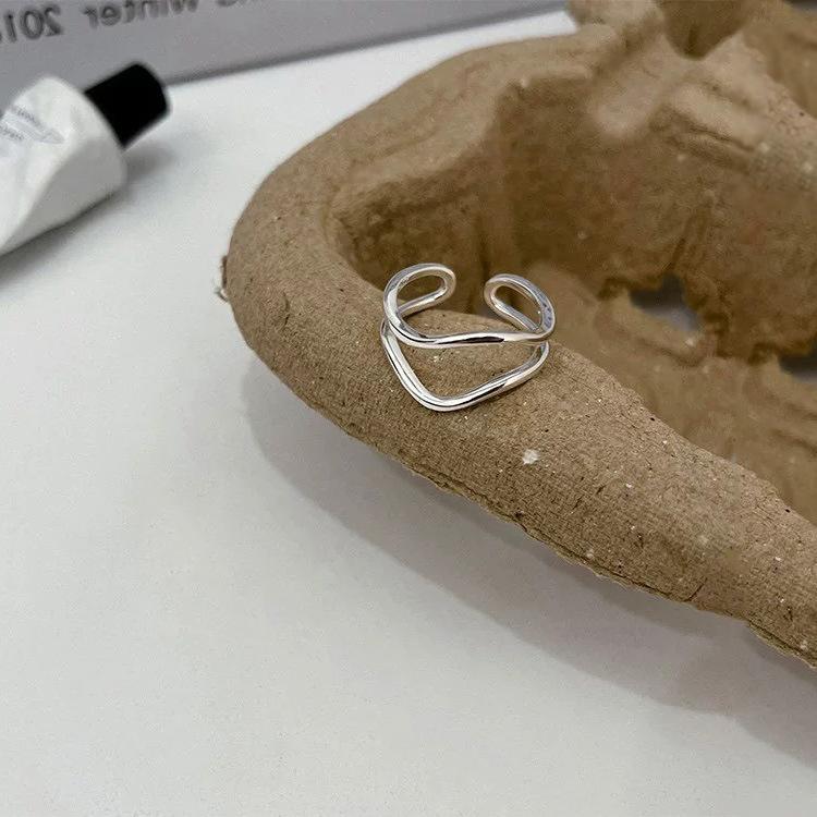 Anillo de doble capa con ondas de plata esterlina S925 para mujer, nuevo y moderno anillo abierto irregular con diseño de nicho de estilo minimalista.