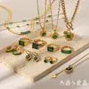 Collar, pendientes, pulsera, anillo, temperamento, serie de circonitas verdes de estilo retro de moda europea y americana, joyería de acero inoxidable para damas