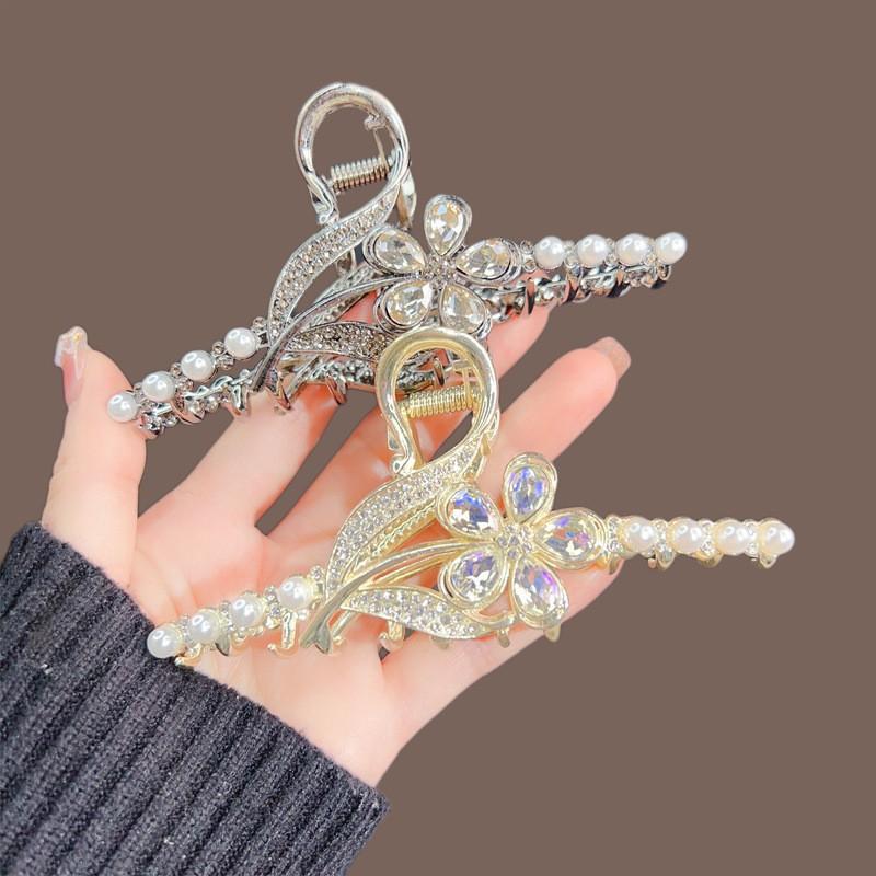 Nueva horquilla de metal con forma de flor de cristal de alta calidad, ligera, de lujo, con clip de tiburón grande, placa para la cabeza, pinza para el cabello