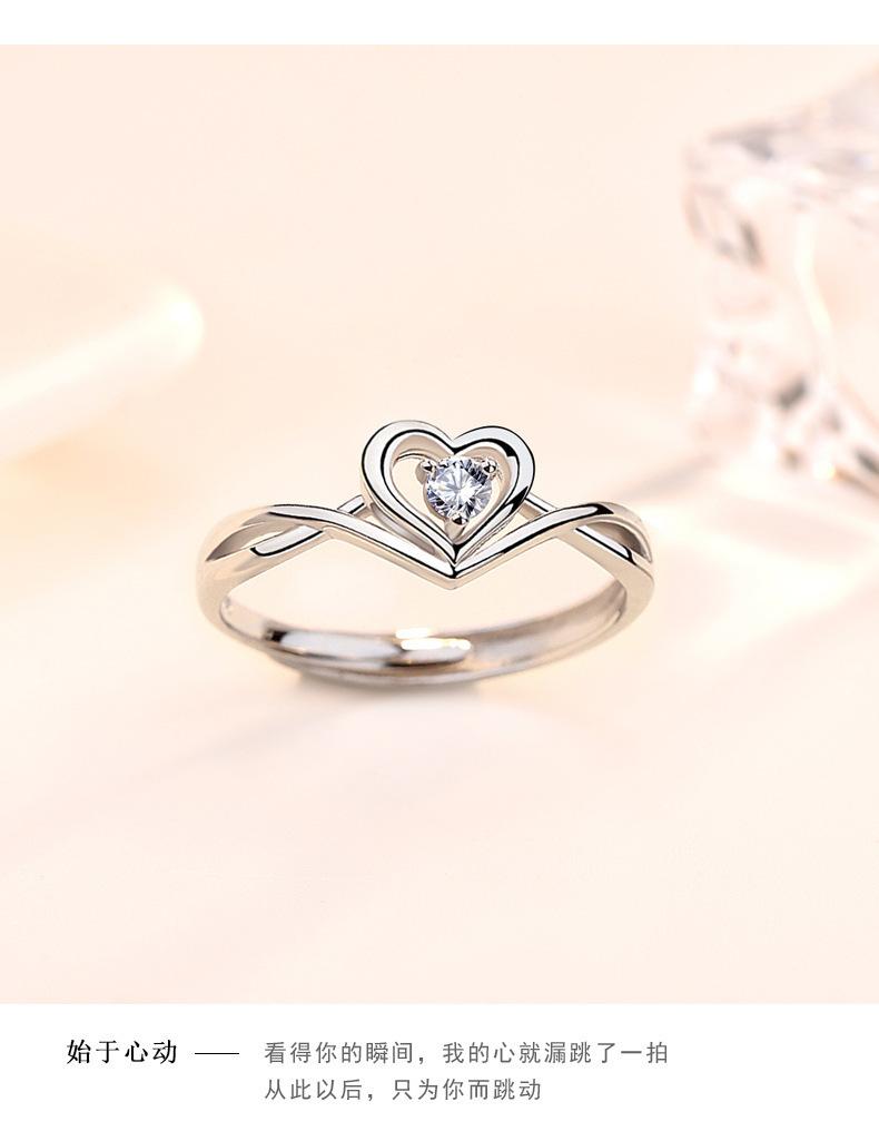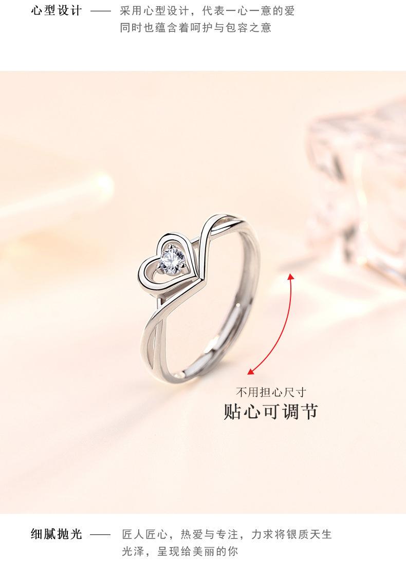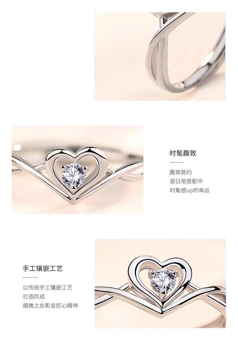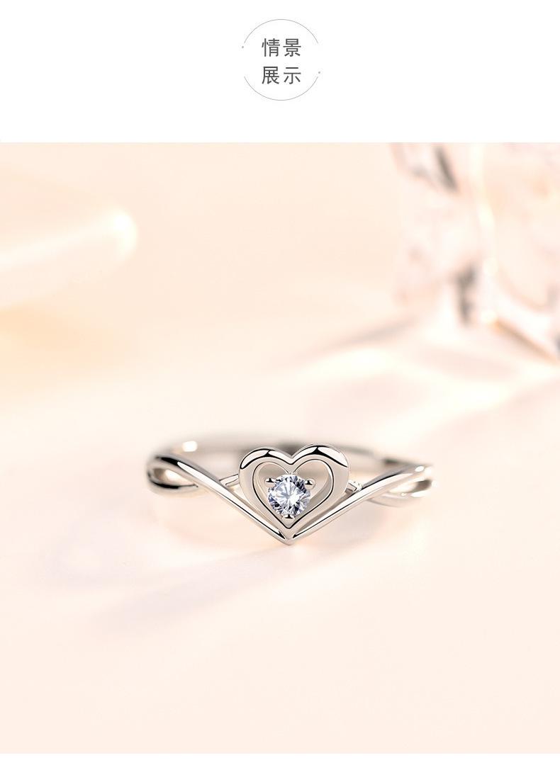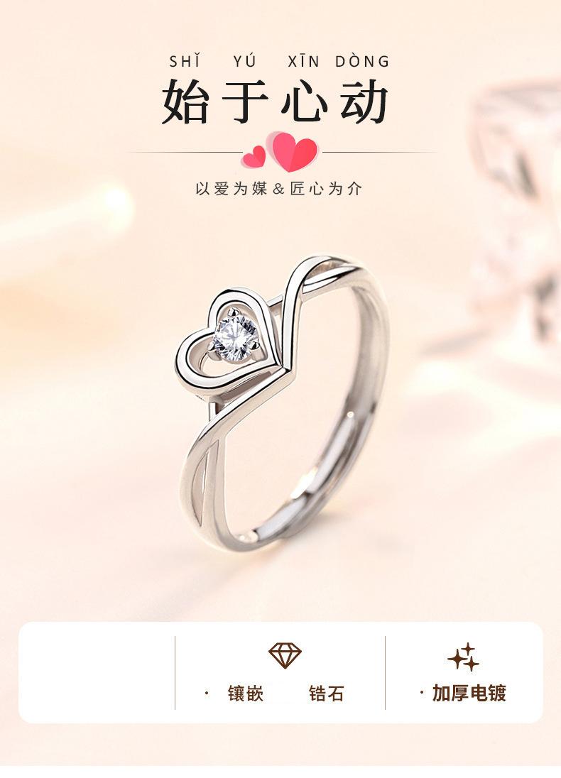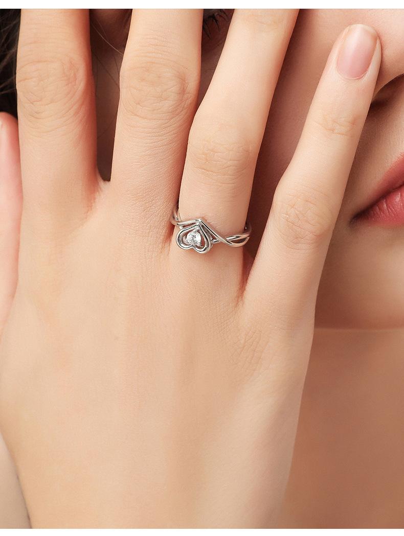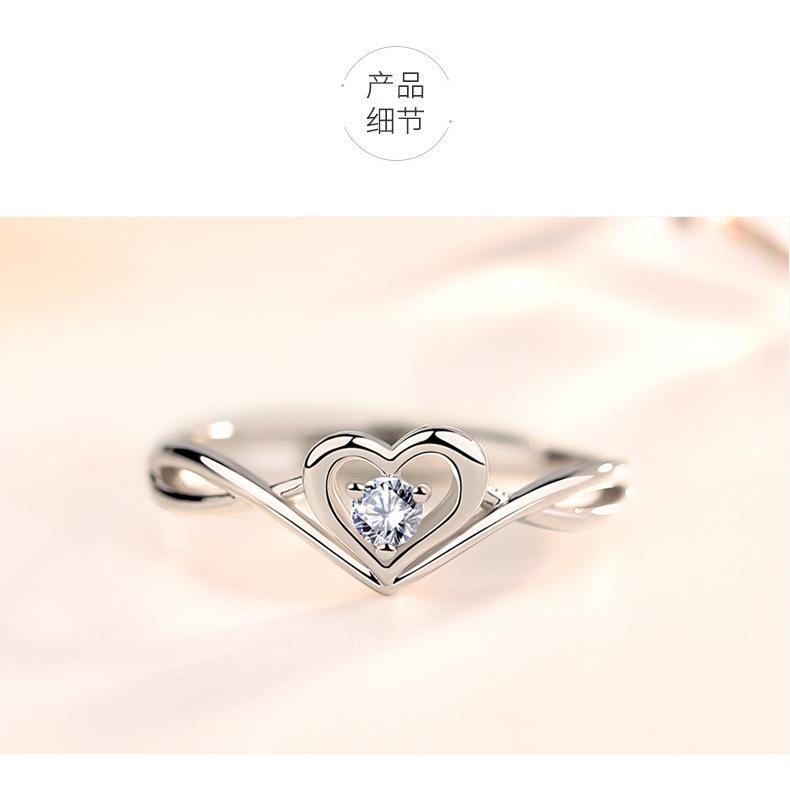 Anillo de Placer Niche Corazón Diseño de Amor Diamante para Mujer Sentido Avanzado Anillo Ajustable en Forma de Corazón Anillo de Diamantes de Boda Regalo