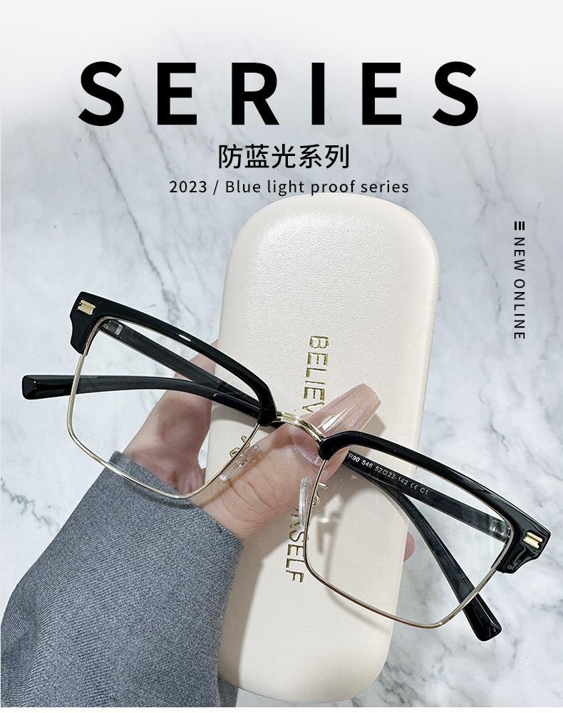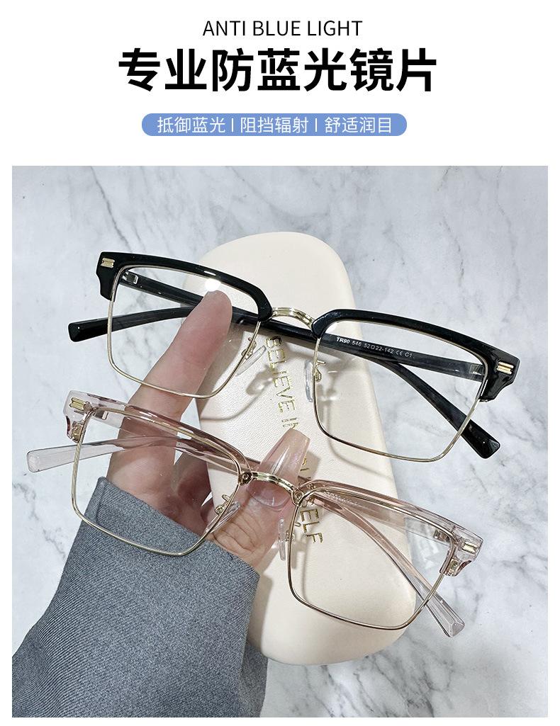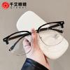 Lentes retro para miopía de cejas para hombre, de negocios, media montura, anti luz azul, lentes lisos, montura de gafas para mujer con graduación