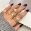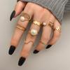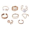 Anillo de Cadena Transfronterizo Europeo y Americano para Mujer Creativo Retro con Perla Incrustada Anillo de Unión Set de Anillos de Rayo Set de 8 piezas