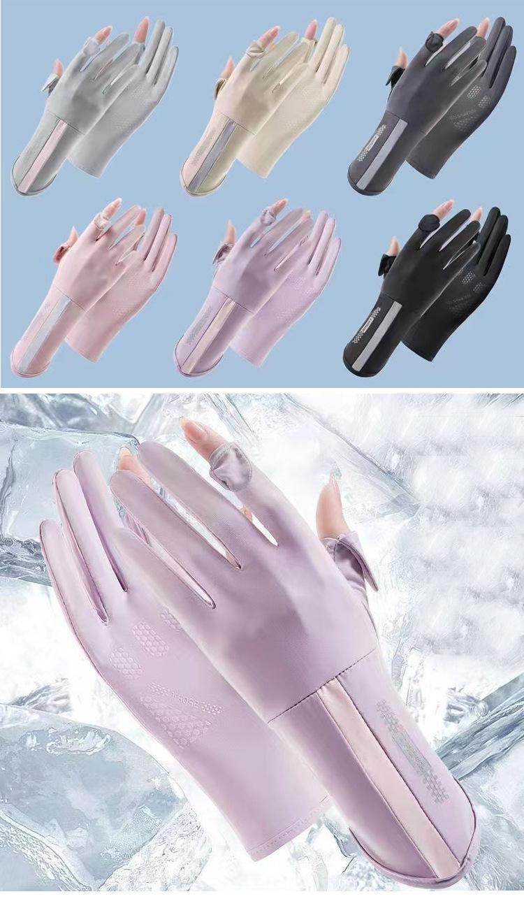 Guantes de protección solar para mujer en verano, guantes finos transpirables de seda de hielo anti-ultravioleta para conducir y andar en bicicleta, antideslizantes, sin dedos, con pantalla táctil