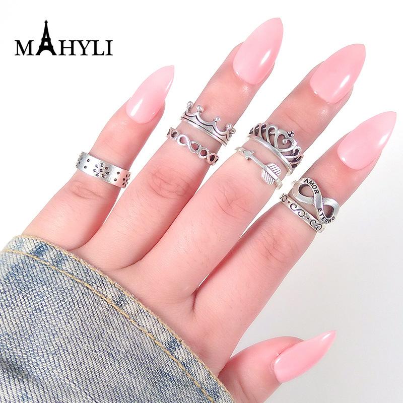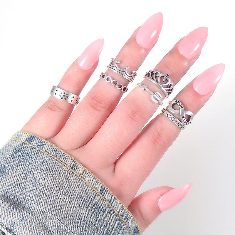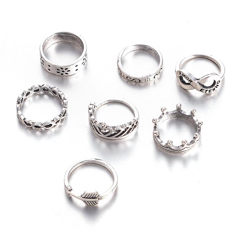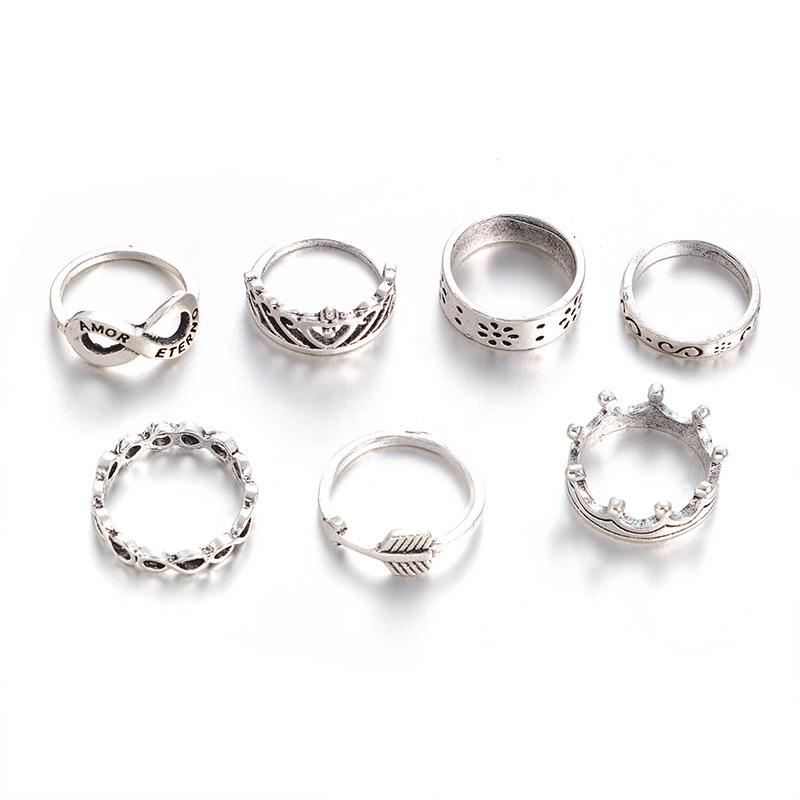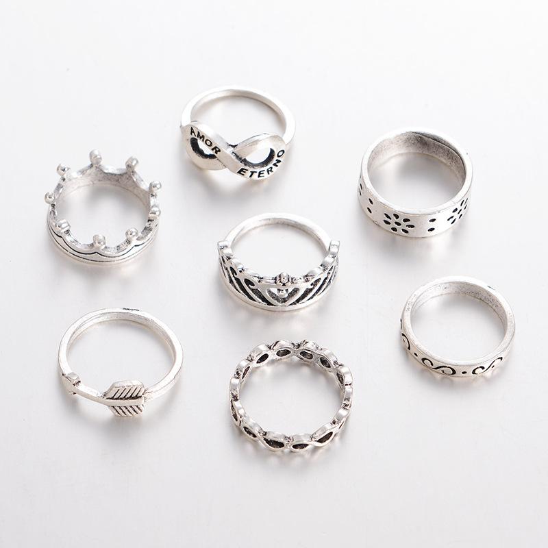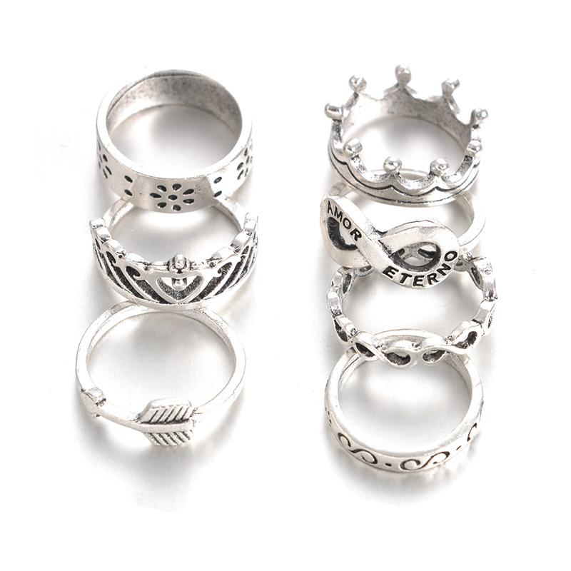 Comercio exterior europeo y americano AliExpress deseo explosiones juego de anillos Corona Anillo de 8 palabras Juego de 7 anillos Venta al por mayor
