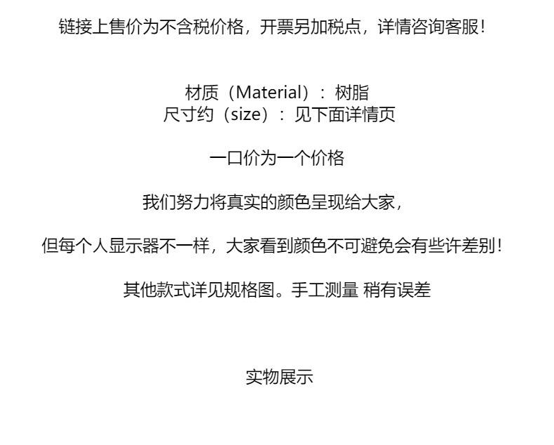 | Queridos bebés, tómense 30 segundos para mirar las conversaciones en nuestra tienda. En circunstancias normales, la entrega finaliza a las 15:00 todos los días y los pedidos realizados después de las 15:00 se enviarán al día siguiente. Si hay alguna personalización fuera de stock, se retrasará unos días. Hay muchos tipos de accesorios de joyería. Es habitual que se agoten las existencias en la industria. Normalmente, indicamos "reembolso" o "reemisión" en la lista de distribución que viene con el paquete. Si tiene problemas para obtener un reembolso, contáctenos para solicitarlo. Se enviará en unos días. Por lo general, Wangwang no se pondrá en contacto con el comprador. Gracias por su comprensión. El precio predeterminado es de 89 yuanes con envío gratuito, excepto en algunas zonas. El precio predeterminado es ZTO Express, que admite la entrega a domicilio de SF Express. Contacte con atención al cliente. El precio que aparece en el enlace del producto no incluye impuestos. Se añadirán puntos de impuestos al facturar. Para más información, consulte con atención al cliente. El almacenamiento manual es engorroso y algunos pedidos demoran varias horas, porque tenemos que contar y empaquetar los materiales pequeños uno por uno, y no queremos revender los productos vendidos a otros compradores, por lo que nuestra tienda no admite devoluciones ni cambios sin motivo en siete días. Bebés, por favor piensen detenidamente antes de comprar. Además, la "cantidad mínima por paquete es de 10 piezas" que aparece en el enlace significa que la cantidad mínima por paquete es de 10 piezas de cada color. Los precios del enlace son por unidad. Si compra 100 piezas del mismo color, se empaquetarán juntas, no en paquetes de 10. |
