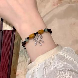 Pulsera de estilo chino con cuentas y candado de paz de estilo antiguo, tendencia nacional, para mujer, pulsera versátil de nicho de alta gama, joyería de mano de nuevo estilo para novias.