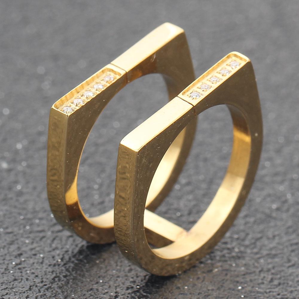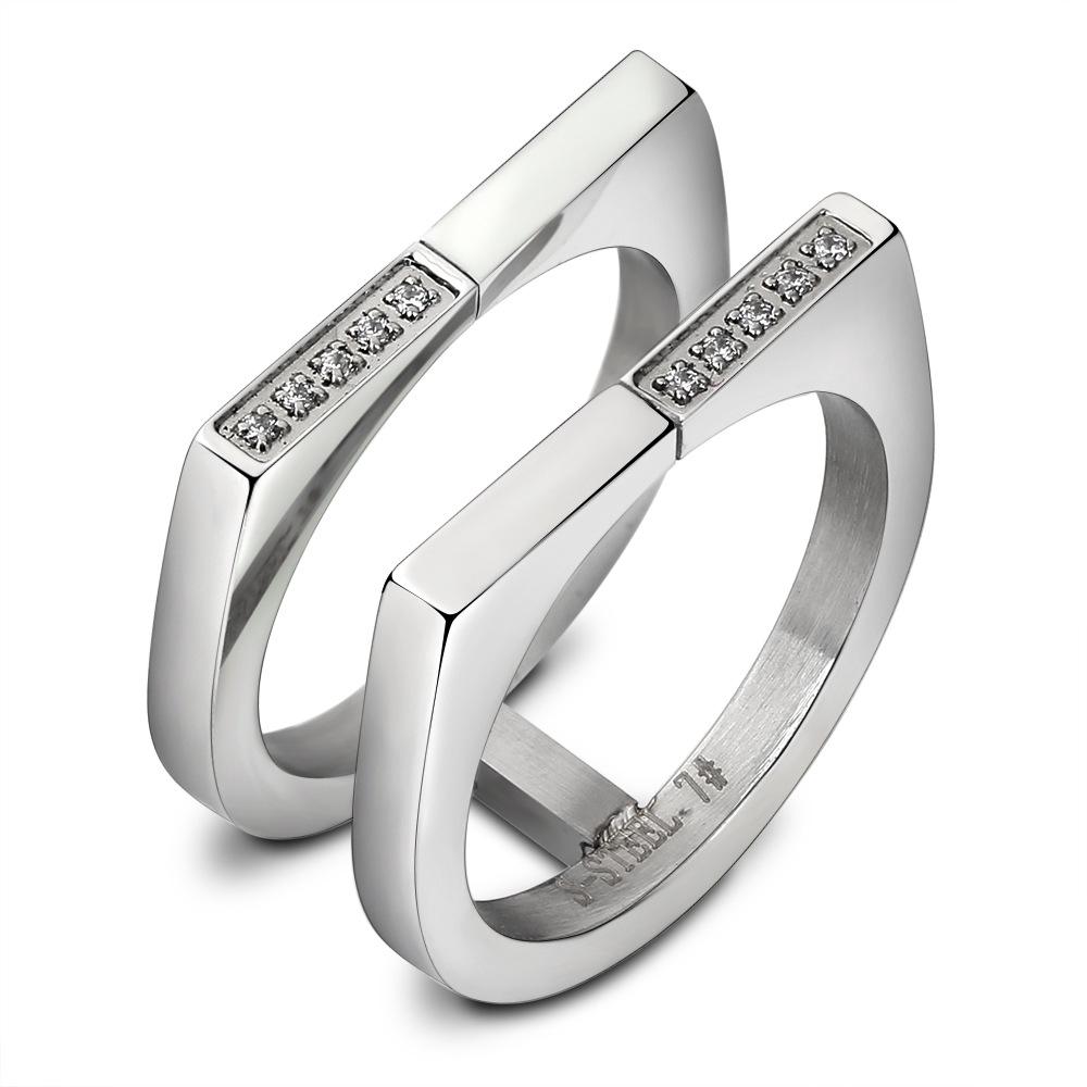 Anillo Abierto de Diamante Asimétrico de Zirconia de 10 mm Simple y Personalizado Transfronterizo Europeo y Americano Anillo de Acero Inoxidable de Moda al por Mayor