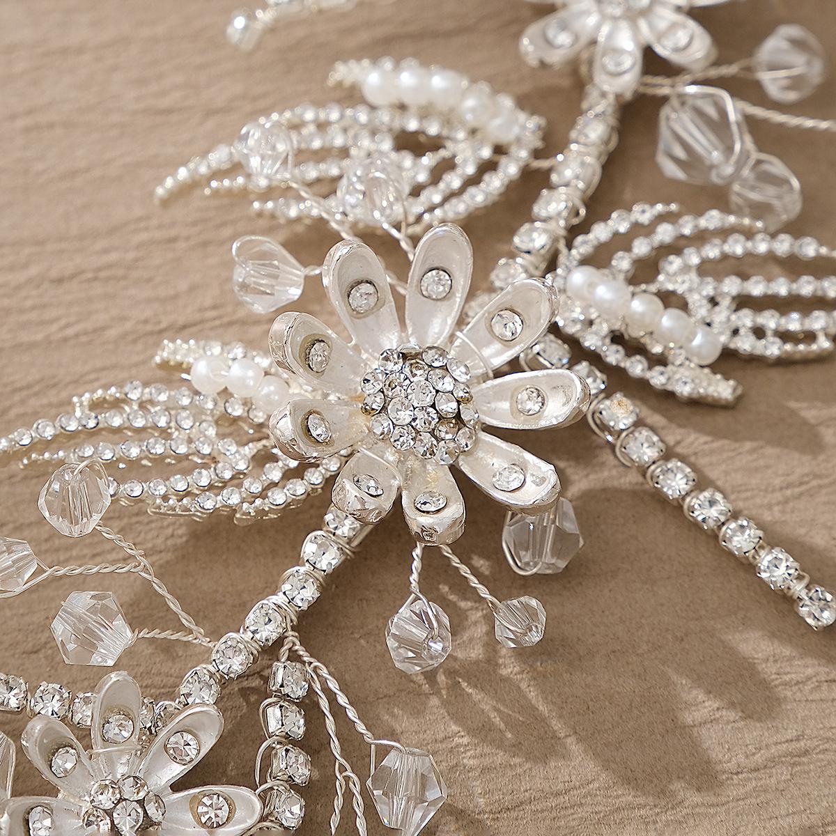 Rhinestone Pearl crystal flower copper wire winding silver