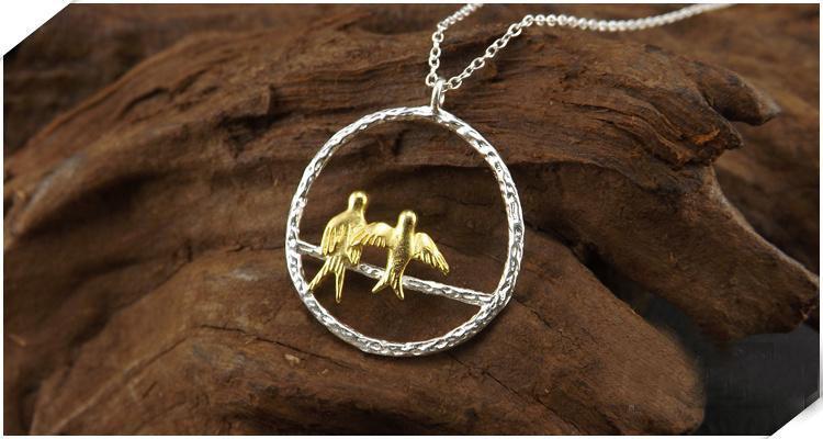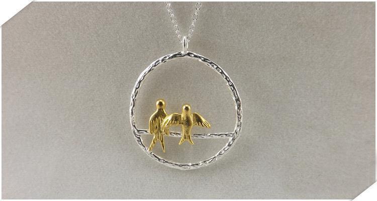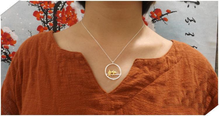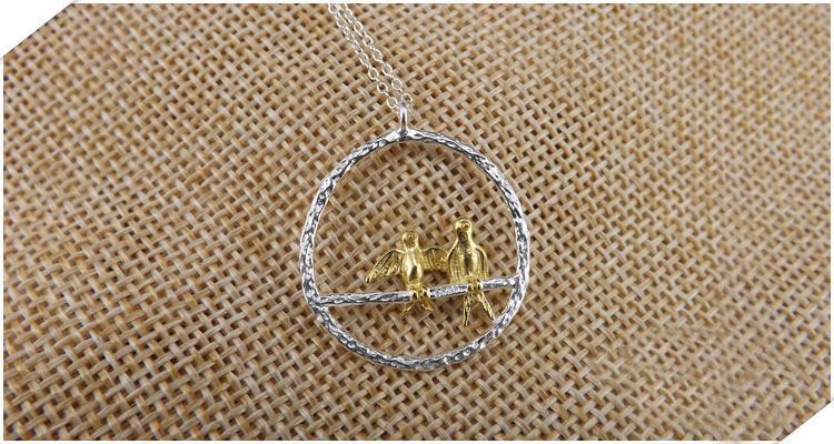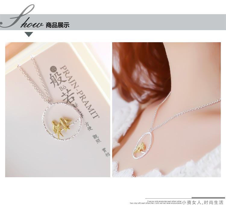 Collar de plata esterlina s925 al por mayor, collar de plata esterlina chapado en oro con un lindo pájaro, joyería de plata con temperamento de moda coreana