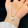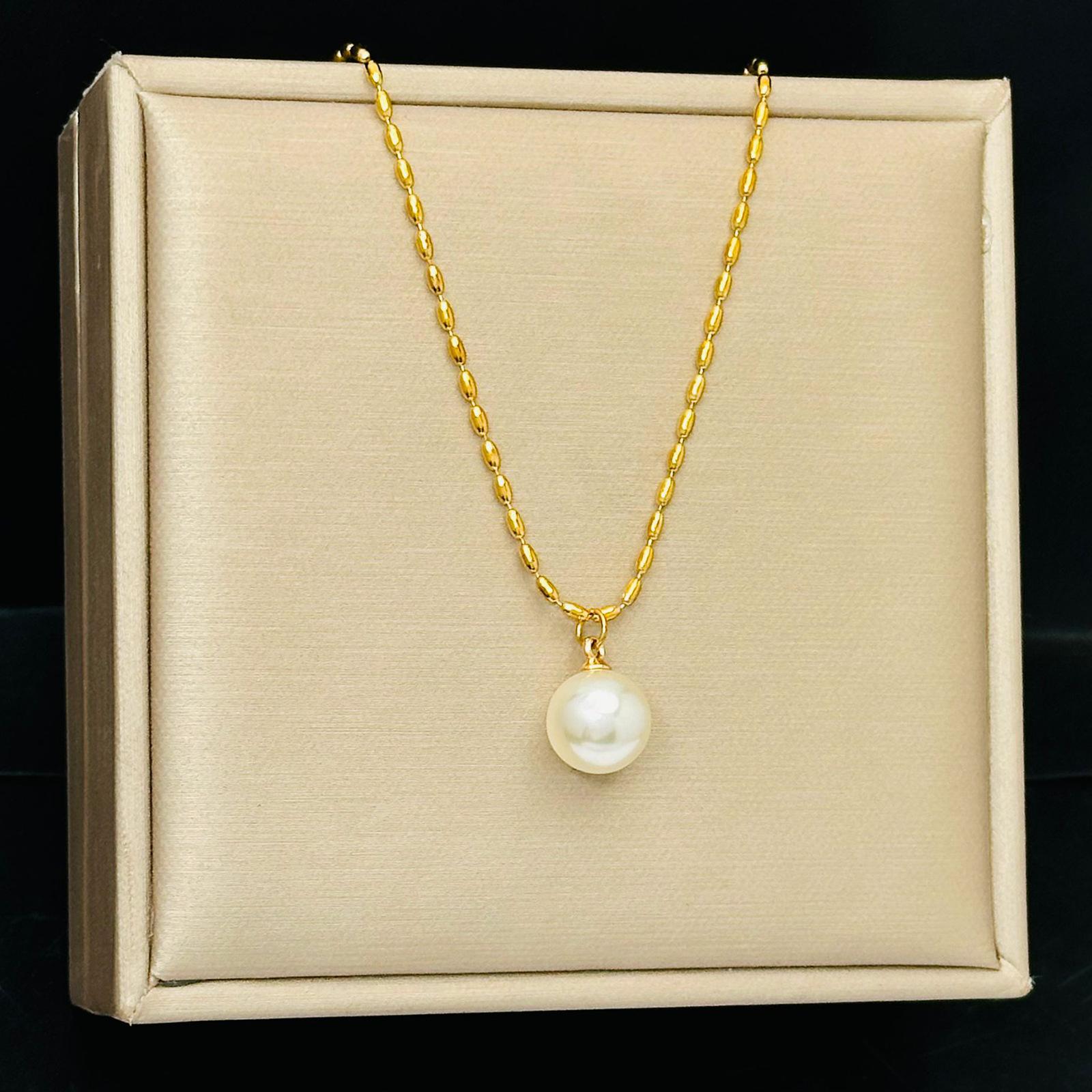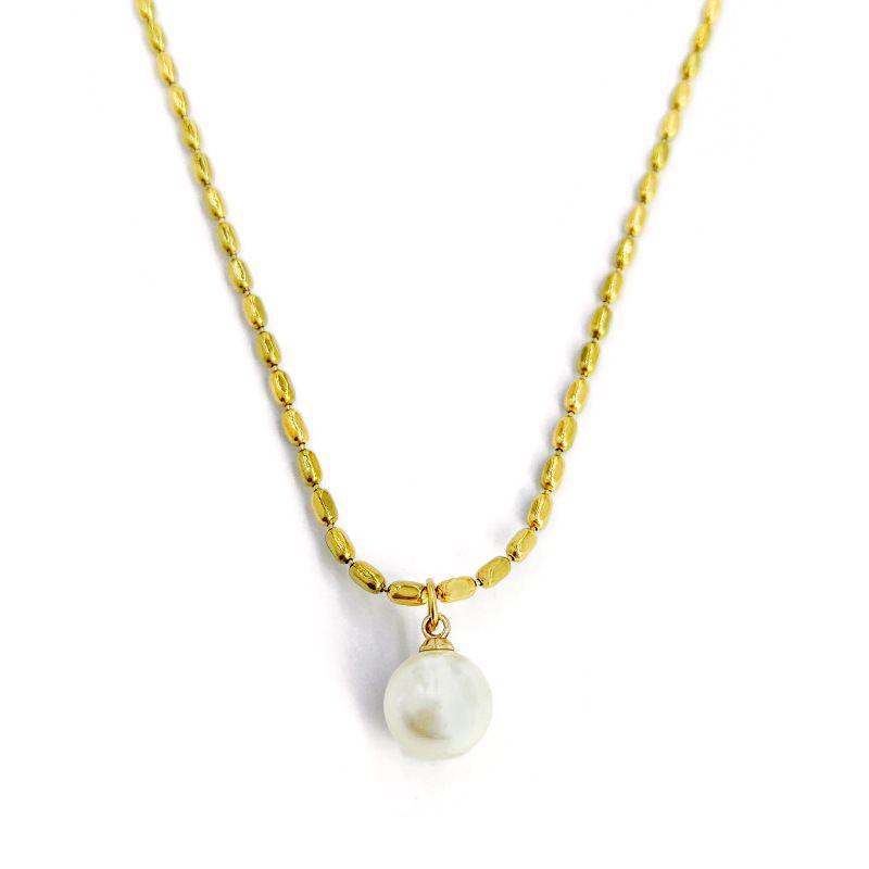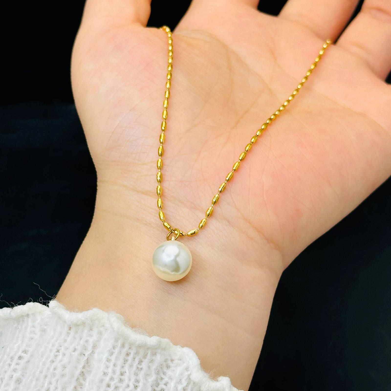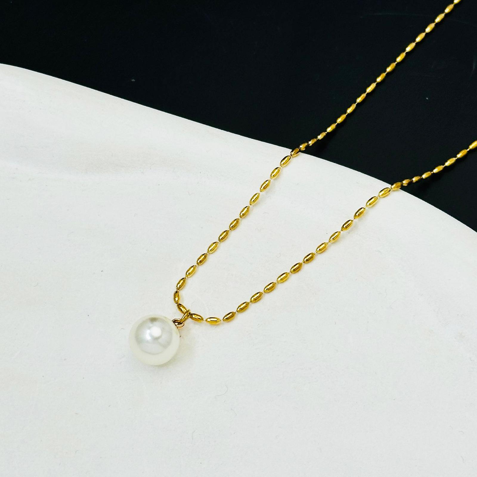 Collar de cuentas blancas para mujer, cadena de clavícula dorada de verano, sencillo, elegante, sin color, ligero, de lujo, collar con corazón de melocotón, joyería de acero de titanio.