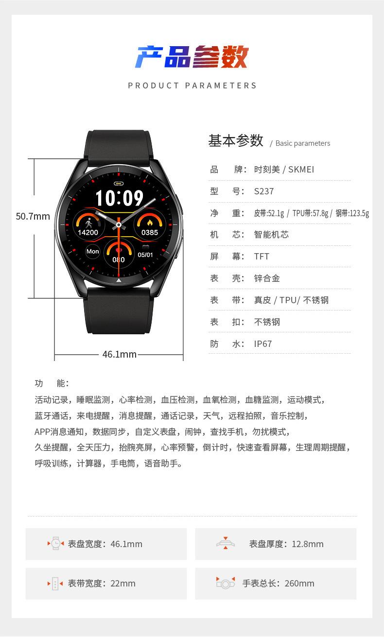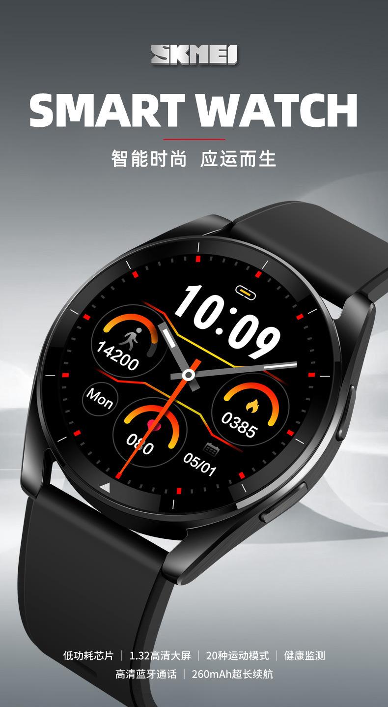 Reloj inteligente Skmei S237 con pantalla táctil completa, podómetro, detección de frecuencia cardíaca, Bluetooth, voz, reloj inteligente multifuncional