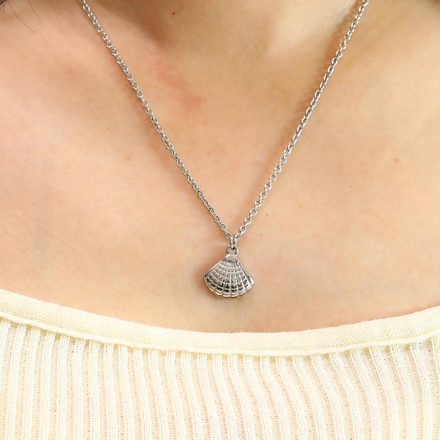 Nuevo colgante de concha simple de acero de titanio de moda europea y americana, joyería transfronteriza, collar unisex en forma de abanico de acero inoxidable
