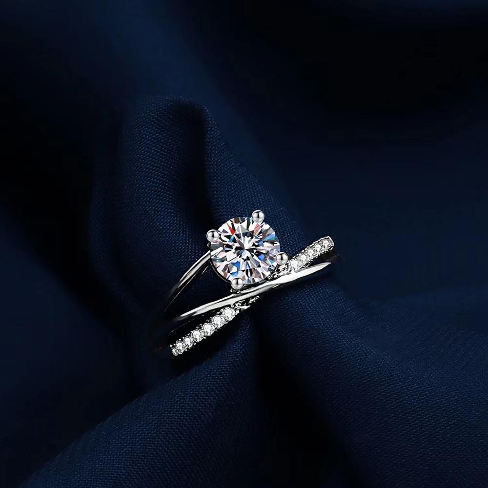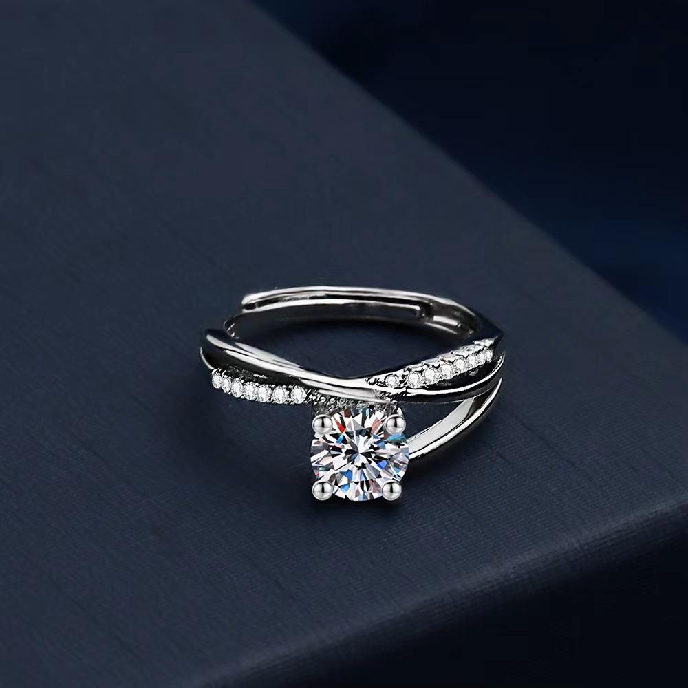 Anillo de diamante de imitación con forma de cruz creativa de moda de estilo europeo y americano, anillo clásico de cuatro garras para niña, anillo de dedo índice abierto, joyería