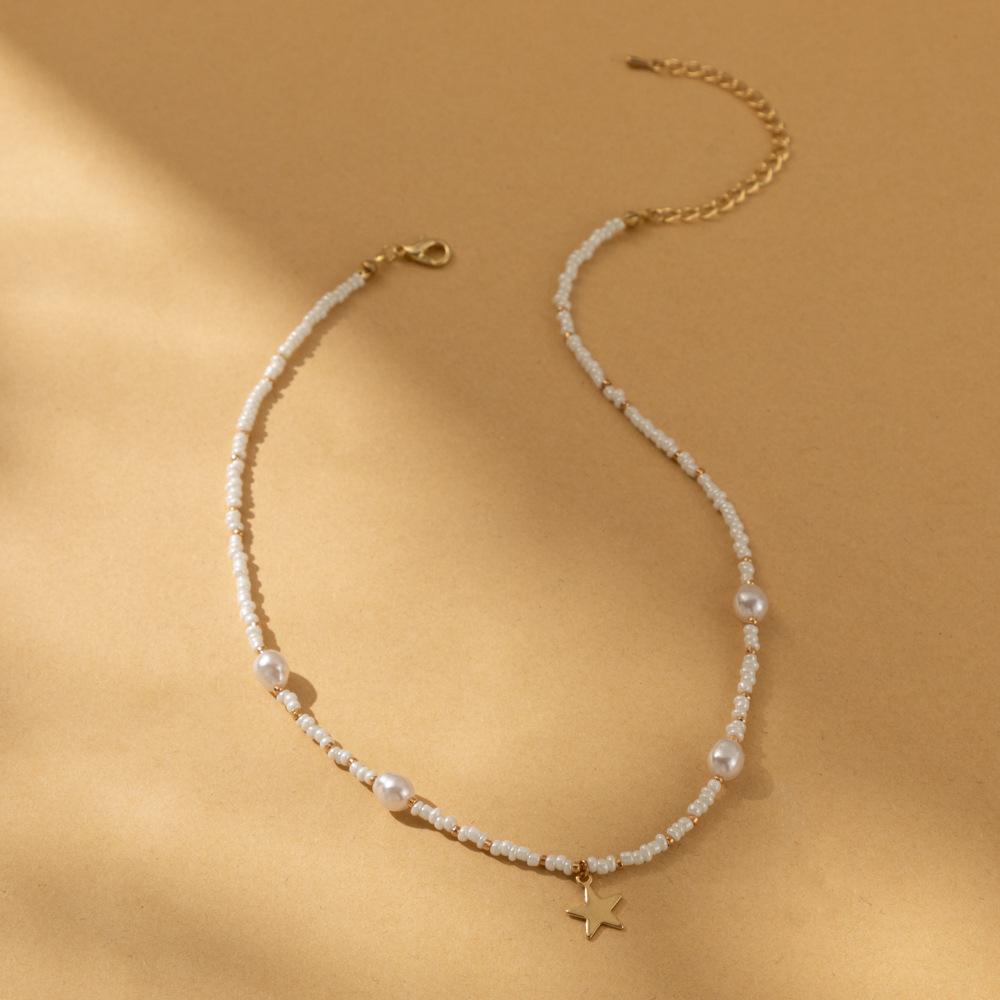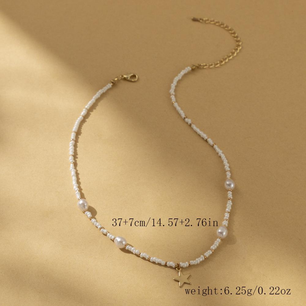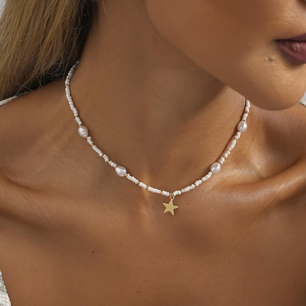 Yida - Nueva moda transfronteriza, colgante de estrella de cinco puntas que combina con todo, personalidad, collar de cuentas de arroz con costura de perlas vintage, joyería