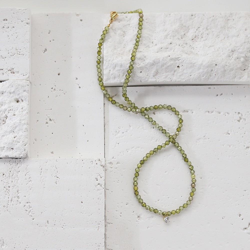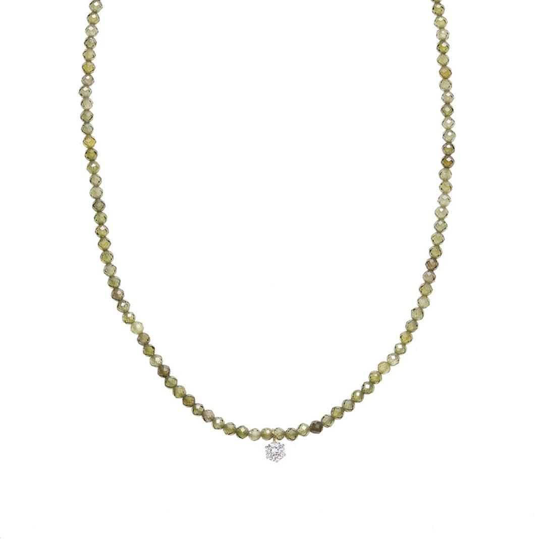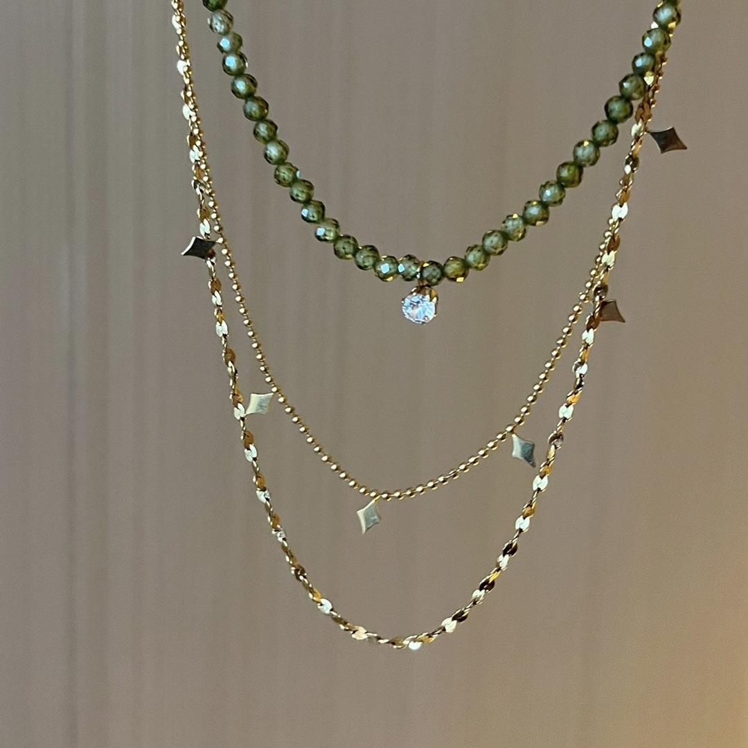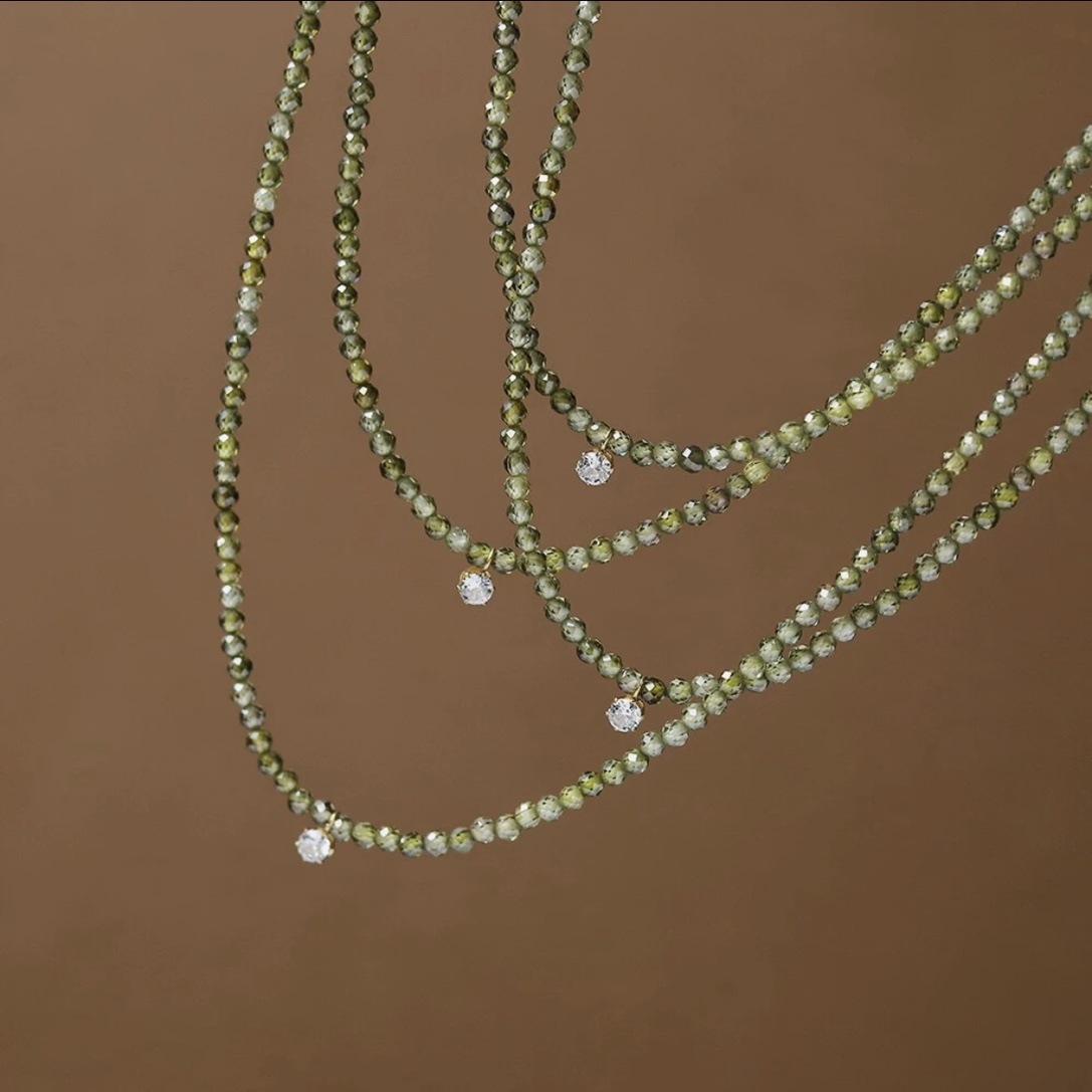 Collar de piedra de cristal natural con circonita verde degradada, hecho a mano, cadena de clavícula con cuentas, collar simple apilado de alta calidad para mujer.