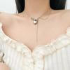 Collar de cadena larga con personalidad de amor, estilo frío, de metal plateado, cadena de clavícula, cadena de cuello con nicho