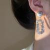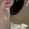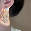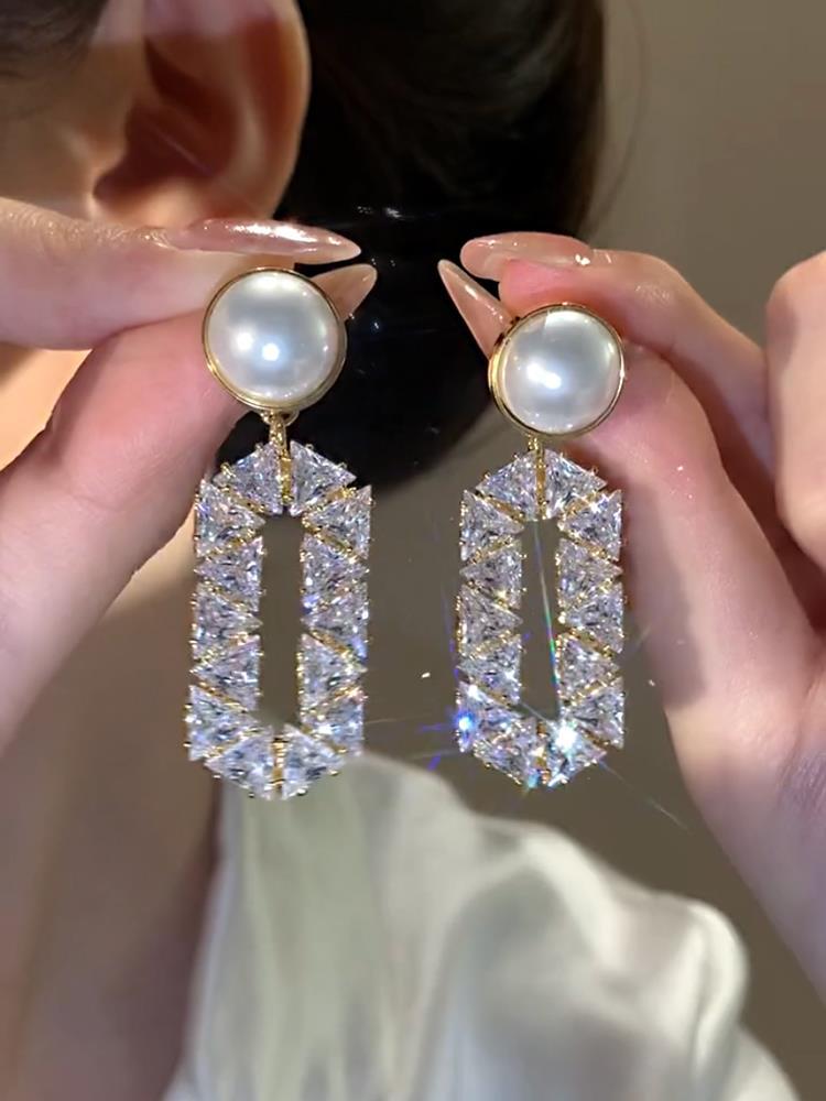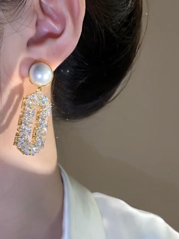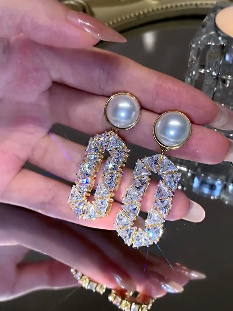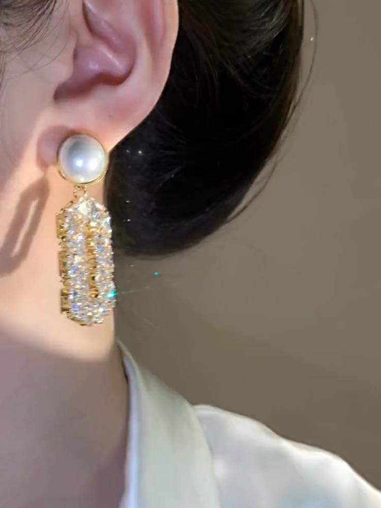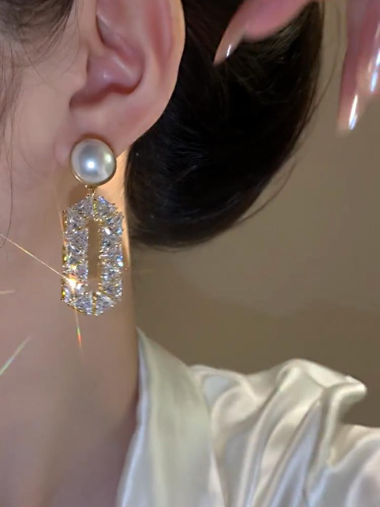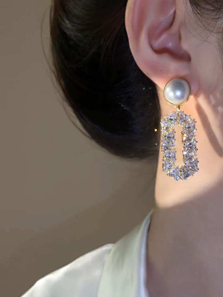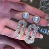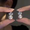 Pendientes elegantes con microincrustaciones de circonita y perla, elegantes pendientes ovalados de cristal completo japoneses y coreanos, pendientes de aguja de plata de alta calidad