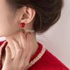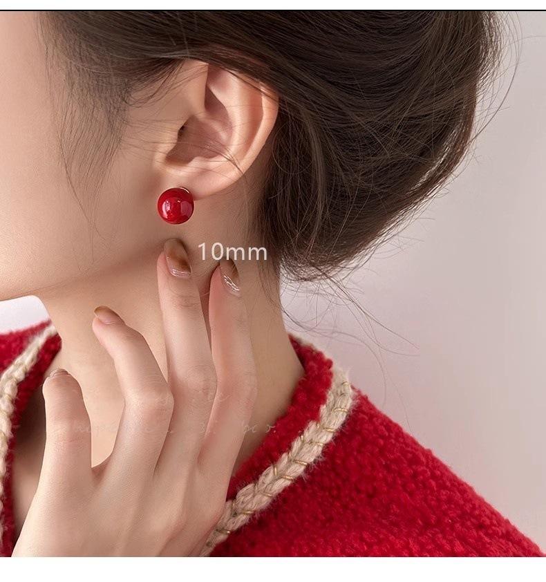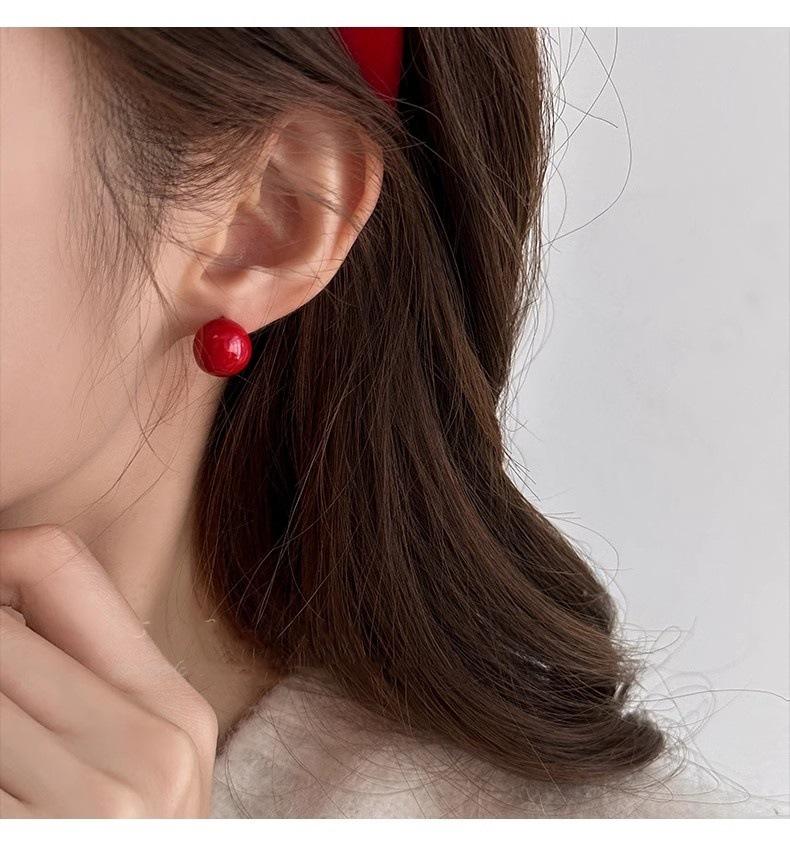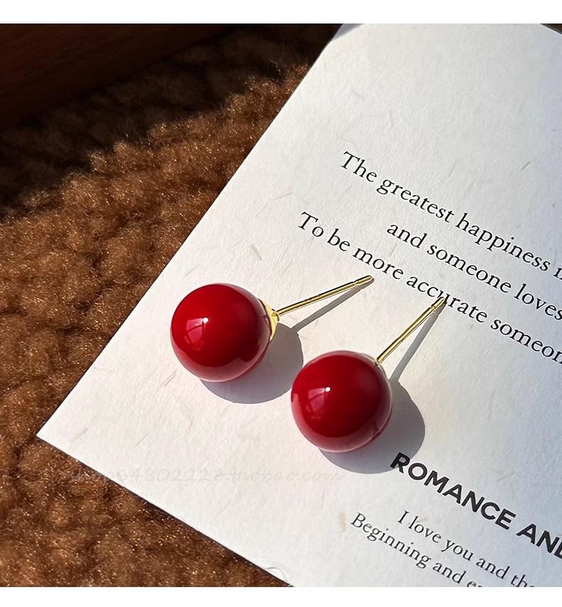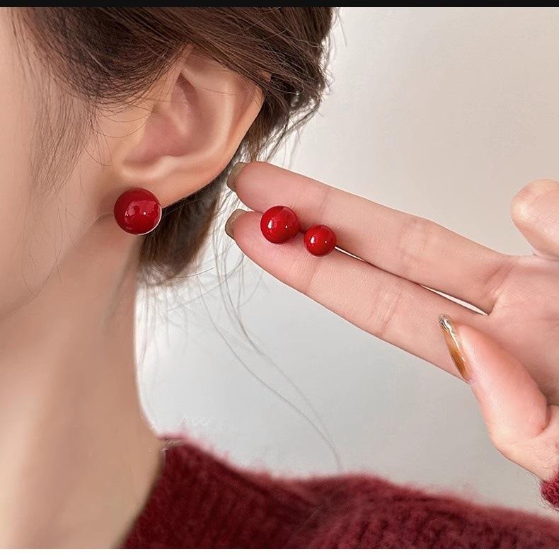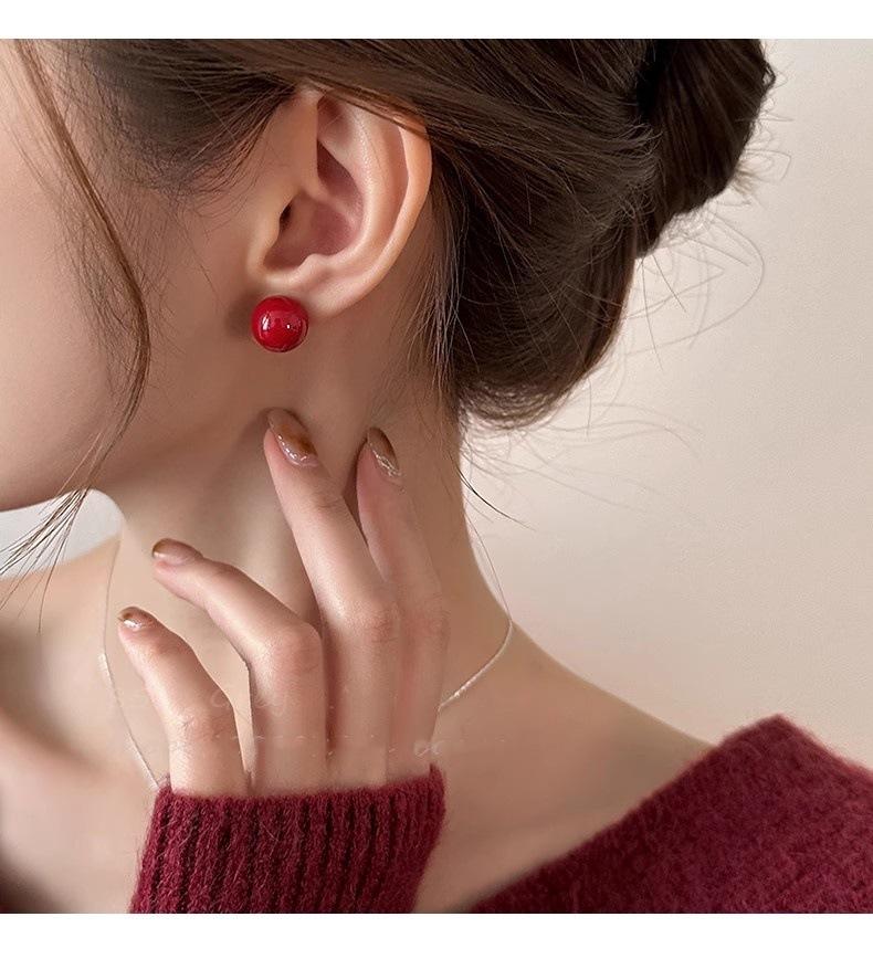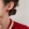 Pendientes de guisantes rojos estilo retro de Hong Kong, pendientes de alta gama con temperamento femenino, nuevos pendientes de diseño de nicho popular 2024