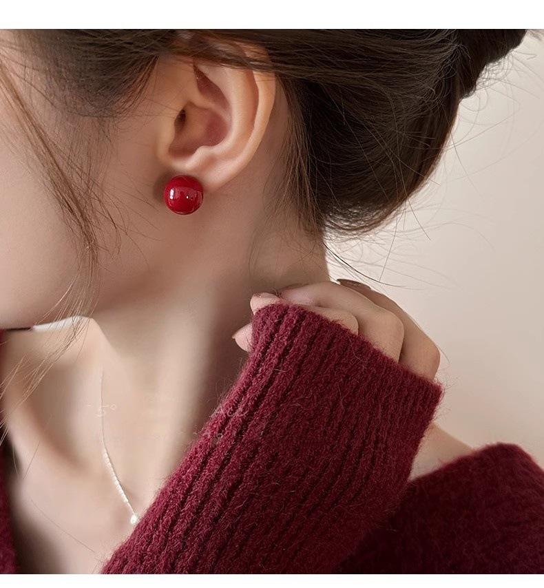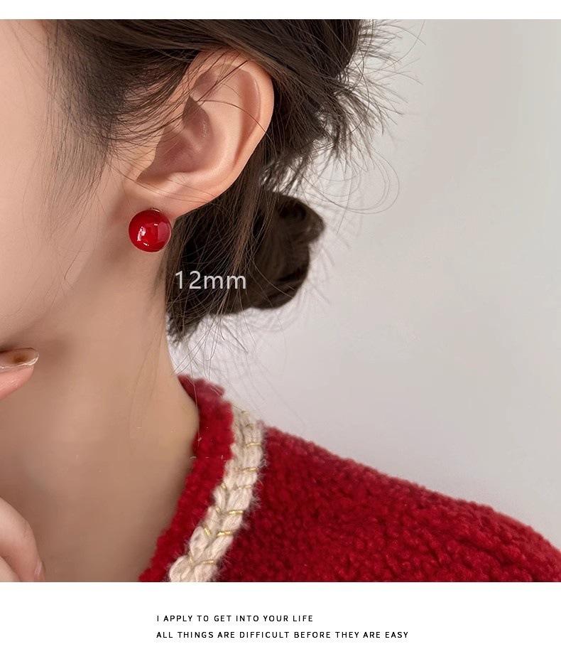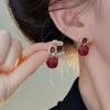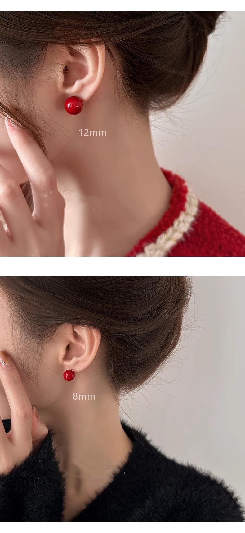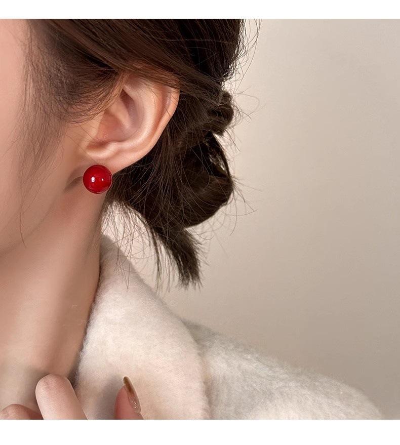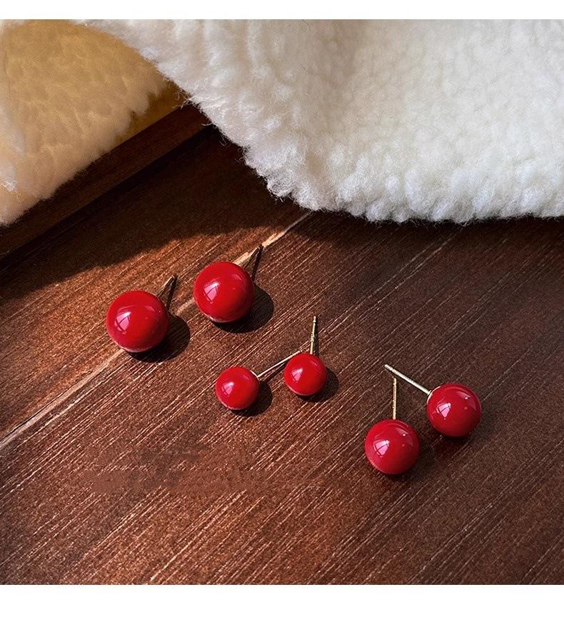 Pendientes de guisantes rojos estilo retro de Hong Kong, pendientes de alta gama con temperamento femenino, nuevos pendientes de diseño de nicho popular 2024