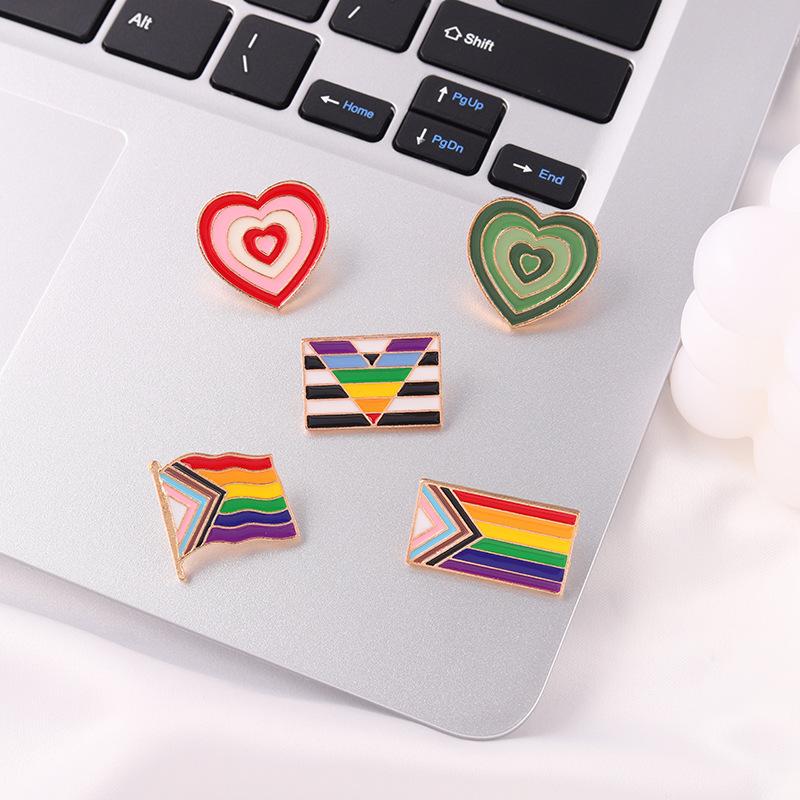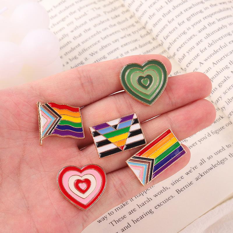 Broche de Aleación Esmaltado con Forma de Bandera de Sobre Arcoíris Creativo y Exquisito Ropa de Mujer Accesorios de Bolsa Venta al por Mayor en Stock