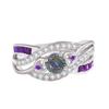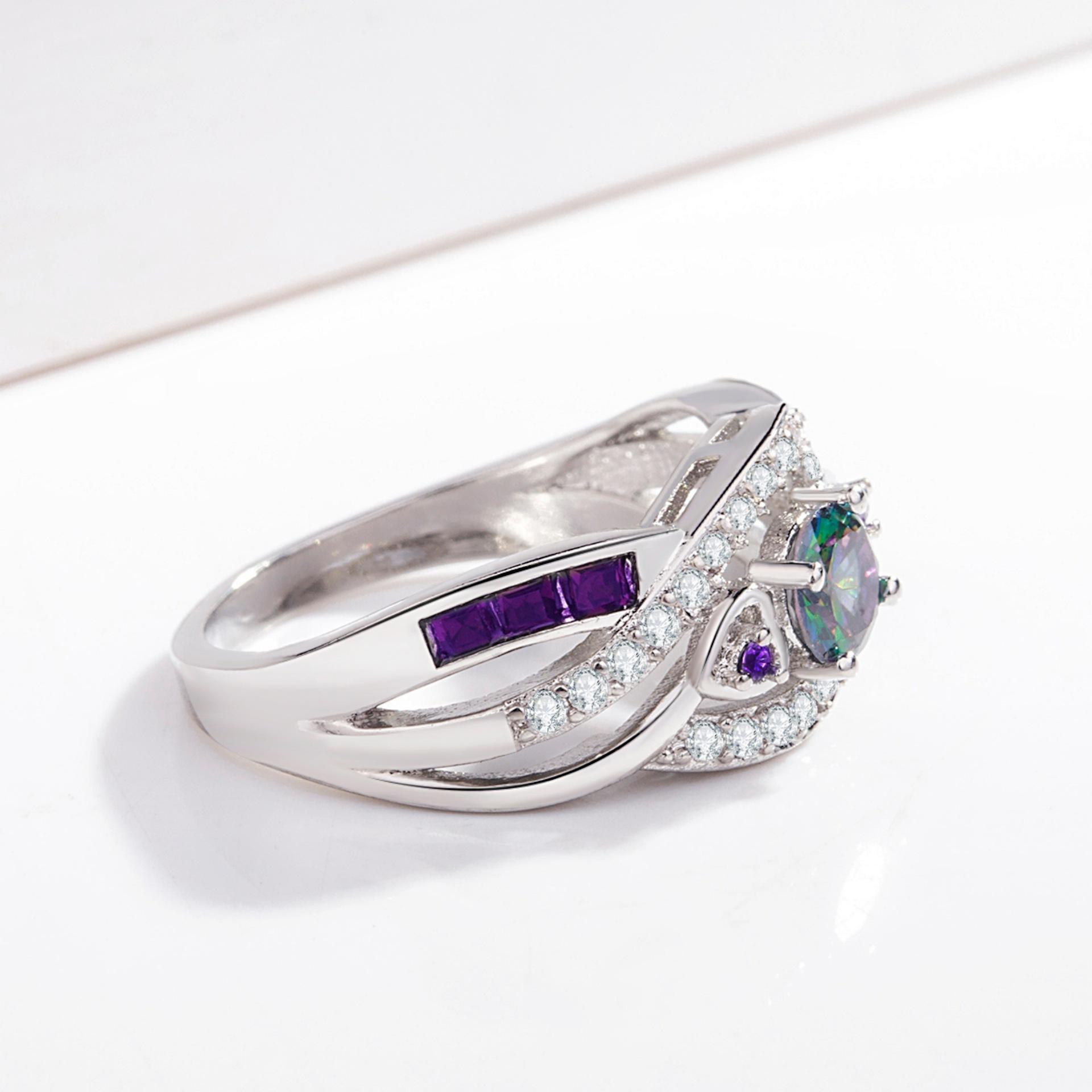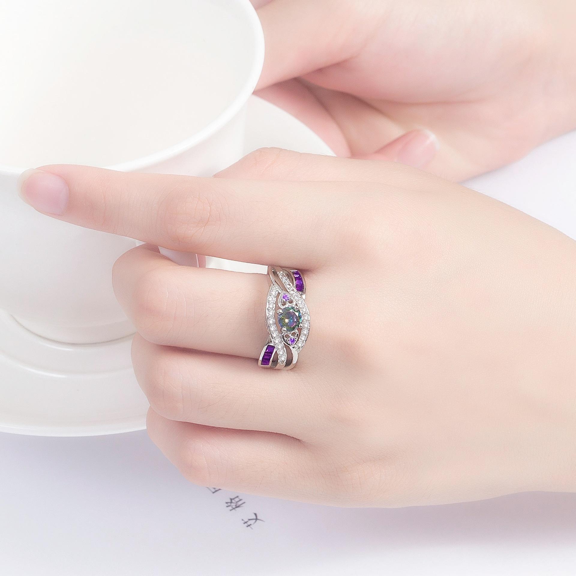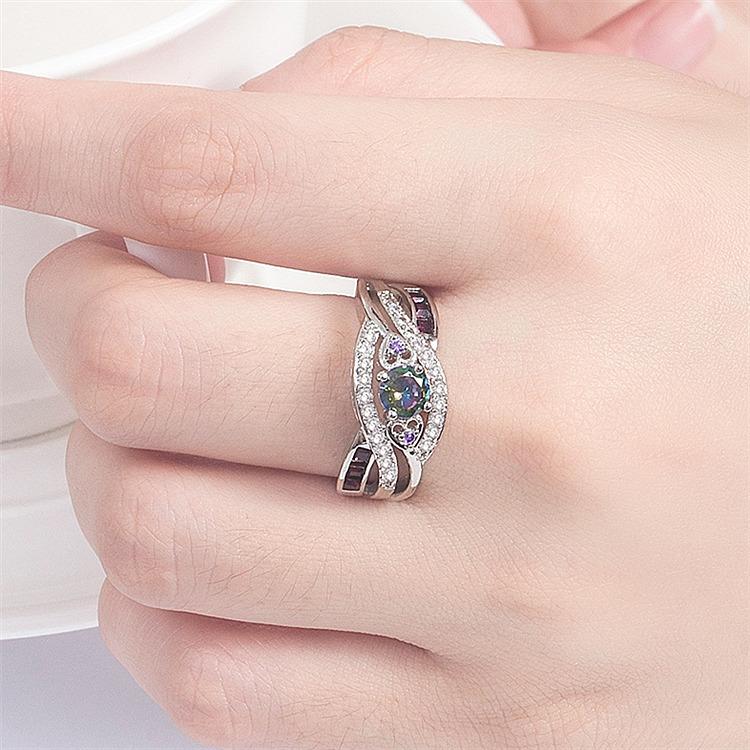 Anillo de Diamante Morado en Forma de Corazón de Wish Aliexpress Más Vendido Anillo Europeo y Americano de Diamante Redondo Color Arcoíris Circonia 3A Chapado en Platino