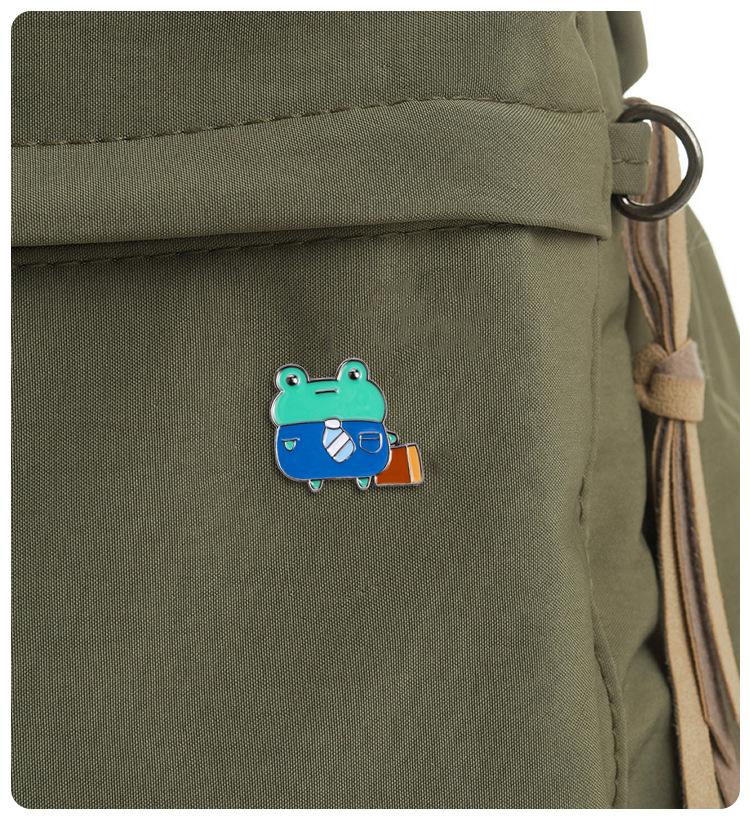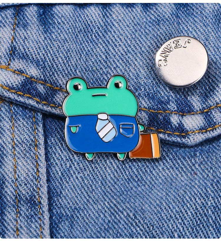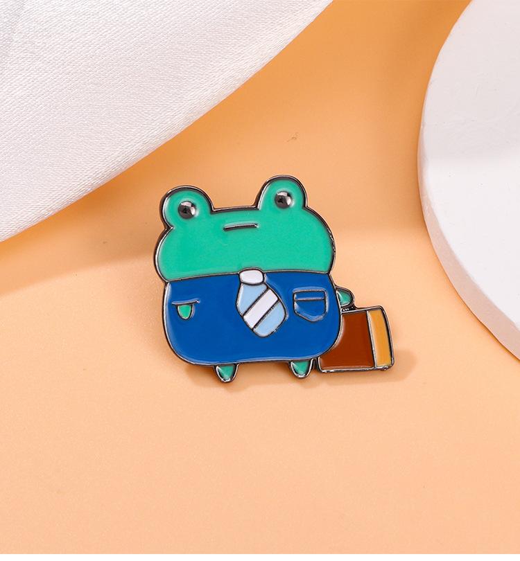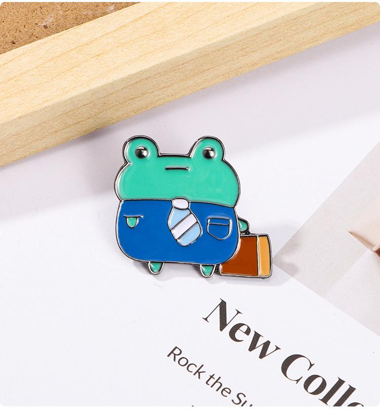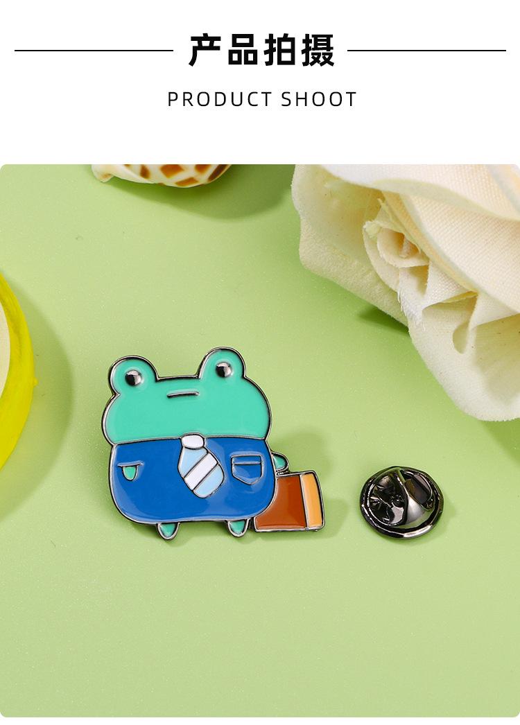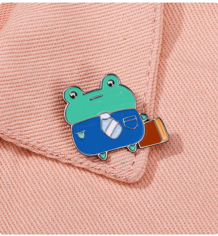 Broche de dibujos animados creativo europeo y americano con forma de rana, accesorio de ropa, insignia de esmalte de metal, hebilla antiluz