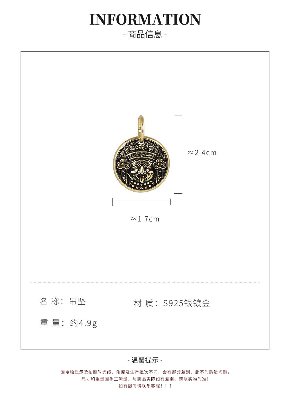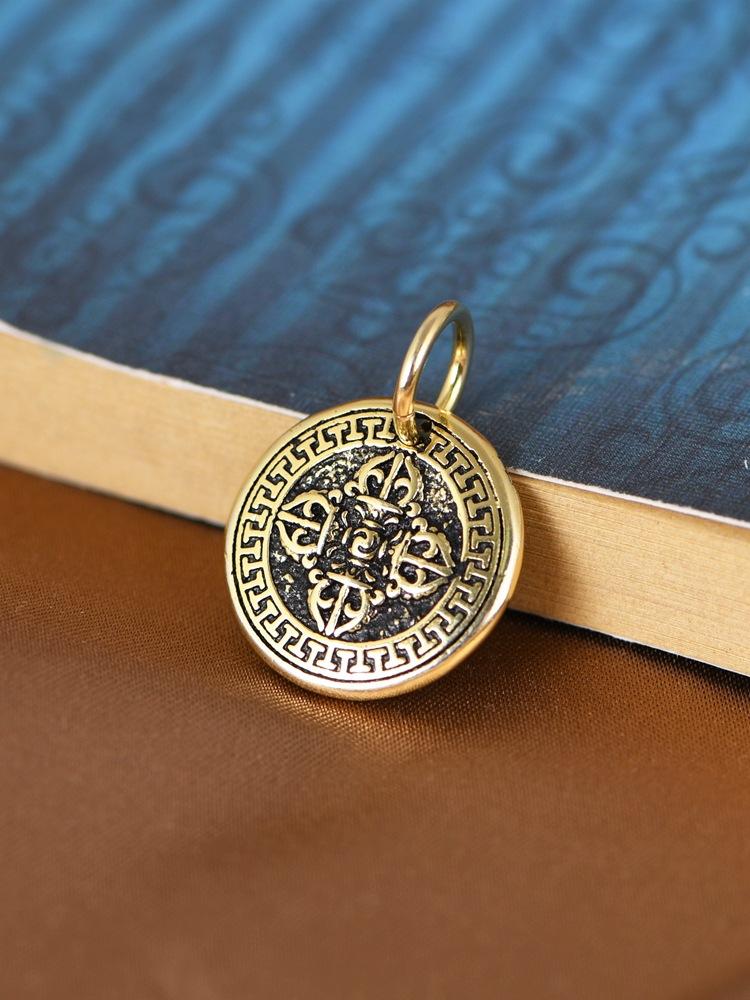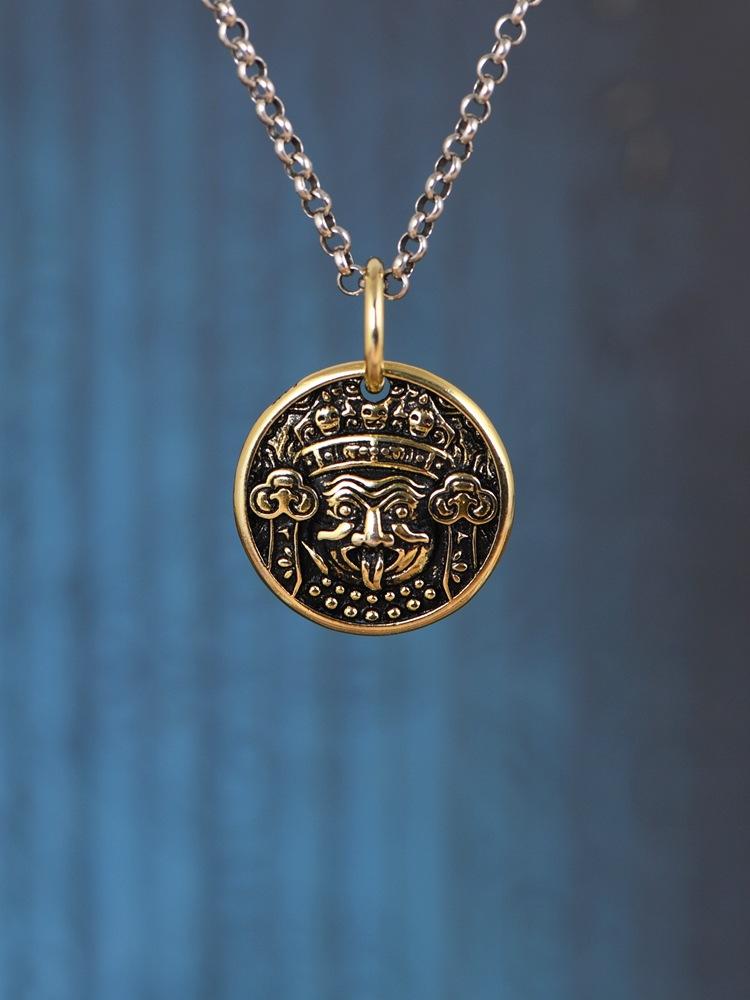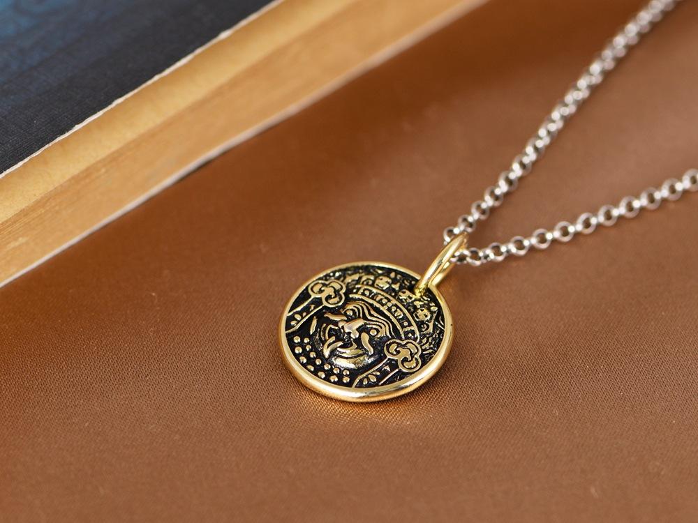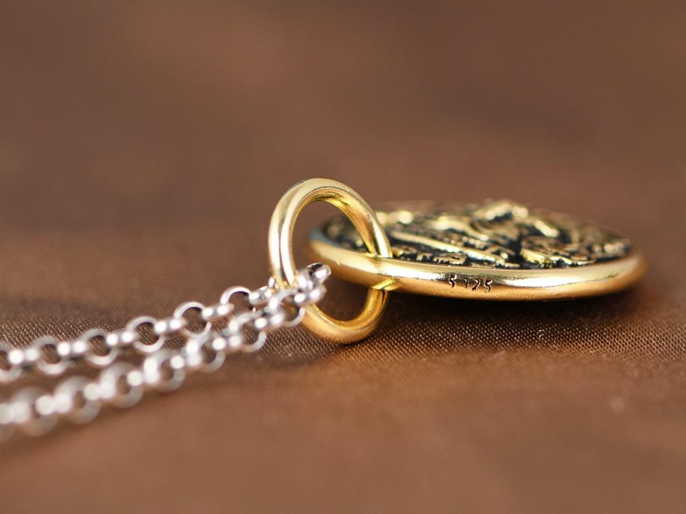 Colgante de plata S925 con diseño de ciervo dorado, estilo vintage, con zachilam bañado en oro y colgante redondo, pulsera envuelta.