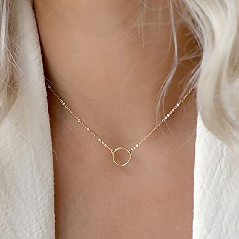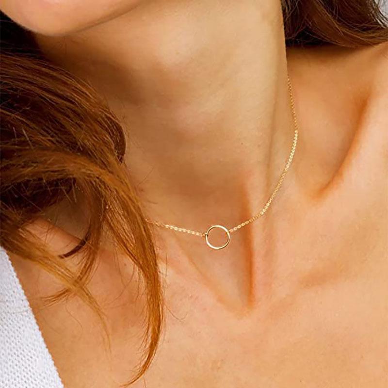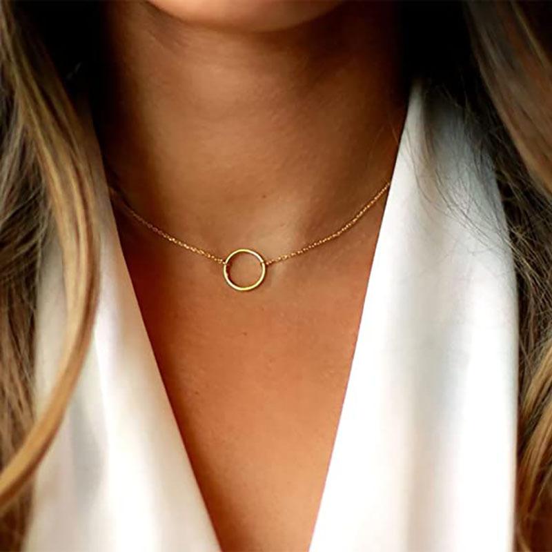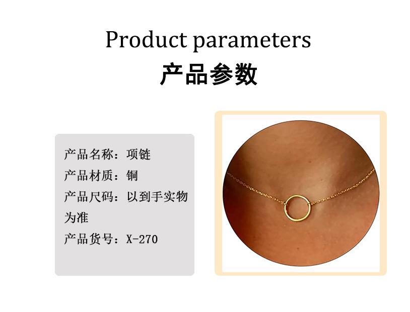 Collar de anillo de cobre simple retro de joyería nueva transfronteriza entre Europa y Estados Unidos, nicho femenino de una sola capa, cadena de clavícula femenina corta que combina con todo