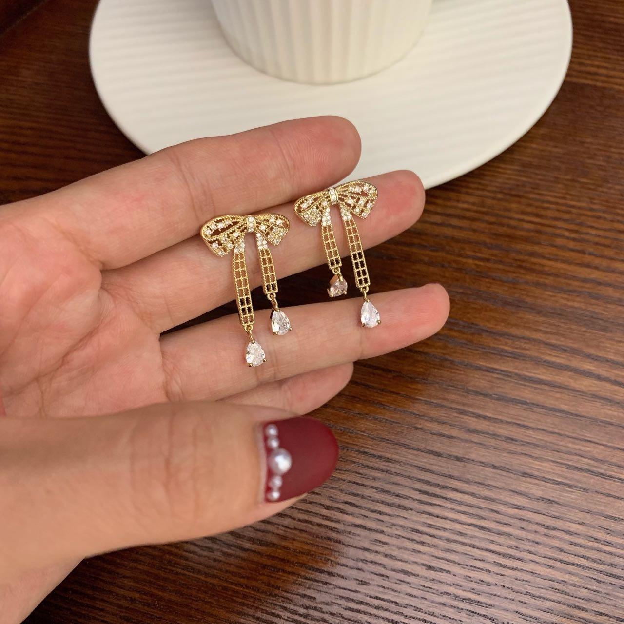 Nuevos pendientes coreanos de hoja de ojo de gato huecos con incrustaciones de diamantes, pendientes de hoja atmosféricos que adelgazan el rostro, pendientes y ganchos para las orejas | |