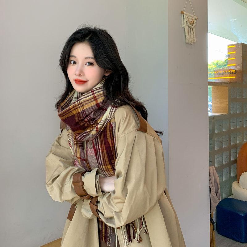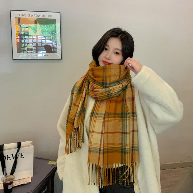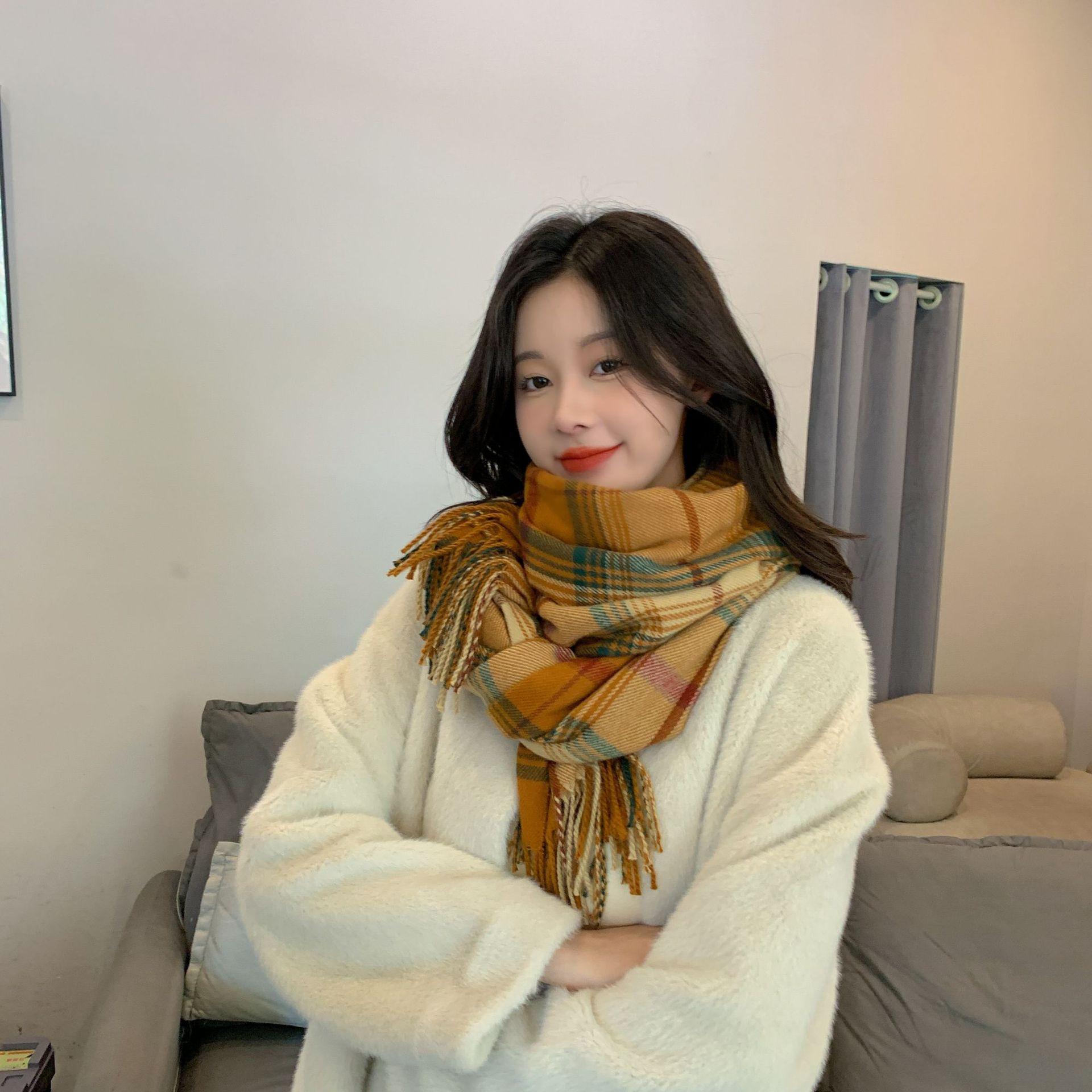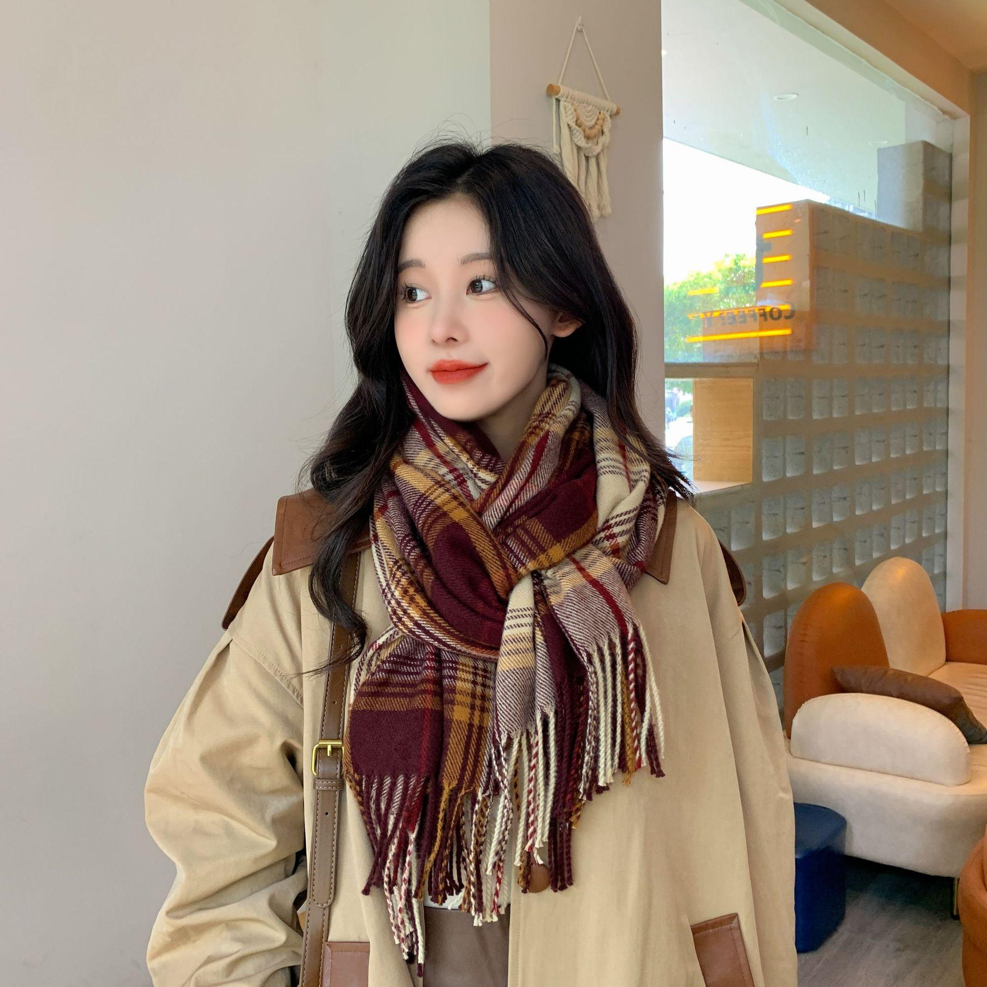 Bufanda de otoño e invierno para mujer, estilo coreano, de cachemira, con borlas, estilo Joker, cálida, estilo retro literario, al por mayor