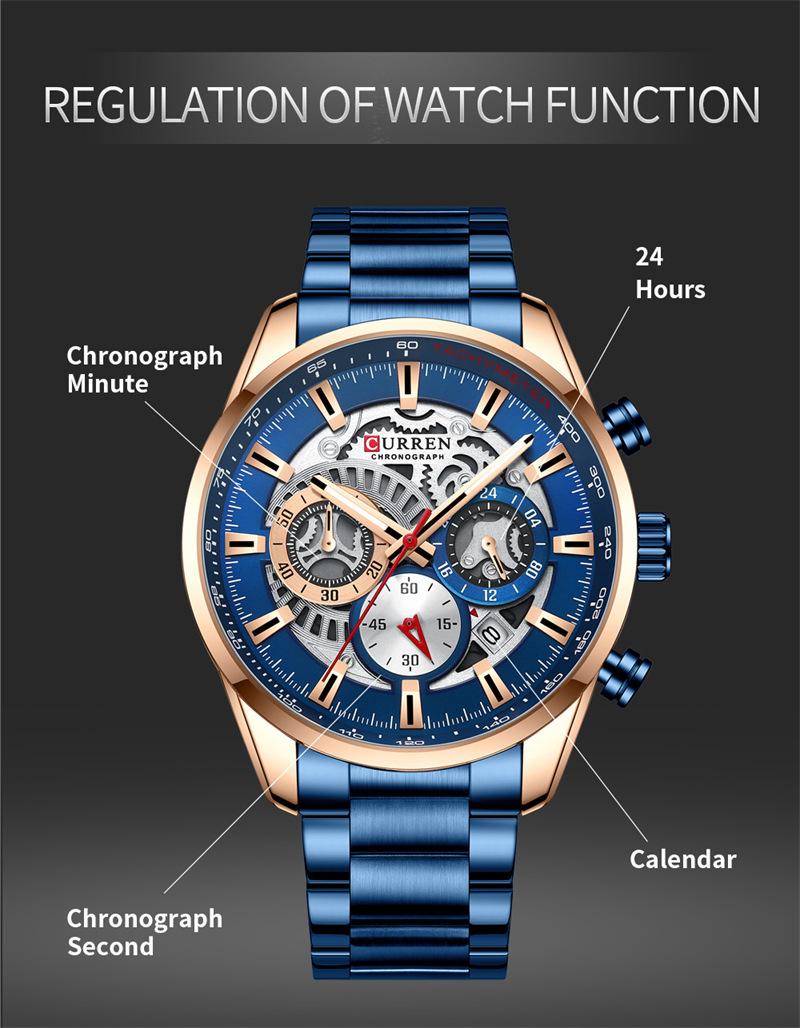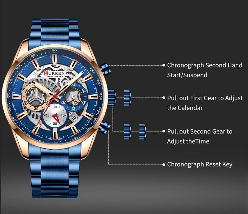 Reloj de negocios Curren/Karin 8391 para hombre, con correa de acero, calendario de cuarzo, seis agujas, multifuncional y luminoso.
