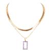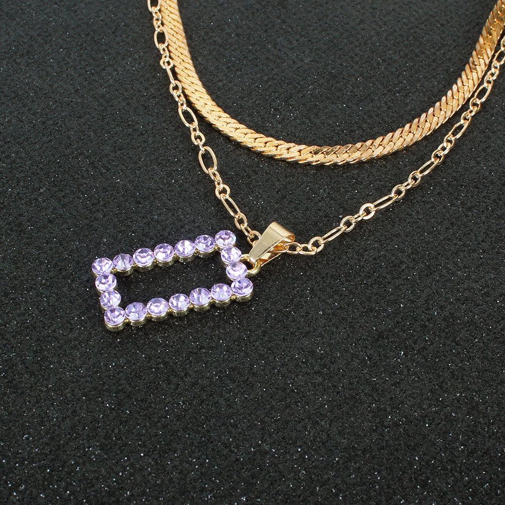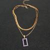 Collar Europeo y Americano de Aleación con Colgante Cuadrado de Diamante Morado de Doble Capa para Mujer, Collar de Personalidad Transfronteriza de Moda 15460